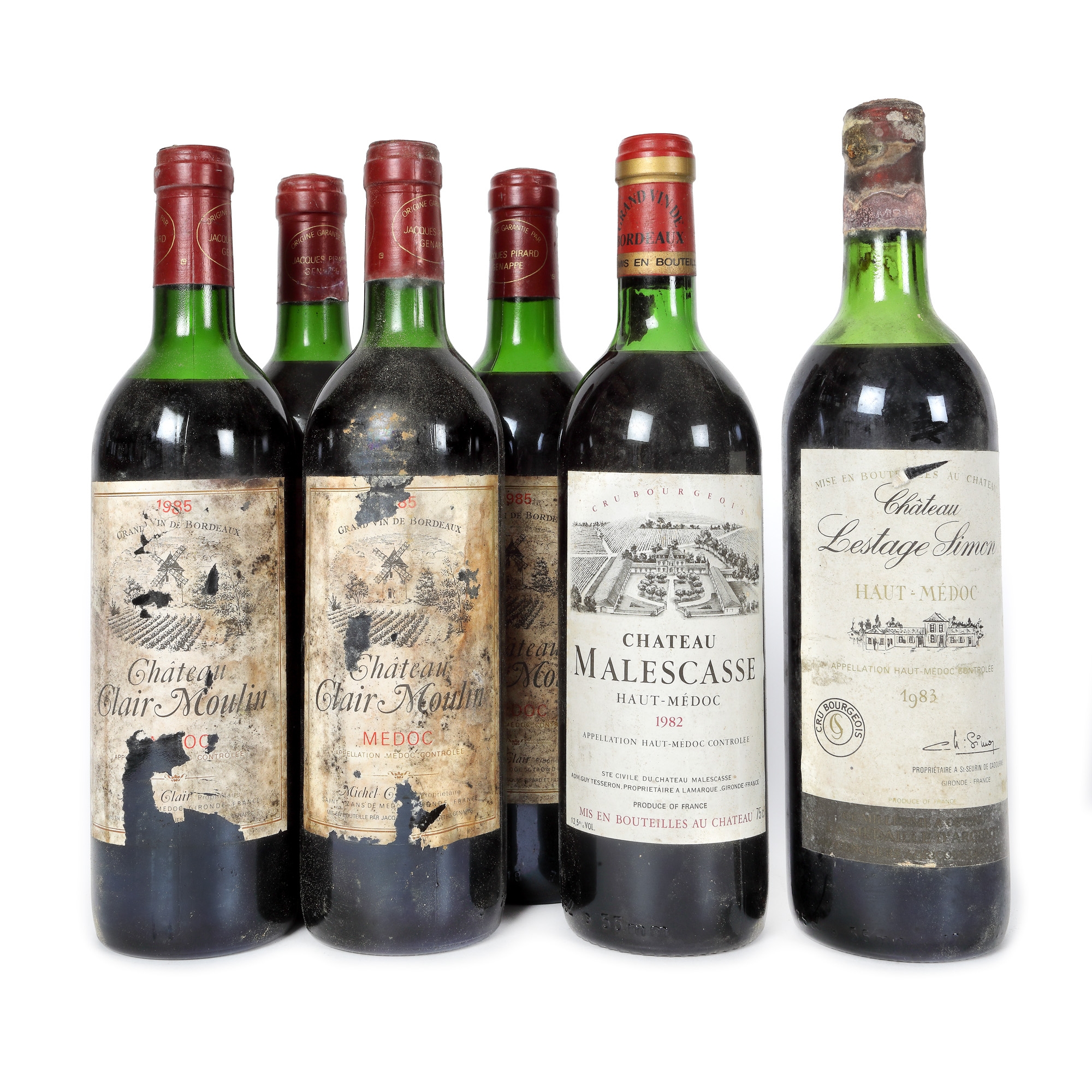 Château Lestage Simon, Haut-Médoc, 1983, 1st x 0,75l Château Malescasse, Haut-Médoc, 1982, 1st x 0,75l Château Clair Moulin, Médoc, 1985, 4st x 0,75l