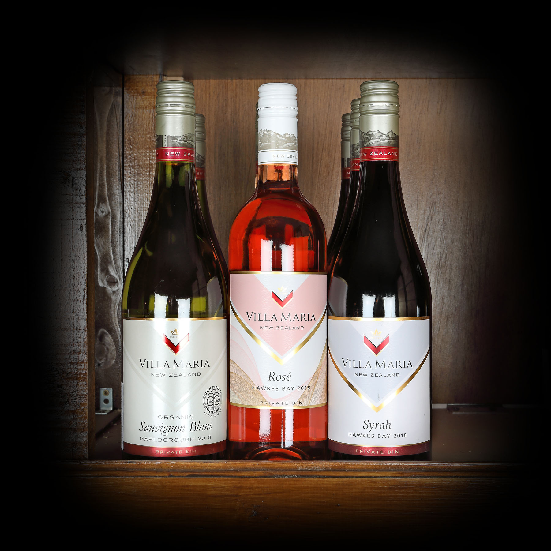 Villa Maria, Sauvignon Blanc Organic, 2018, Marlborough, 3st x 0,75l Villa Maria, Rose, 2018, Hawke's Bay, 3st x 0,75l Villa Maria, Syrah, Hawke's Bay, 2018, 3st x 0,75l