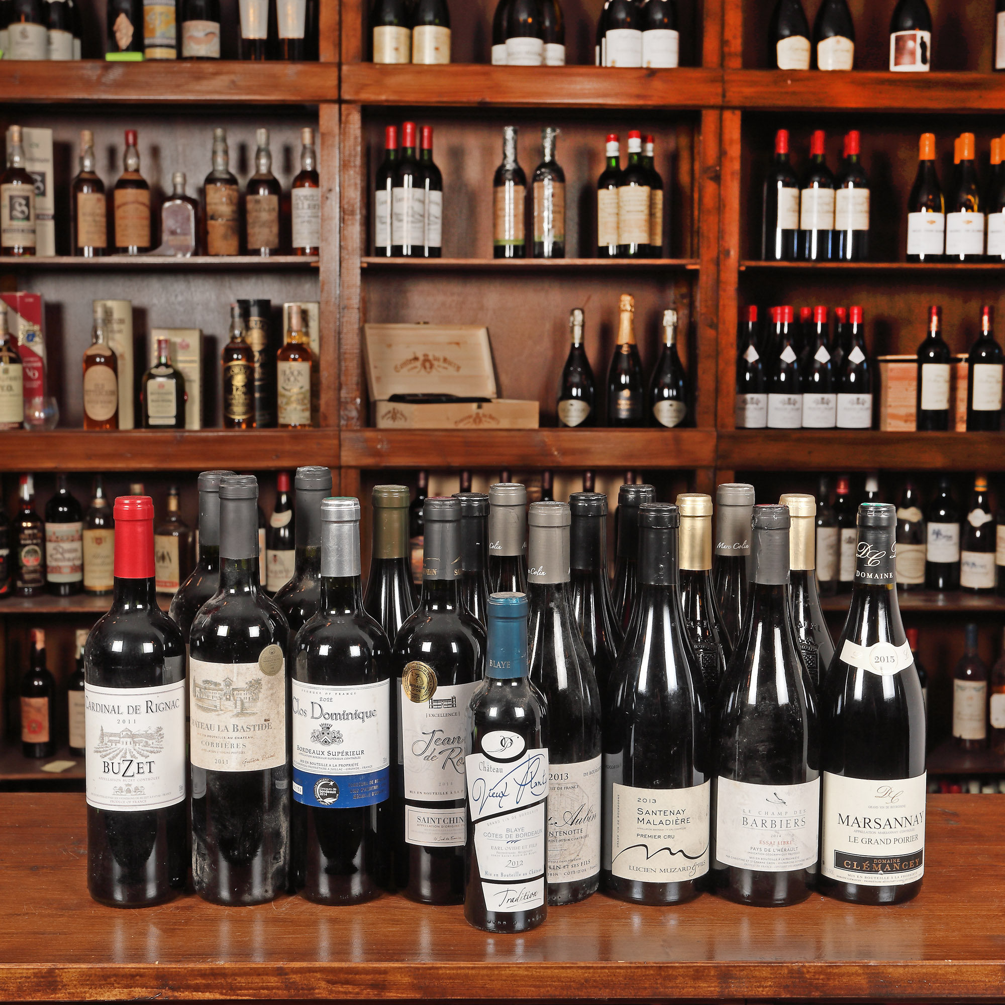 Les Tours des Verdots, Côtes de Bergerac, 2012, 1st x 0,75l Château La Bastide, Corbieres, 2011, 2st x 0,75l Cardinal de Rignac, Buzet AOC, 2011, 1st x 0,75l Santenay Maladiere Premier Cru, Santenay AOC, 2013, 4st x 0,75l La Fontenotte, Saint Aubin AOC, 2013, 3st x 0,75l Domaine Philippe Charlopin, Marsannay, 2013, 2st x 0,75l Les Sorcieres, Côtes du Roussillon, 2014, 1st x 0,75l Le Champ de Barbiers, 2014, 1st x 0,75l Clos Dominique, Bordeaux, 2012, 1st x 0,75l - Medaille d'Argent 2014 Jean de Rose, Saint Chinian AOC, 2014, 1st x 0,75l - Medaille d'Or 2015 Domaine Clemancey, Le Grand Poirier, Marsannay, 2015, 1st x 0,75l Château Vieux Planty, Blaye, Bordeaux AOC, 2012, 1st x 0,375l Având în vedere vârsta înaintată a sticlelor, nivelul de lichid în sticlă, etichetele și capișoanele pot avea semne de evaporare și/sau uzură.