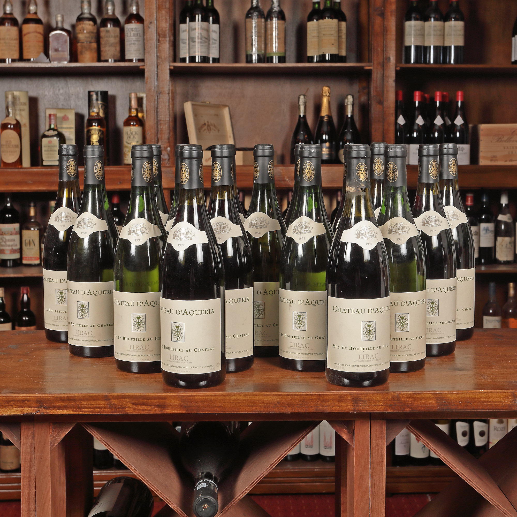 Château d'Aqueria, Lirac, Franta, roșu, 1997, 9st x 0,75l Château d'Aqueria, Lirac, Franta, alb, 1998, 8st x 0,75l Având în vedere vârsta înaintată a sticlelor, nivelul de lichid în sticlă, etichetele și capișoanele pot avea semne de evaporare și/sau uzură.