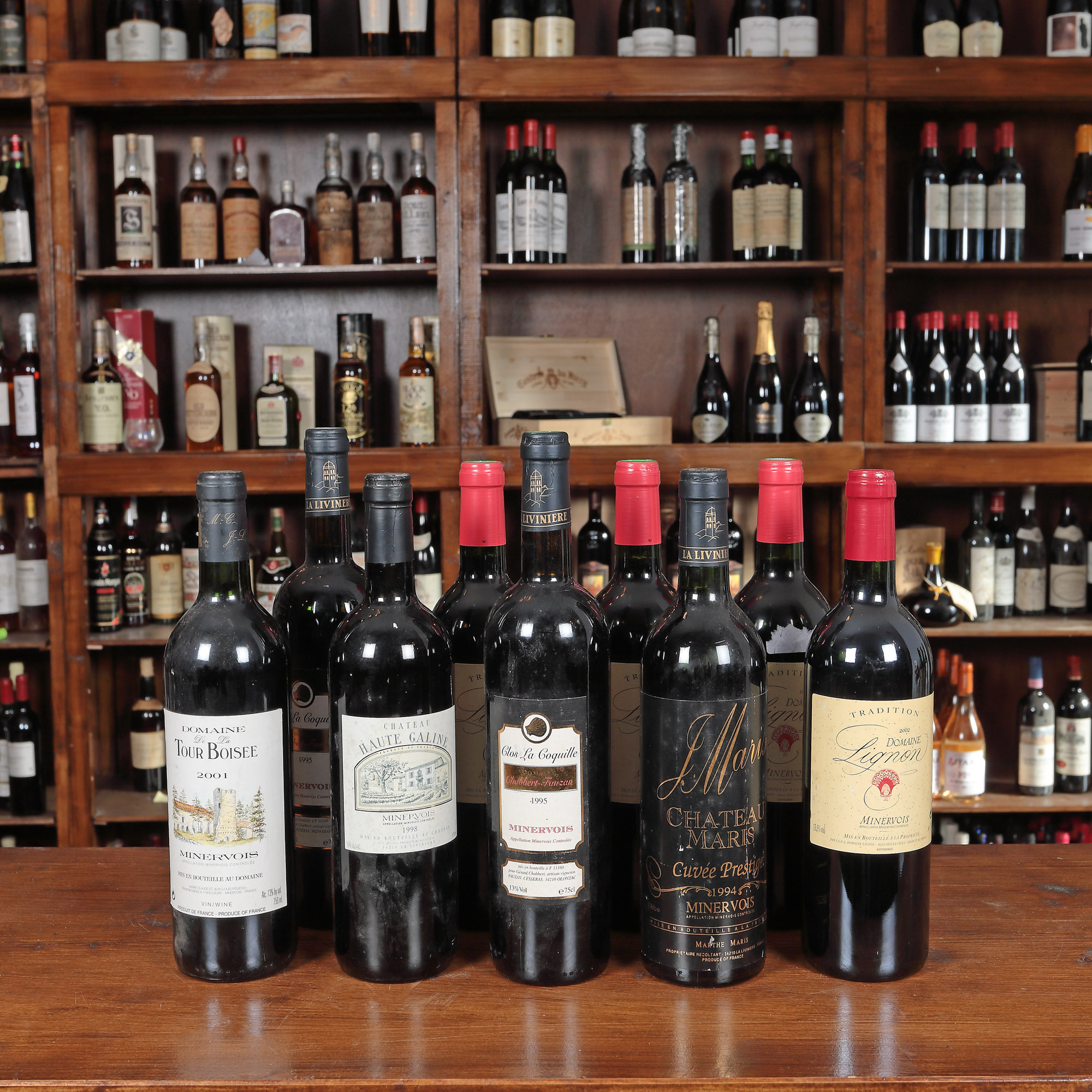 176. Lot de vinuri din zona Minervois, Franța, 1995-2002, 9st x 0,75l