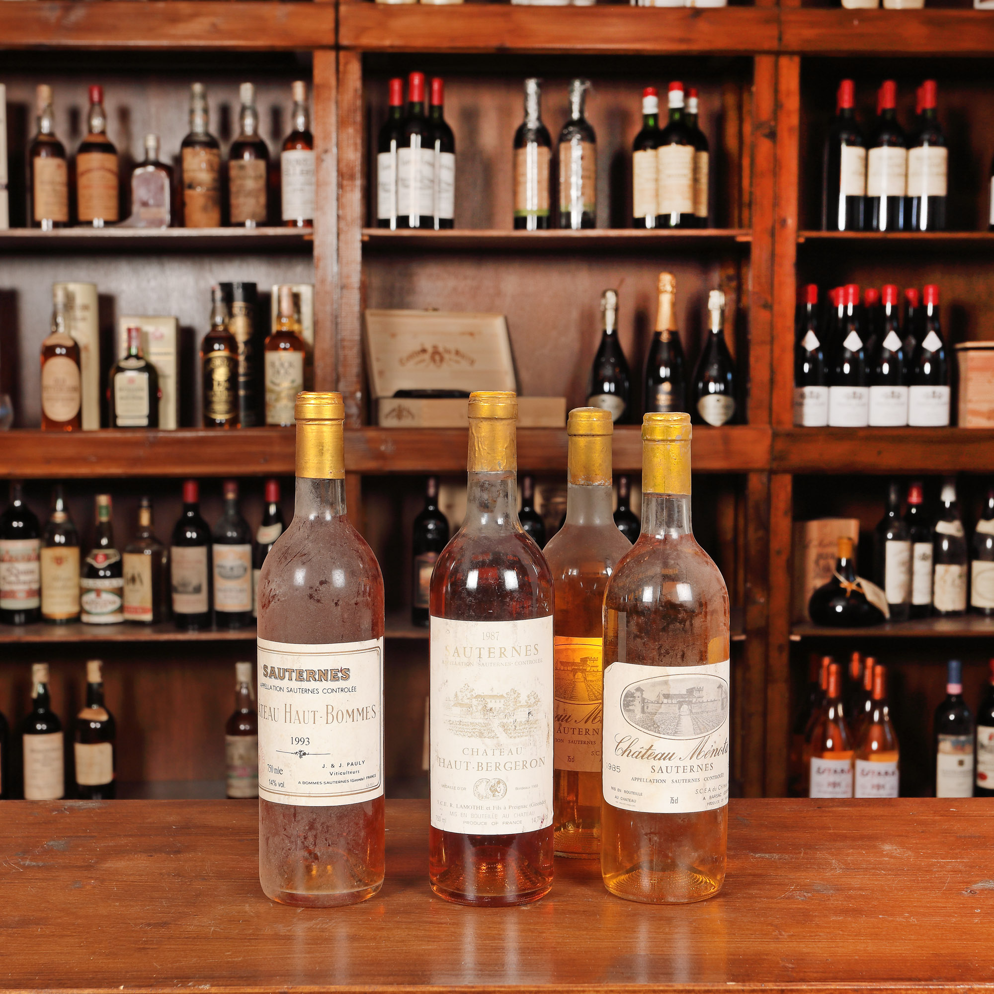 Château Menota, Sauternes AOC, 1985, 2st x 0,75l Château Haut-Bergeron, Sauternes AOC, 1987, 1st x 0,75l Château Haut-Bommes, Sauternes AOC, 1993, 1st x 0,75l Având în vedere vârsta înaintată a sticlelor, nivelul de lichid în sticlă, etichetele și capișoanele pot avea semne de evaporare și/sau uzură.
