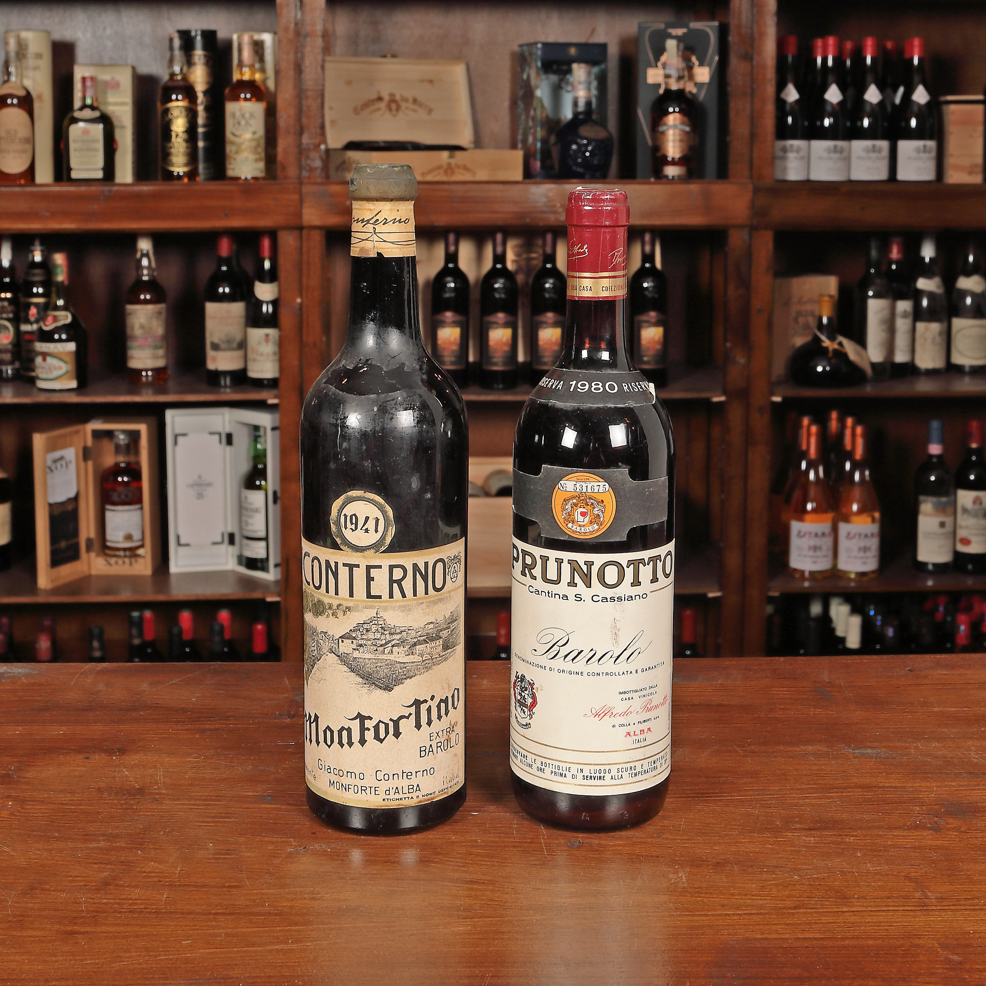 154. Lot de vinuri italienești de colecție, Conterno, Monfortino, Monforte d'Alba, 1941, și Prunotto, Barolo, 1981, 2st x 0,75l