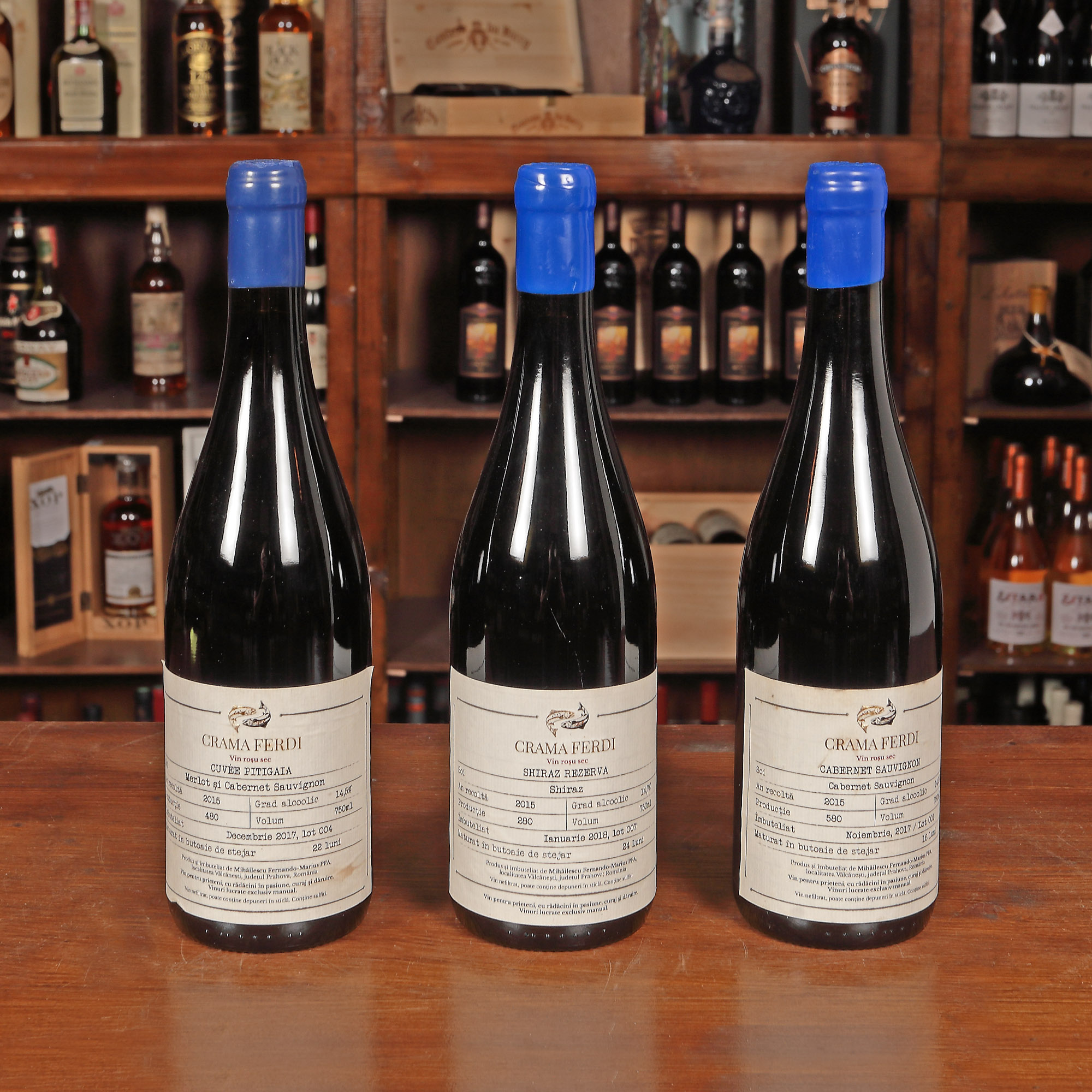 93. Lot de vinuri roșii, Shiraz, Cuvée Piţigaia și Cabernet Sauvignon, rezerva, Crama Ferdi, Dealu Mare, 2015, 3st x 0,75l
