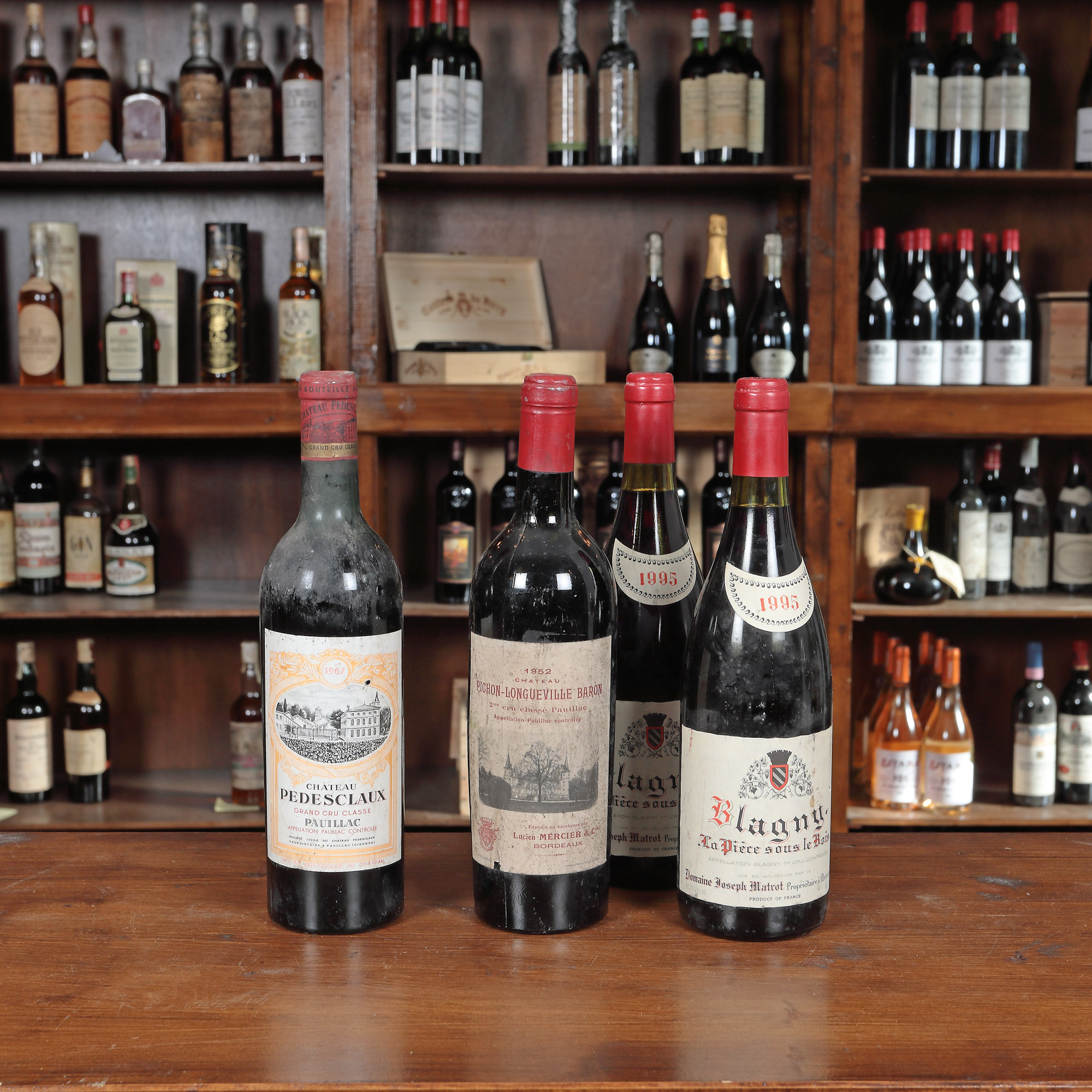 Domaine Joseph Matrot La Pièce Sous le Bois, Blagny Premier Cru, 1995, 2st x 0,75l Chateau Pedesclaux, Grand Cru Classé, Pauillac, 1967, 1st x 0,75l (această sticlă se tranzacționează la peste 450 de euro sticla) Chateau Pichon - Longueville Baron, 2eme Cru Classé Pauillac, Bordeaux, 1952, 1st x 0,75l (această sticlă se tranzacționează la peste 700 de euro sticla) Având în vedere vârsta înaintată a sticlelor, nivelul de lichid în sticlă, etichetele și capișoanele pot avea semne de evaporare și/sau uzură.