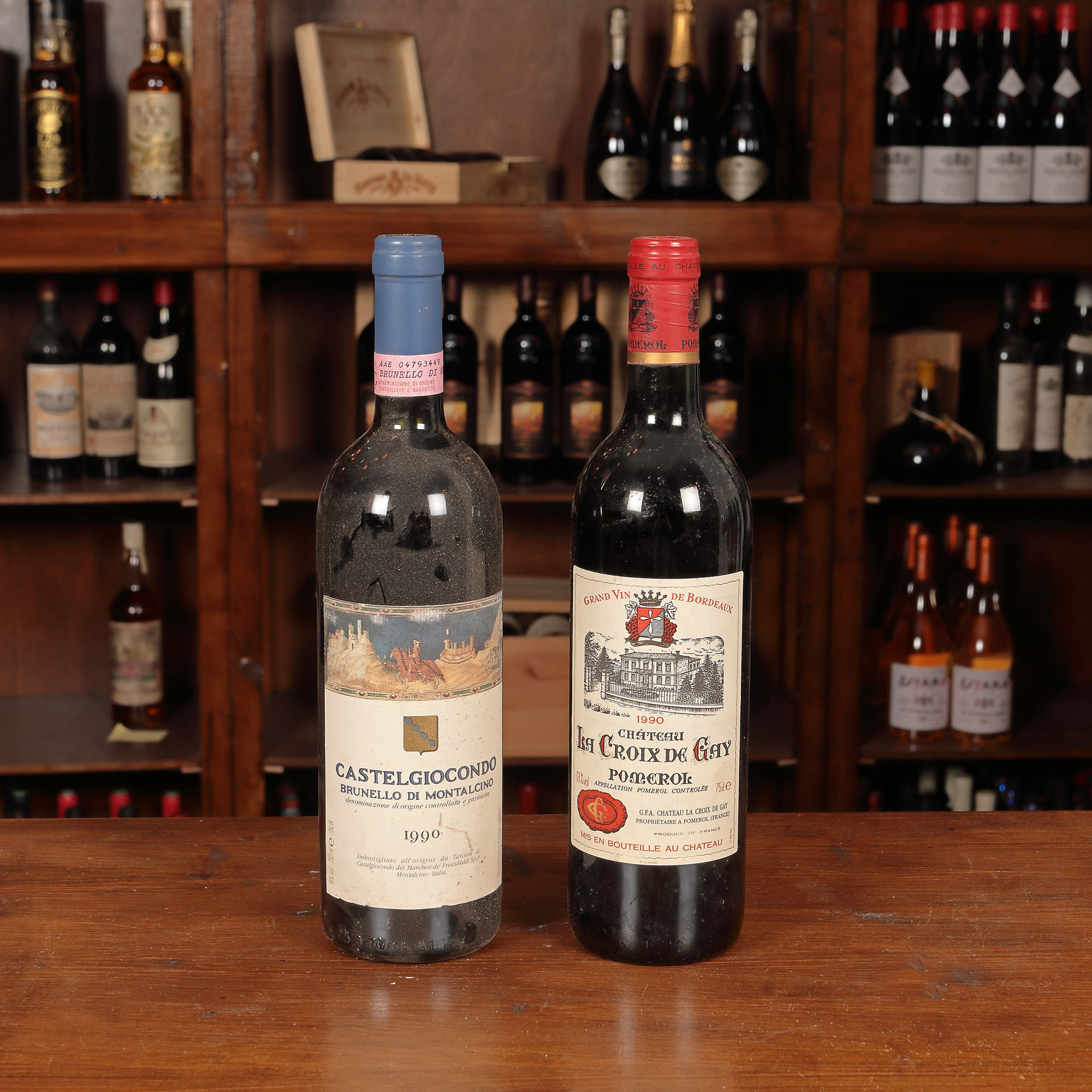 Castel Giocondo, Brunello di Montalcino, 1990, 1st x 0,75l Château La Croix de Gay, Pomerol, 1990, 1st x 0,75l Având în vedere vârsta înaintată a sticlelor, nivelul de lichid în sticlă, etichetele și capișoanele pot avea semne de evaporare și/sau uzură.