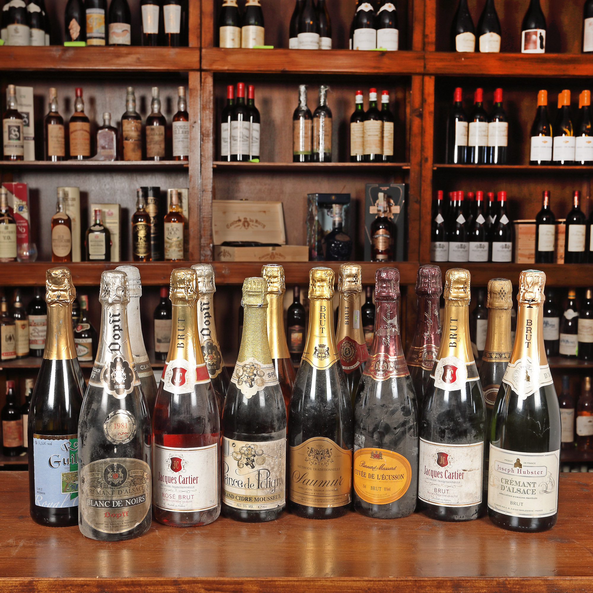 Blanc de Blancs, Clairette de Die, brut, 1st x 0,75l Cremant d'Alsace, Blanc de Noirs, brut, 2st x 0,75l Blanc de Blancs, Kruger, metoda champenoise, brut, 1st x 0,75l Jaques Cartier, metoda traditionala, rosé brut, 1st x 0,75l Royal Guillevic, cidre, 1st x 0,75l Bul's Baldes, Malbec rose sparkling, 1st x 0,75l Prince de Poligny, Grand Cidre Mousseux, 1st x 0,75l Saumur, mertoda traditionala, Saumur AOC, 1st x 0,75l Cuvée de L'Ecusson, Bernard Massard, metoda champenoise, brut, 2st x 0,75l Jaques Cartier, metoda traditionala, brut, 1st x 0,75l Blanquette de Limoux, brut, 1st x 0,75l Cremant d'Alsace, Joseph Hubster, brut, 1st x 0,75l Având în vedere vârsta înaintată a sticlelor, nivelul de lichid în sticlă, etichetele și capișoanele pot avea semne de evaporare și/sau uzură.