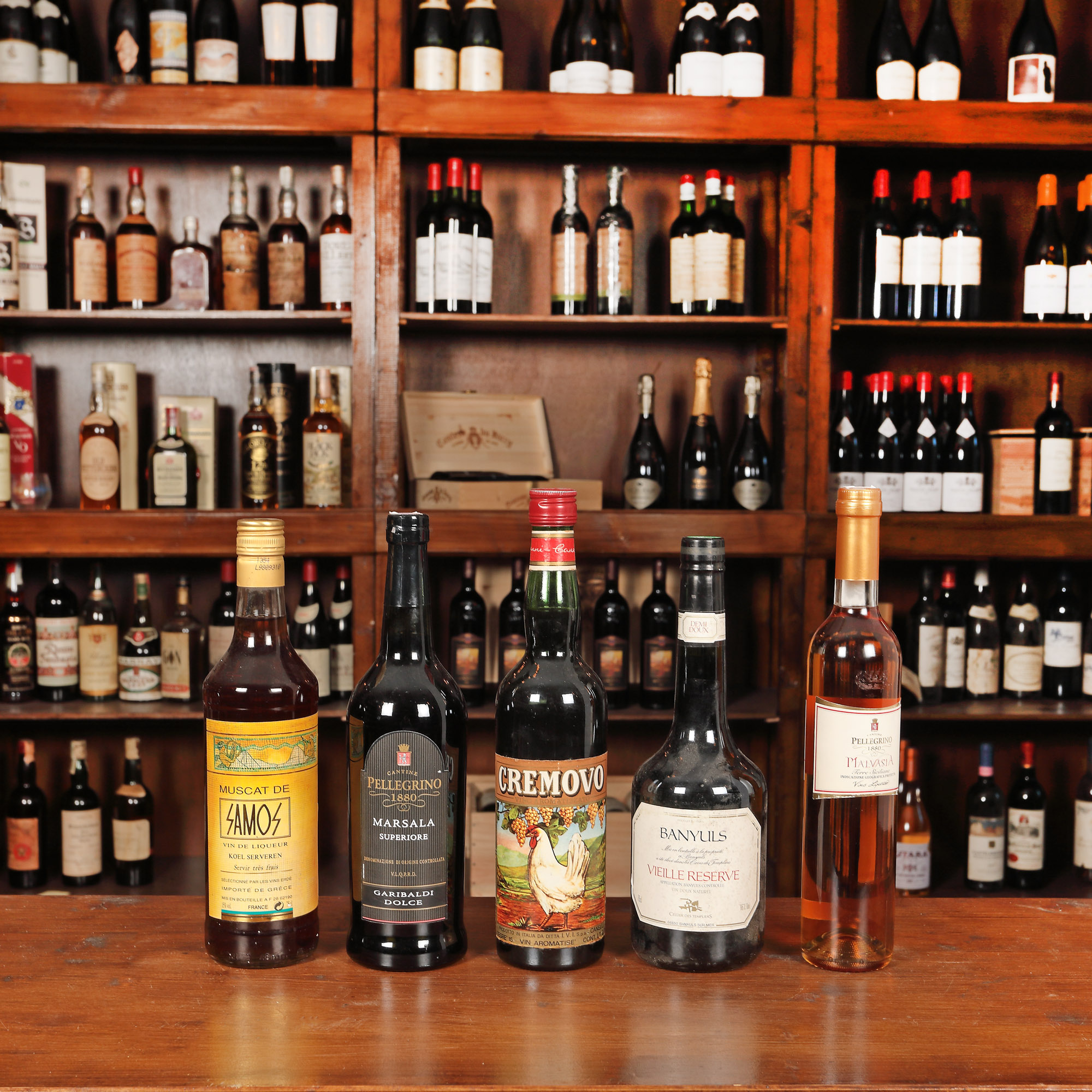 Cantine Pellegrino, Marsala Superiore, Garibaldi dolce, Italia, 1st x 0,75l Muscat de Samos, Vin de Liqueur, Franta, 1st x 0,75l Cremovo, vino aromatizzato, Italia, 1st x 0,75l Banyuls, Vieille Reserve, vin doux naturee, Franta, 1st x 0,75l Pellegrino, Malvasia vino liquoroso, Italia, 1st x 0,5l Având în vedere vârsta înaintată a sticlelor, nivelul de lichid în sticlă, etichetele și capișoanele pot avea semne de evaporare și/sau uzură.