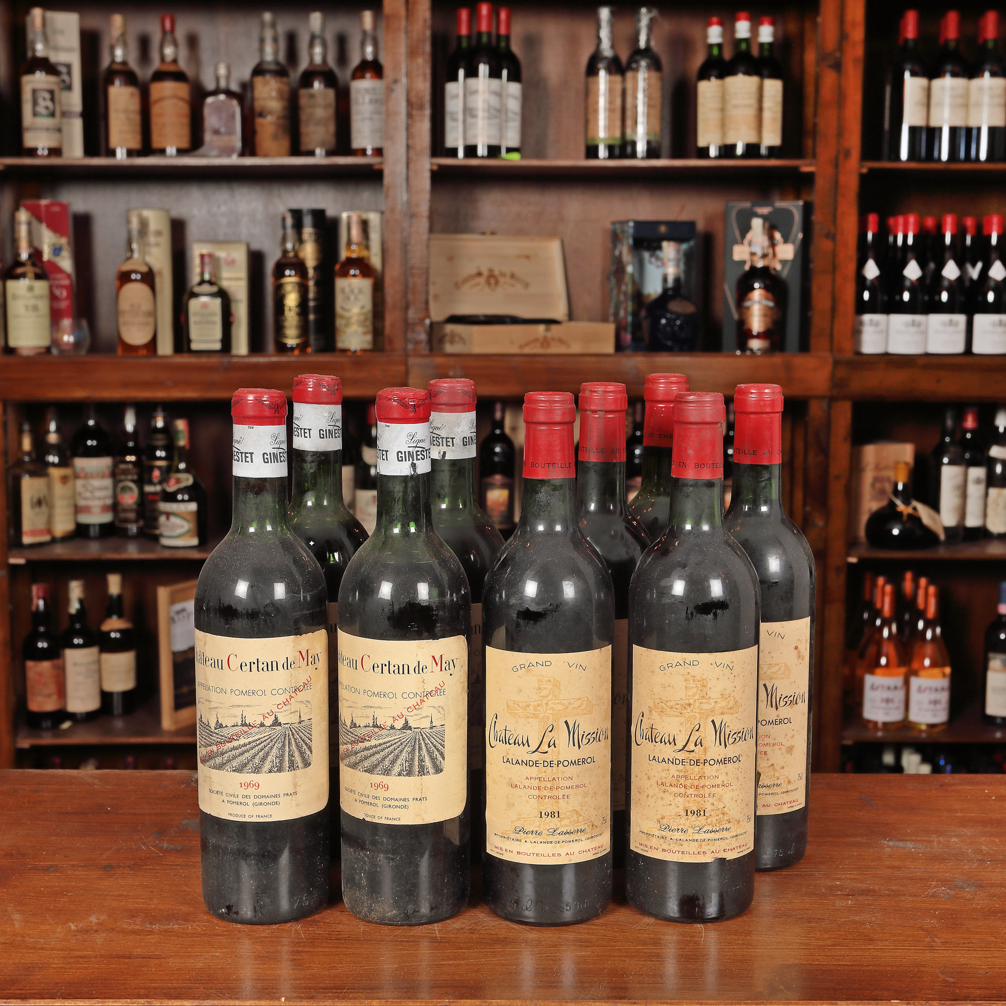 Château Certan de May, Pomerol AOC, 1969, 4st x 0,75l Château La Mission Lalande de Pomerol, Pomerol AOC, 1981, 5st x 0,75l Având în vedere vârsta înaintată a sticlelor, nivelul de lichid în sticlă, etichetele și capișoanele pot avea semne de evaporare și/sau uzură.