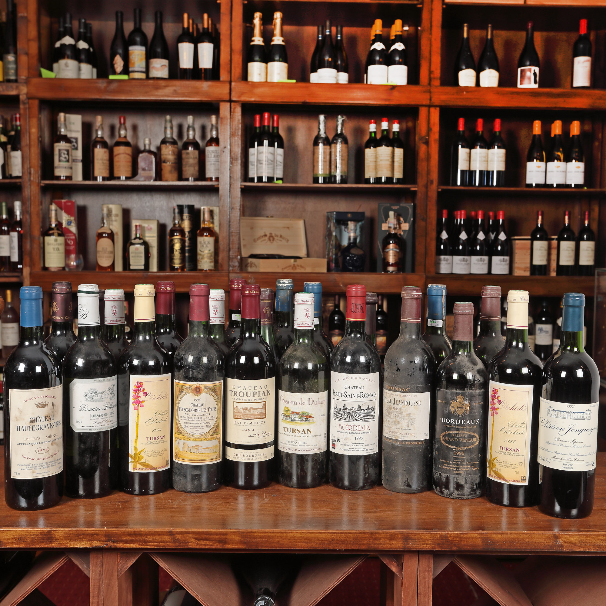 Le Gascon de Dulucq, Tursan AOC, 1994, 3st x 0,74l Château Troupian, Haut-Médoc, 1994, 3st x 0,75 Grande Réserve des Challières, Côtes du Ventoux AOC, 1994, 2st x 0,75l Château Langragnat, Bordeaux AOC, 1995, 1st x 0,75l Dôle de Salquenen, vin du Valais, 1994, 1st x 0,75l Orchidée du Château de Perchade, Tursan AOC, 1995, 2st x 0,75l Domaine Bellegarde, Jurançon AOC, 1995, 1st x 0,75l Château Jeanrousee, Fronsac AOC, 1995, 2st x 0,75l Château Bellevue de Rambaud, Bordeaux, 1994, 2st x 0,75l Château Hautegrave-Tris, Listrac AOC, 1994, 1st x 0,75l Château de Fieuzal, Pessac-Léognan AOC, 1994, 1st x 0,75l Château Peybonhomme Les Tours, Côtes de Blaye AOC, 1994, 1st x 0,75l Château Haut-Saint-Romain, Bordeaux AOC, 1995, 1st x 0,75l Réserve Grand Veneur, Bordeaux AOC, 1995, 1st x 0,75l Château Jonqueyres, Bordeaux Supérieur AOC, 1995, 1st x 0,75l Având în vedere vârsta înaintată a sticlelor, nivelul de lichid în sticlă, etichetele și capișoanele pot avea semne de evaporare și/sau uzură.
