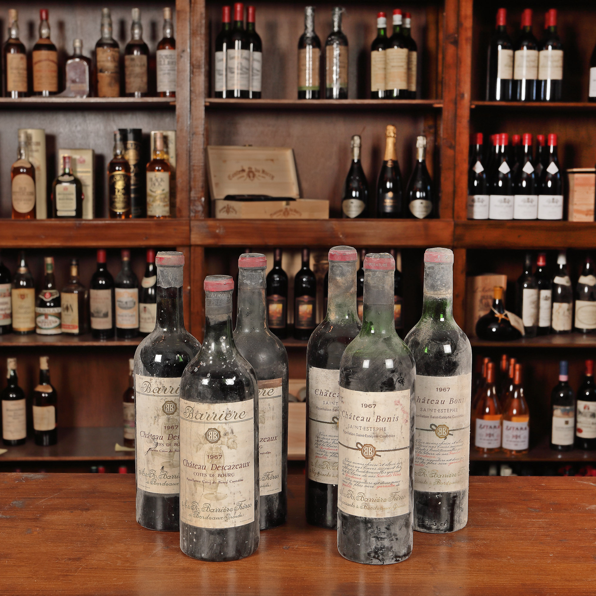 Château Descazeau, Côtes de Bourg AOC, 1967, 3st x 0,75l Château Bonis, Saint-Estèphe AOC, 1967, 3st x 0,75l Având în vedere vârsta înaintată a sticlelor, nivelul de lichid în sticlă, etichetele și capișoanele pot avea semne de evaporare și/sau uzură.