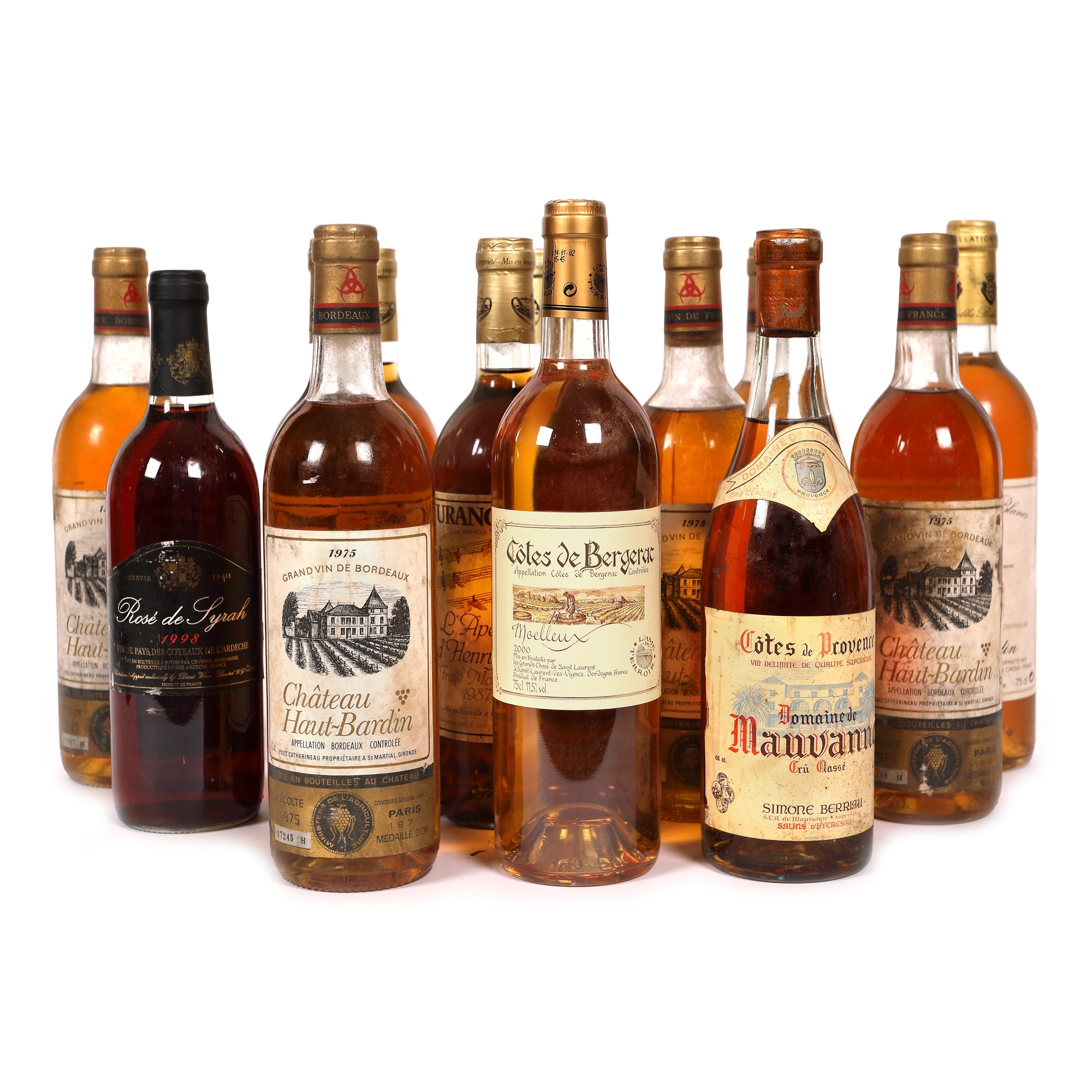 Domaine de Mauvanne, Côtes de Provence Cru Classé, 1st x 0,75l Rose de Syrah, 1998, 1st x 0,75l Côtes de Bergerac, 2000, 1st x 0,75l Jurançon, 1989, 1st x 0,75l Château Haut-Bardin, 1975, 5st x 0,75l Jurançon, 1987, 3st x 0,75l Blanc de Blancs, Cassis, 1997, 1st x 0,75l