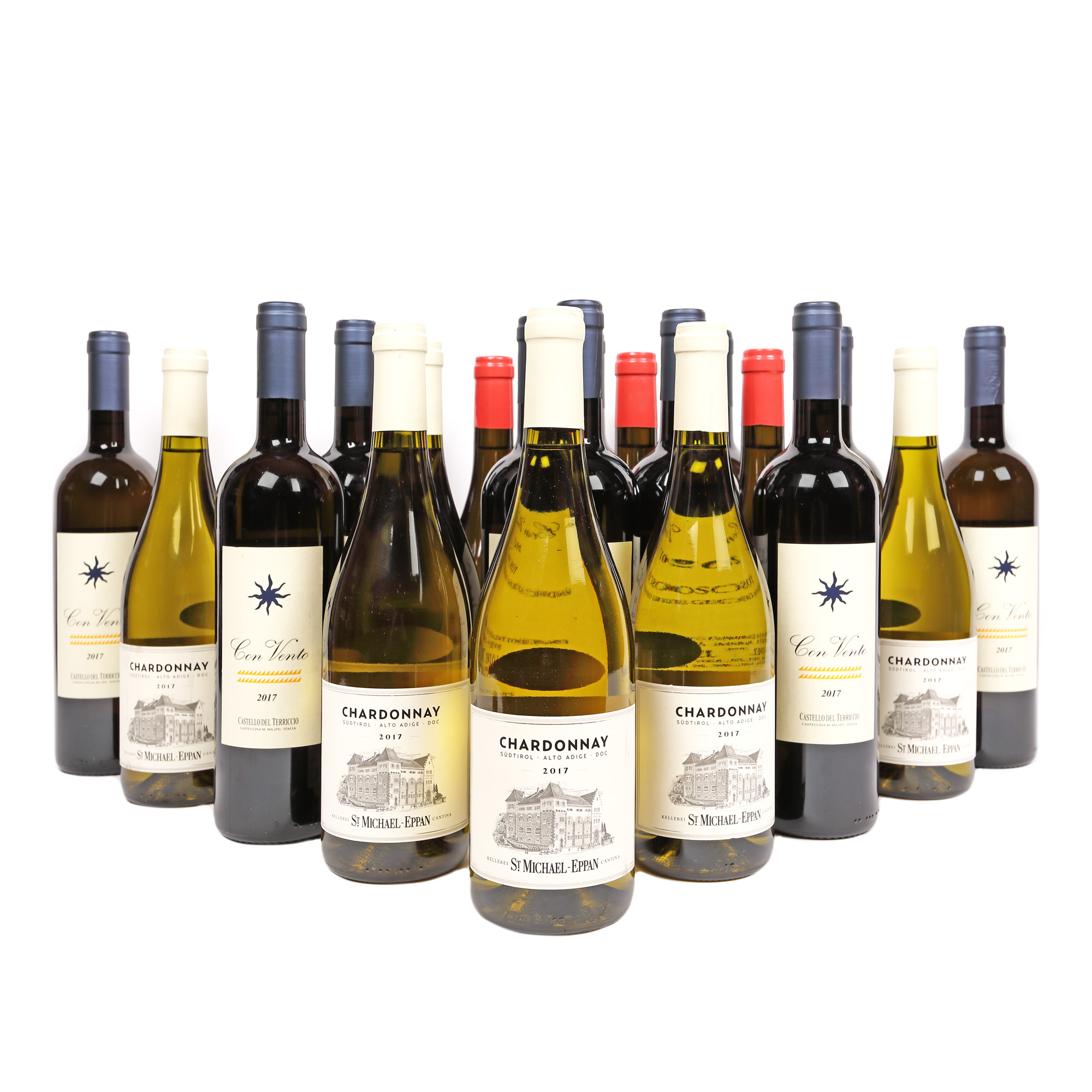 102. San Michele Appiano Chardonnay, 2017, 6st x 0,75l, Il Borro Chardonnay Lamelle, Toscana Bianco, Chardonnay, 2018, 3st x 0,75l, Con Vento Bianco, Castello del Terriccio, 2017, 13st x 0,75l