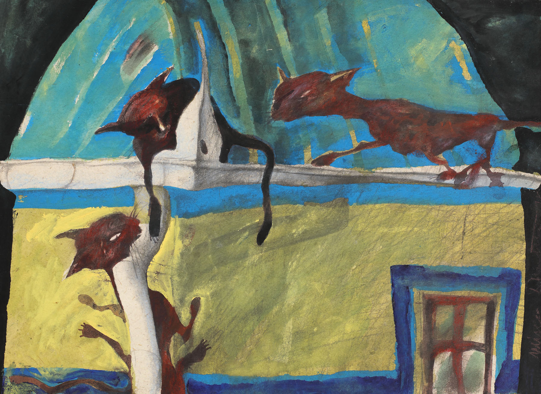 guașă, acuarelă și creion pe hârtie lipită pe carton