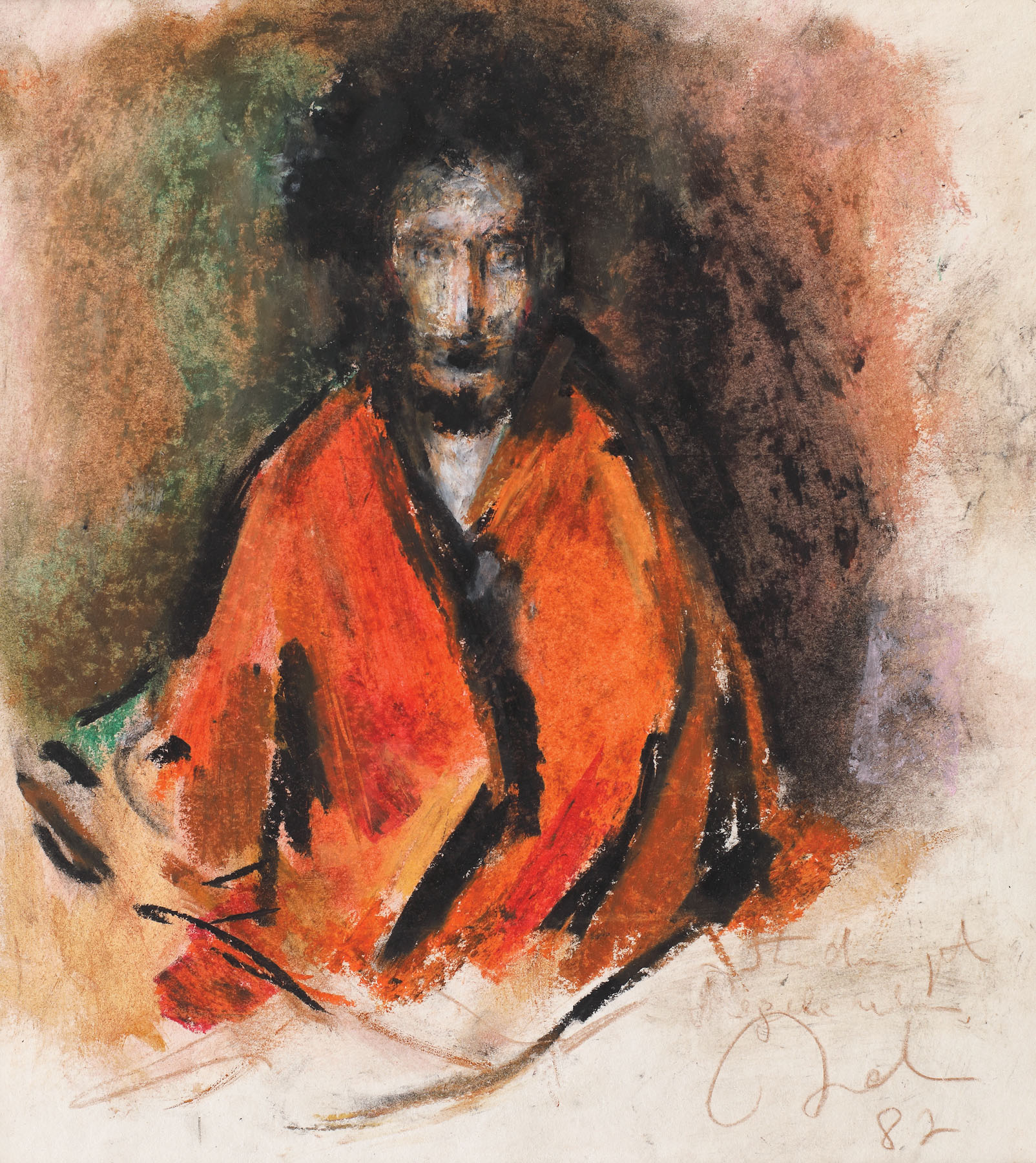 semnat, datat și intitutat dreapta jos, cu brun, ”Studiu pt. regele nebun, Baba, (19)87”