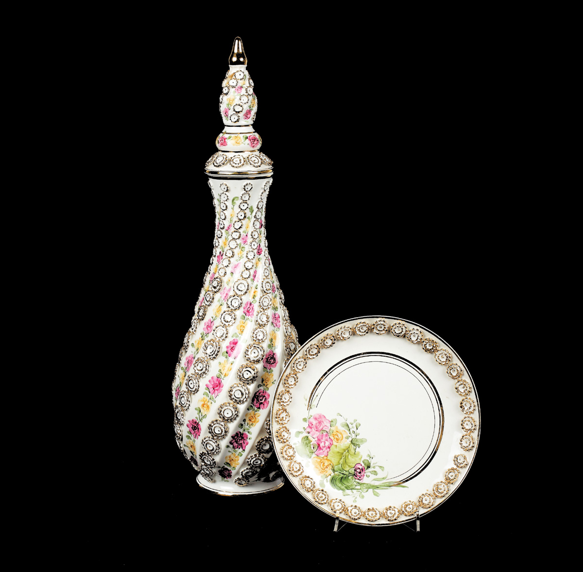 99. Set format din vas și farfurie decorate cu motive florale, oferit cadou ministrului de externe George Macovescu de către Süleyman Demirel