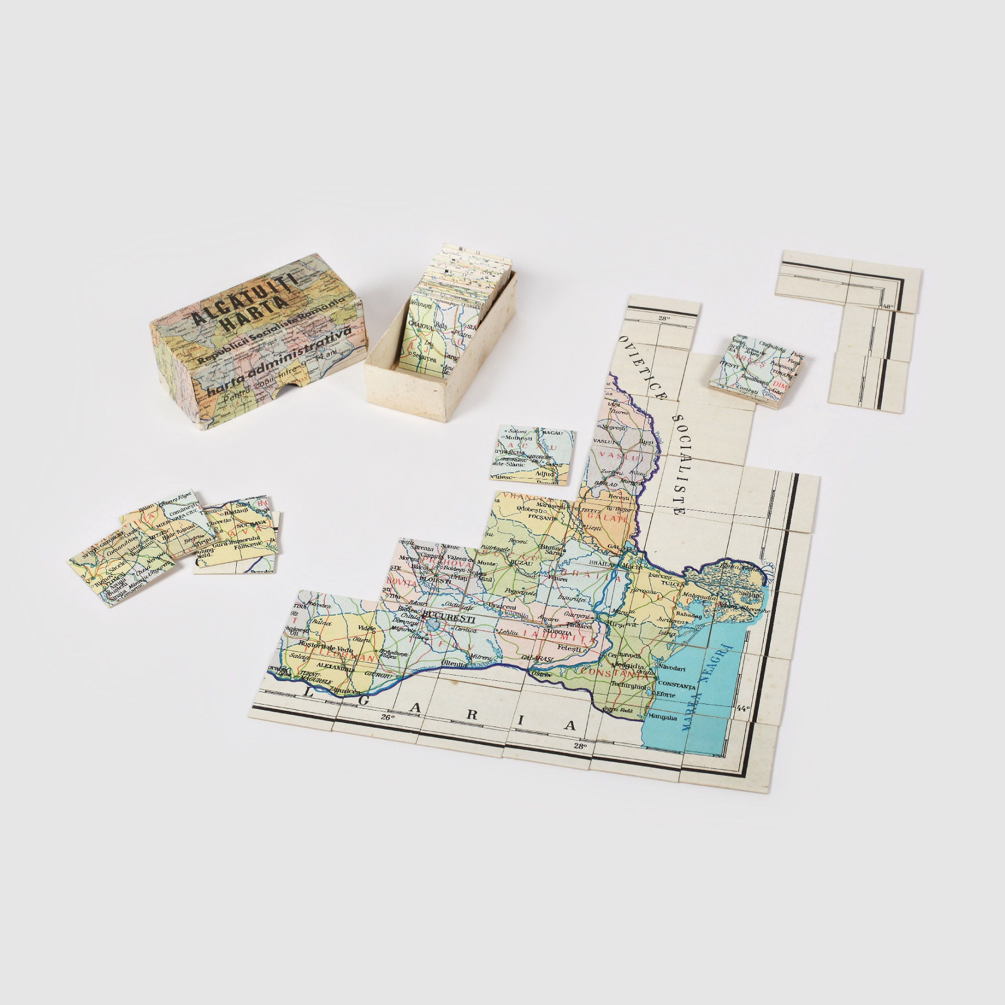 57. Puzzle, "Alcătuiți Harta R.S.R.", pentru copii între 9 - 14 ani, anii 1980