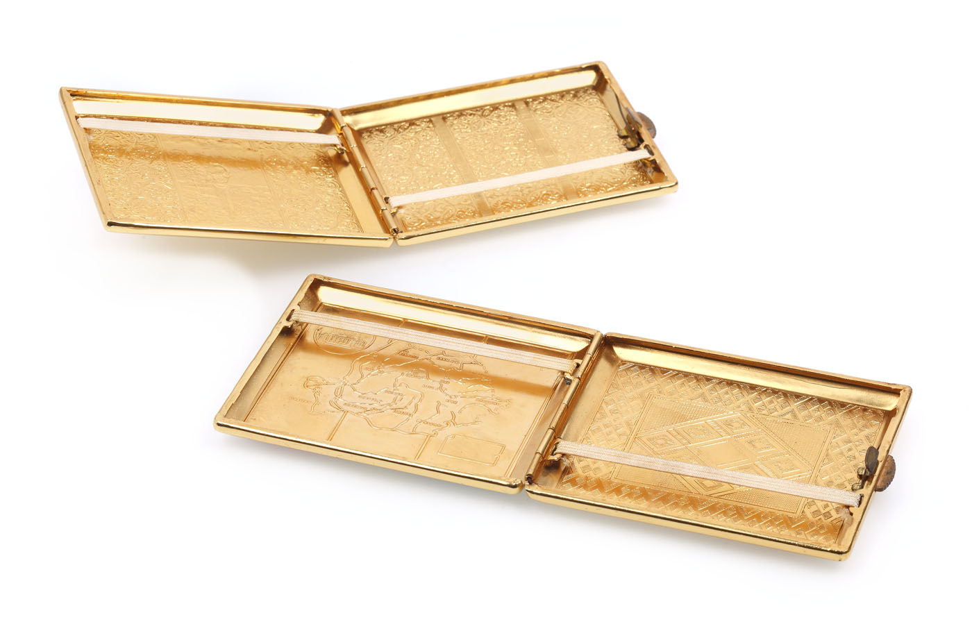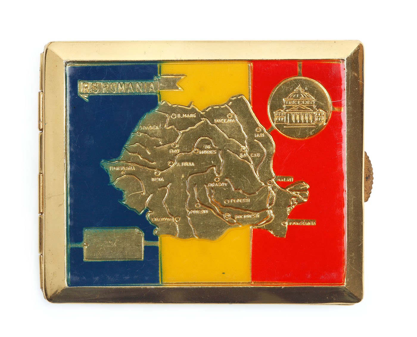 56. Lot format din două tabachere cu tematici românești (R.S.R. și "Rodica" de Nicolae Grigorescu), cca. 1975