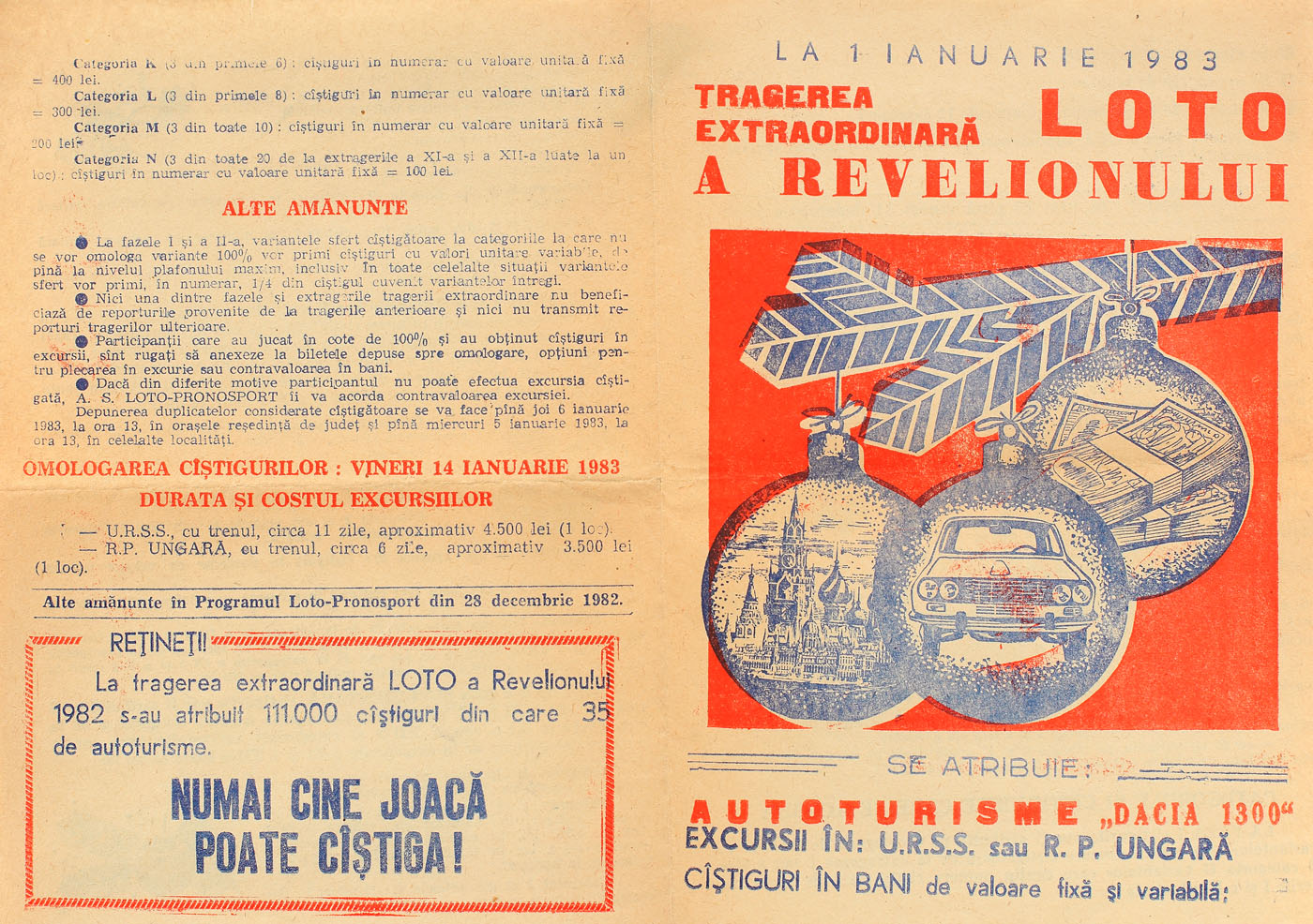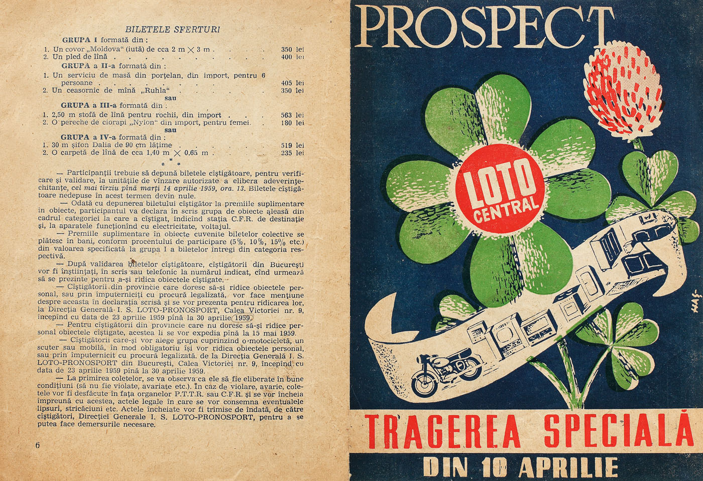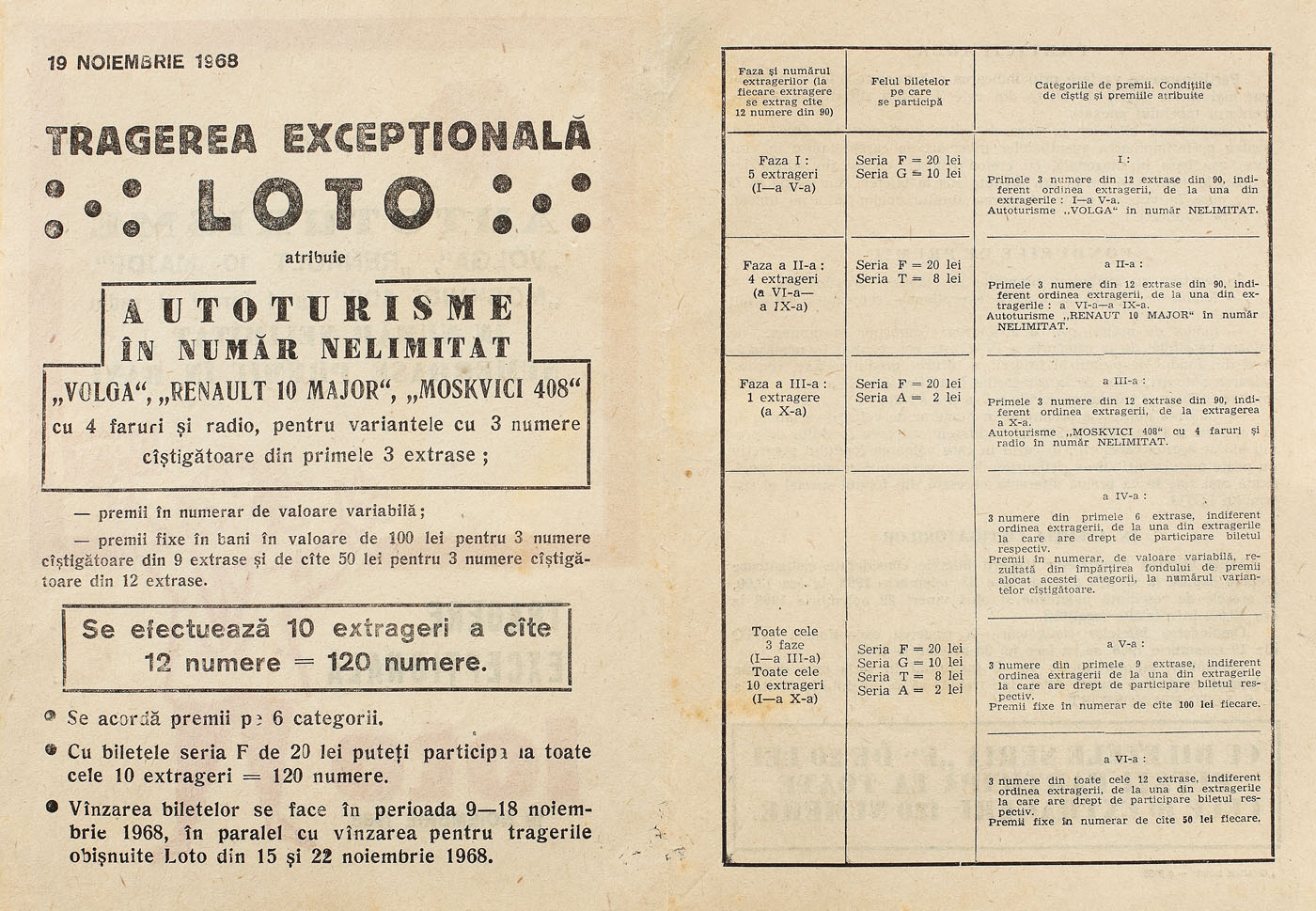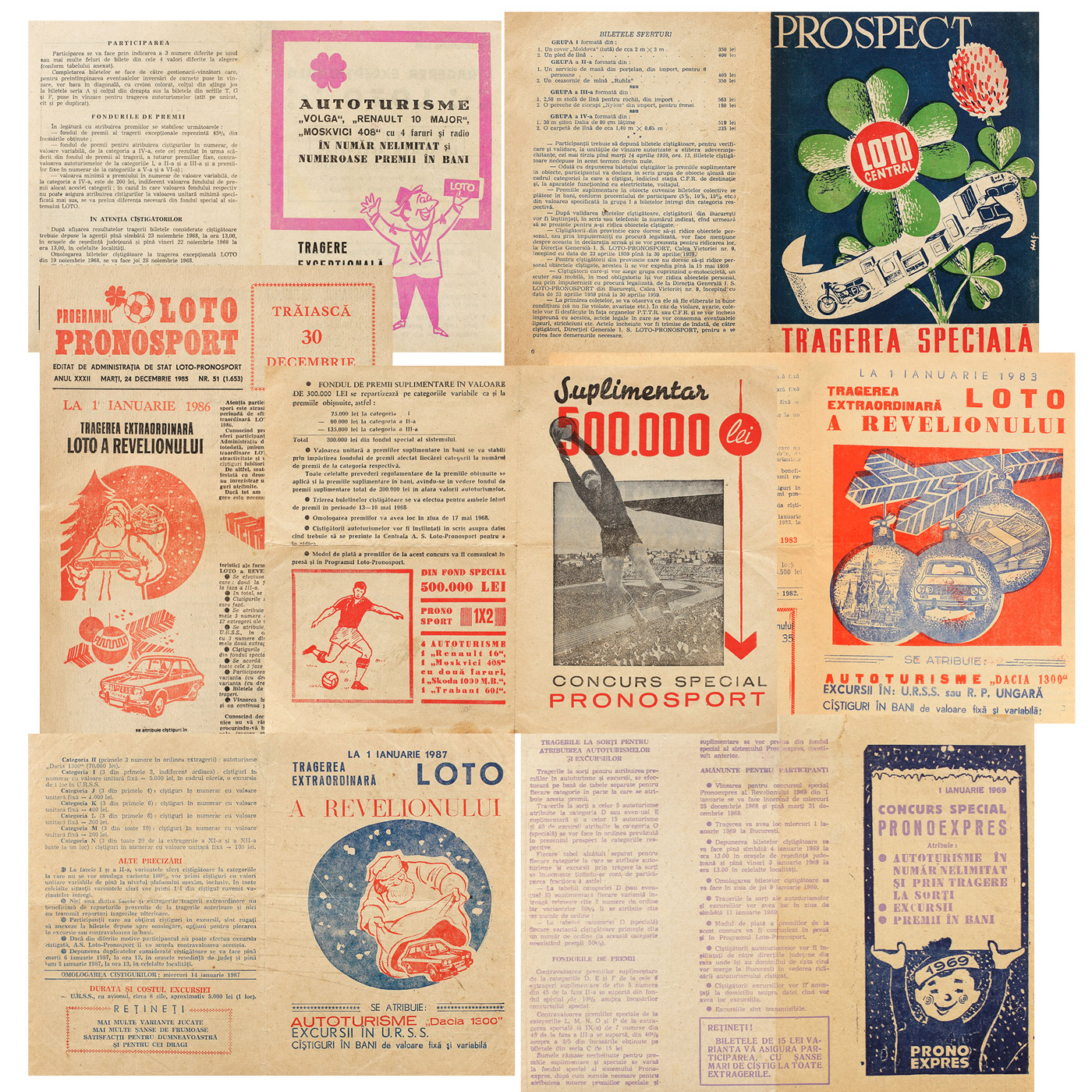 58. Lot format din șapte reclame pentru Loteria Română, varii trageri, anii 1959 - 1987