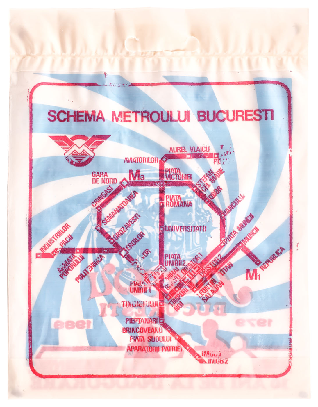 64. Sacoşă aniversară Metroul Bucureşti, 10 ani de la inaugurare, 1989