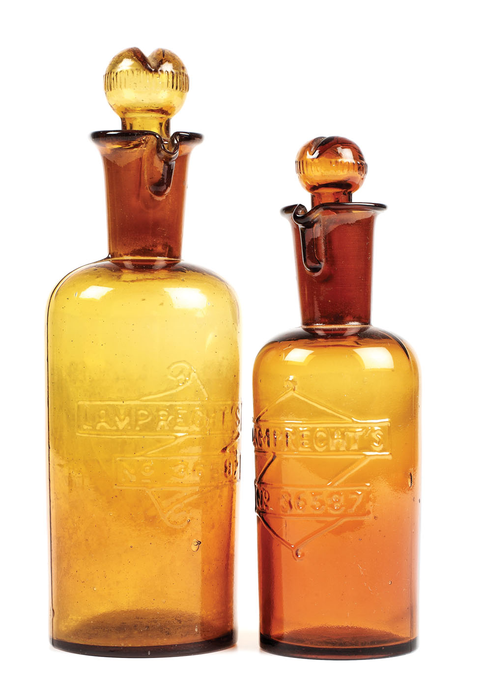 181. Lot de două flacoane pentru substanțe chimice, purtând logo-ul firmei Lamprecht's din Germania, a doua jumătate a sec. XIX
