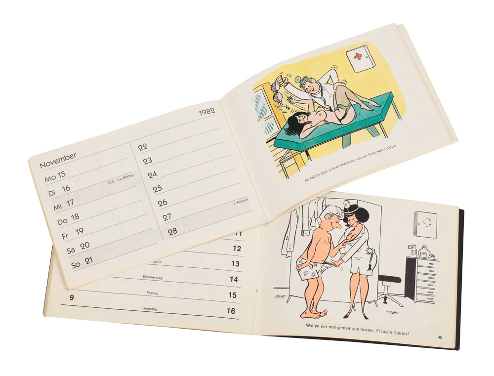 Editate la Hamburg, cele două calendare de buzunar făceau parte din seria cunoscută "Husten Sie mal/Tușiți, vă rog". Fiecare pagină este însoțită de o caricatură erotică a cărei eroină, asistenta Susy, înflăcărează imaginația pacienților săi.