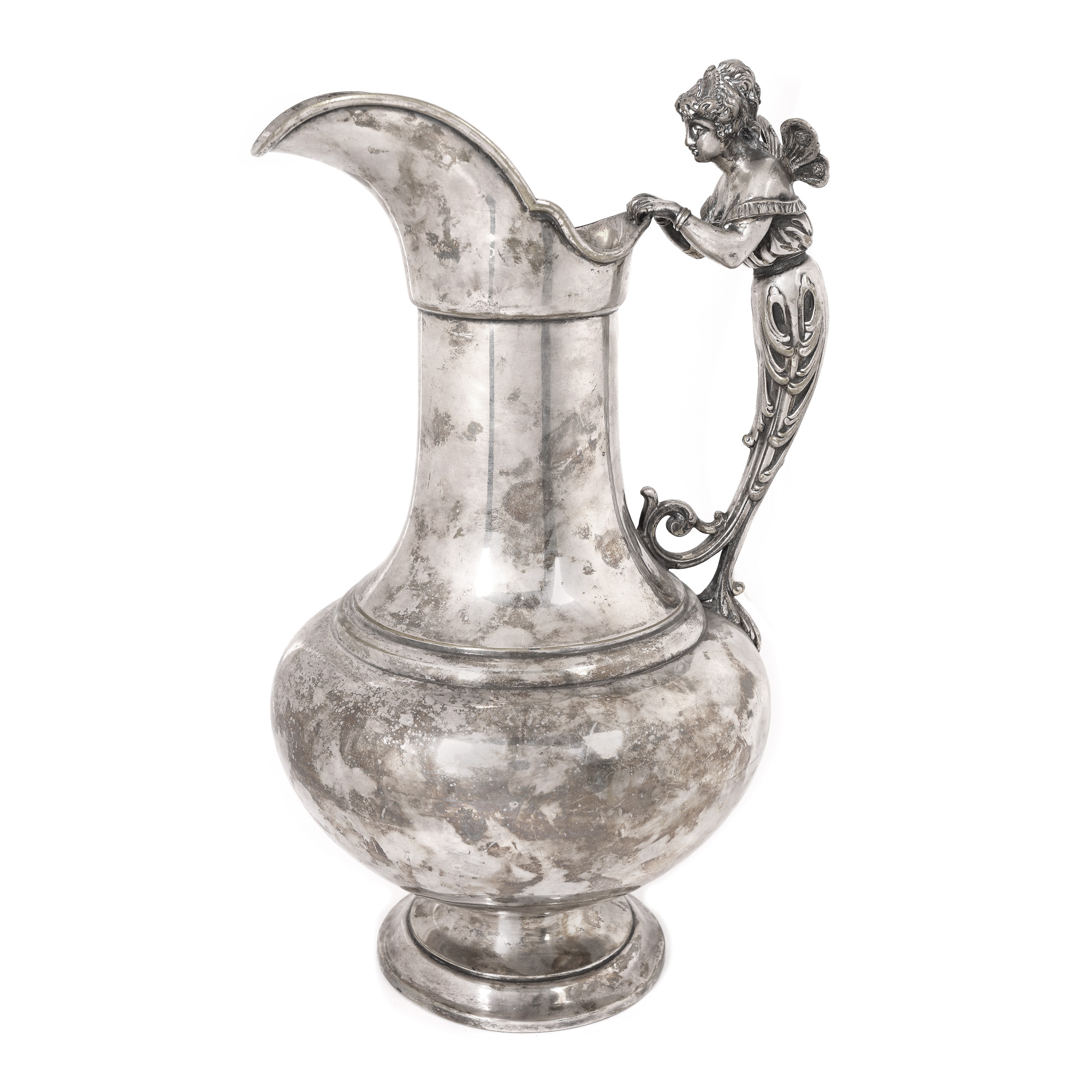 79. Carafă Art Nouveau, decorată cu nimfă, sec. XIX