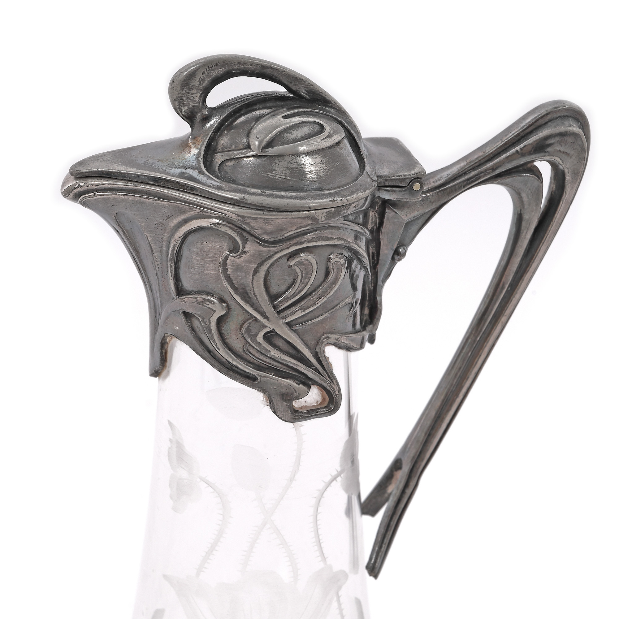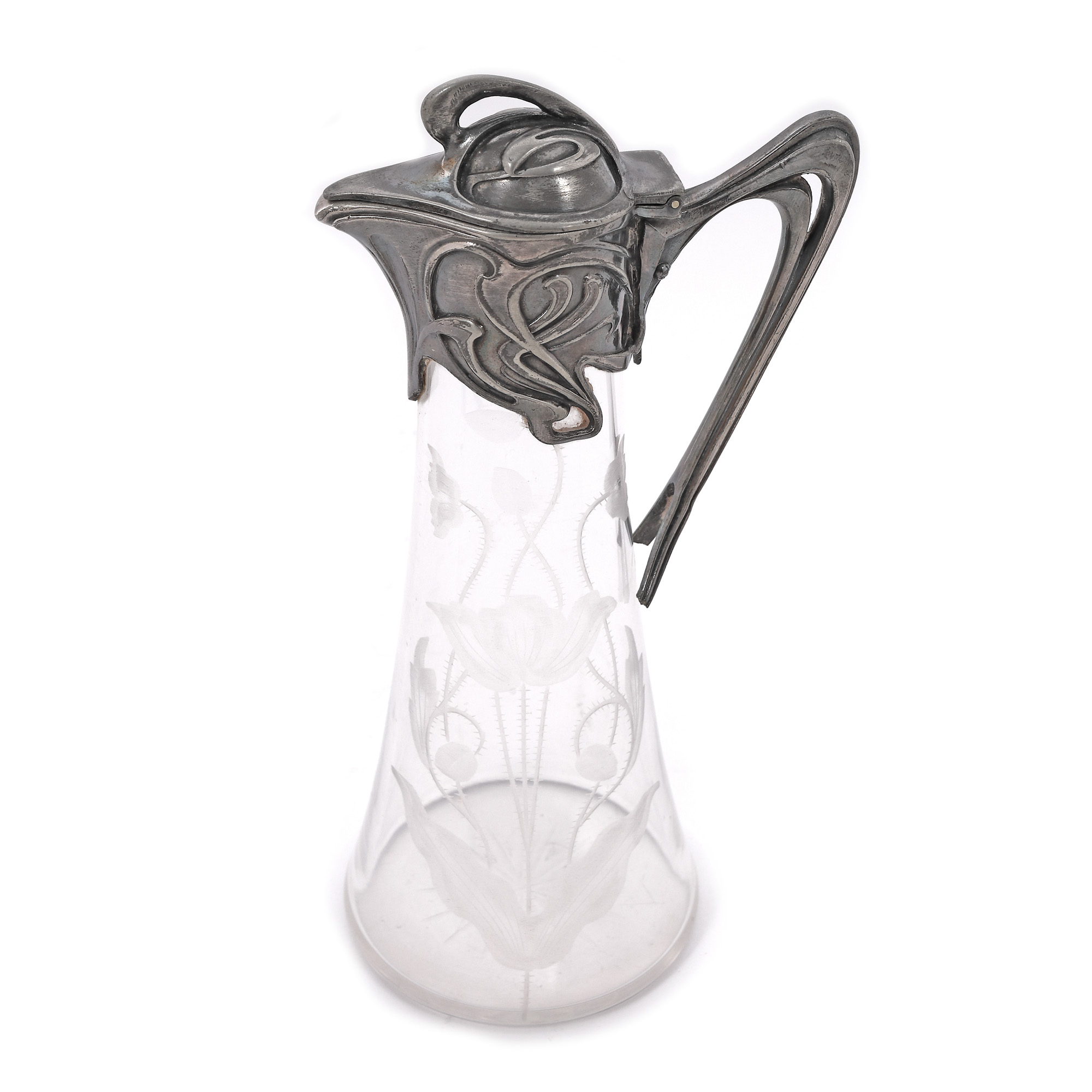 131. Carafă Art Nouveau din cristal gravat, decorată cu flori de maci, începutul secolului XX
