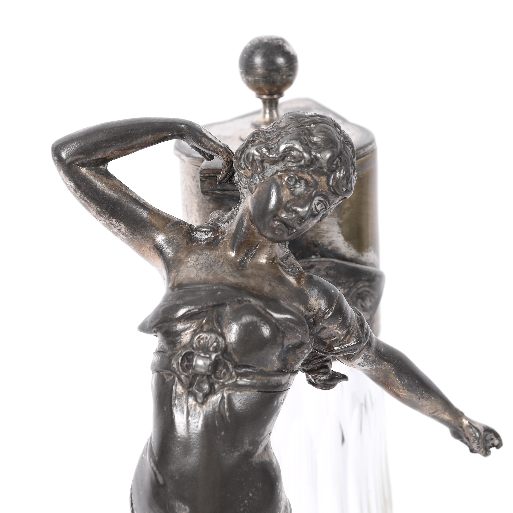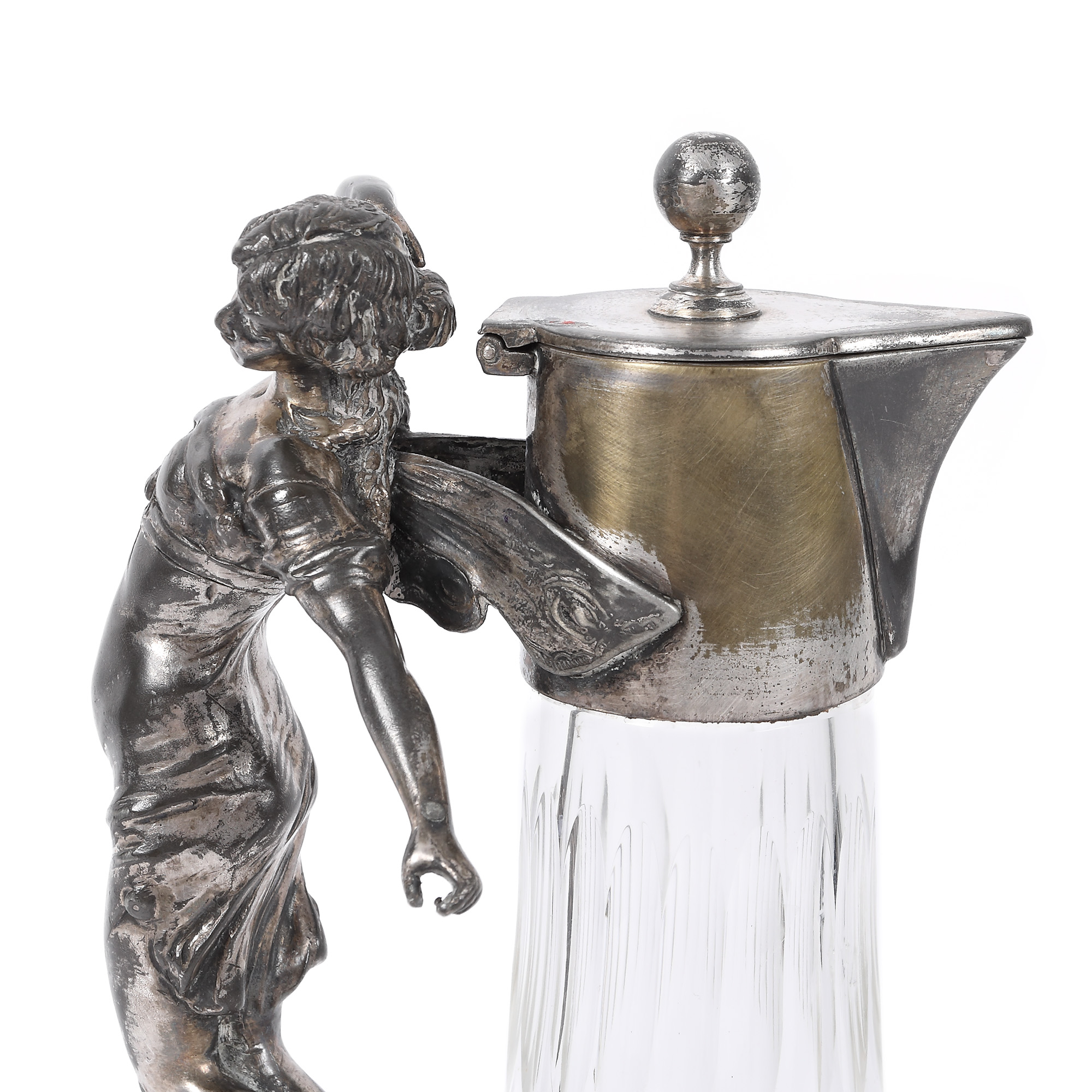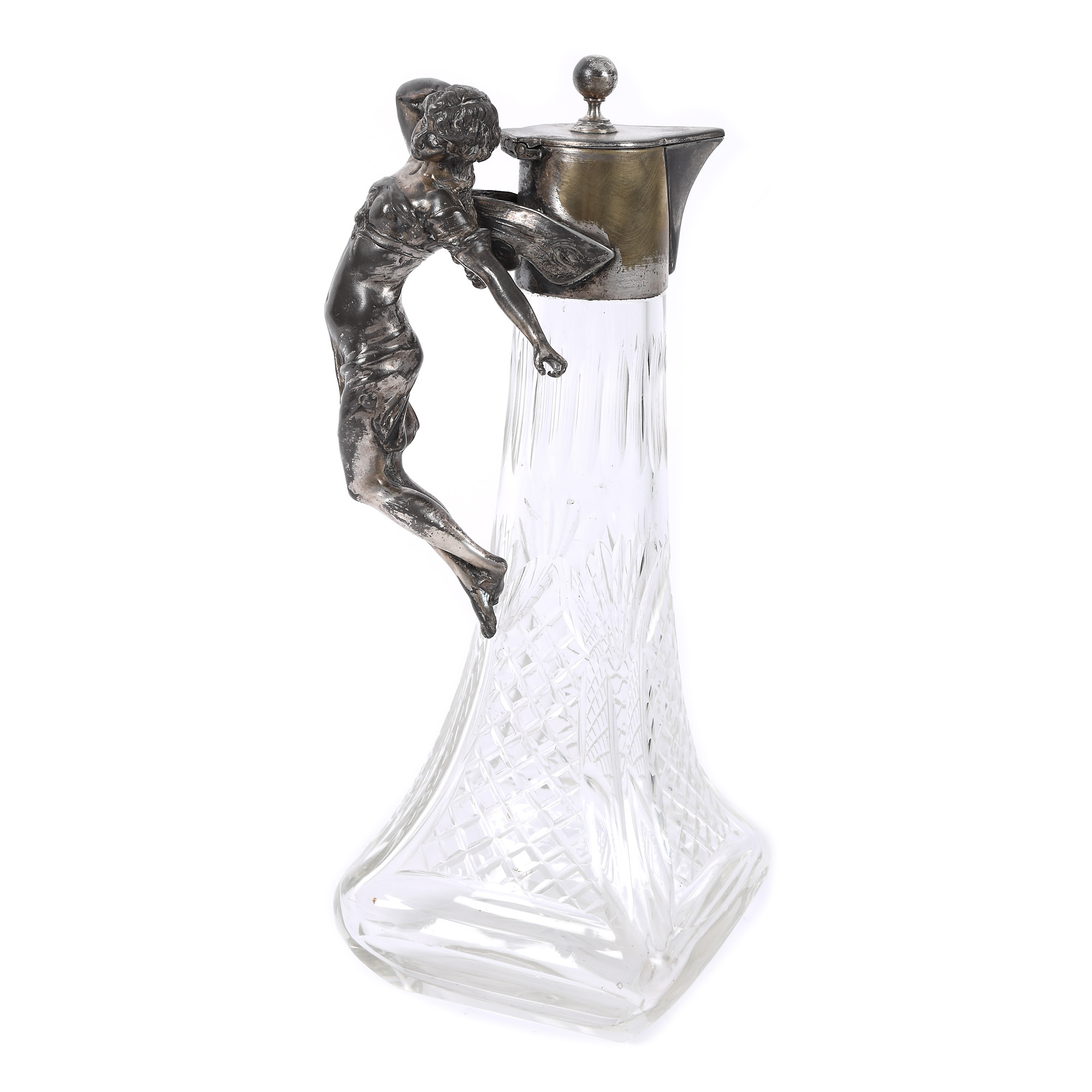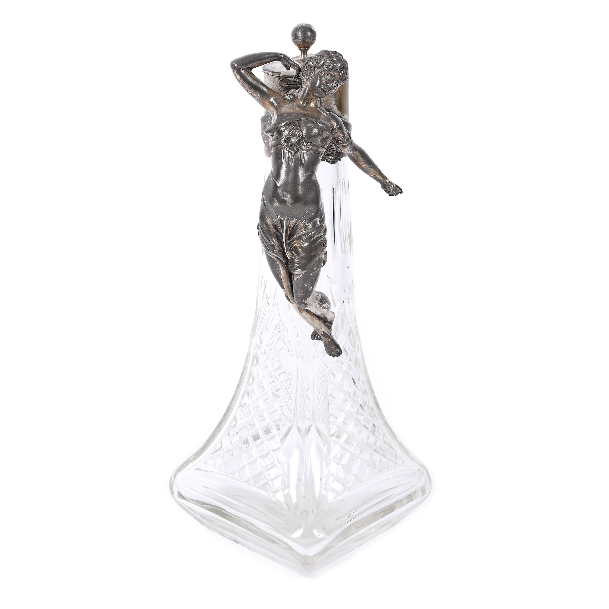 217. Carafă în stil Art Nouveau, din cristal gravat, decorat cu nimfă, începutul sec. XX