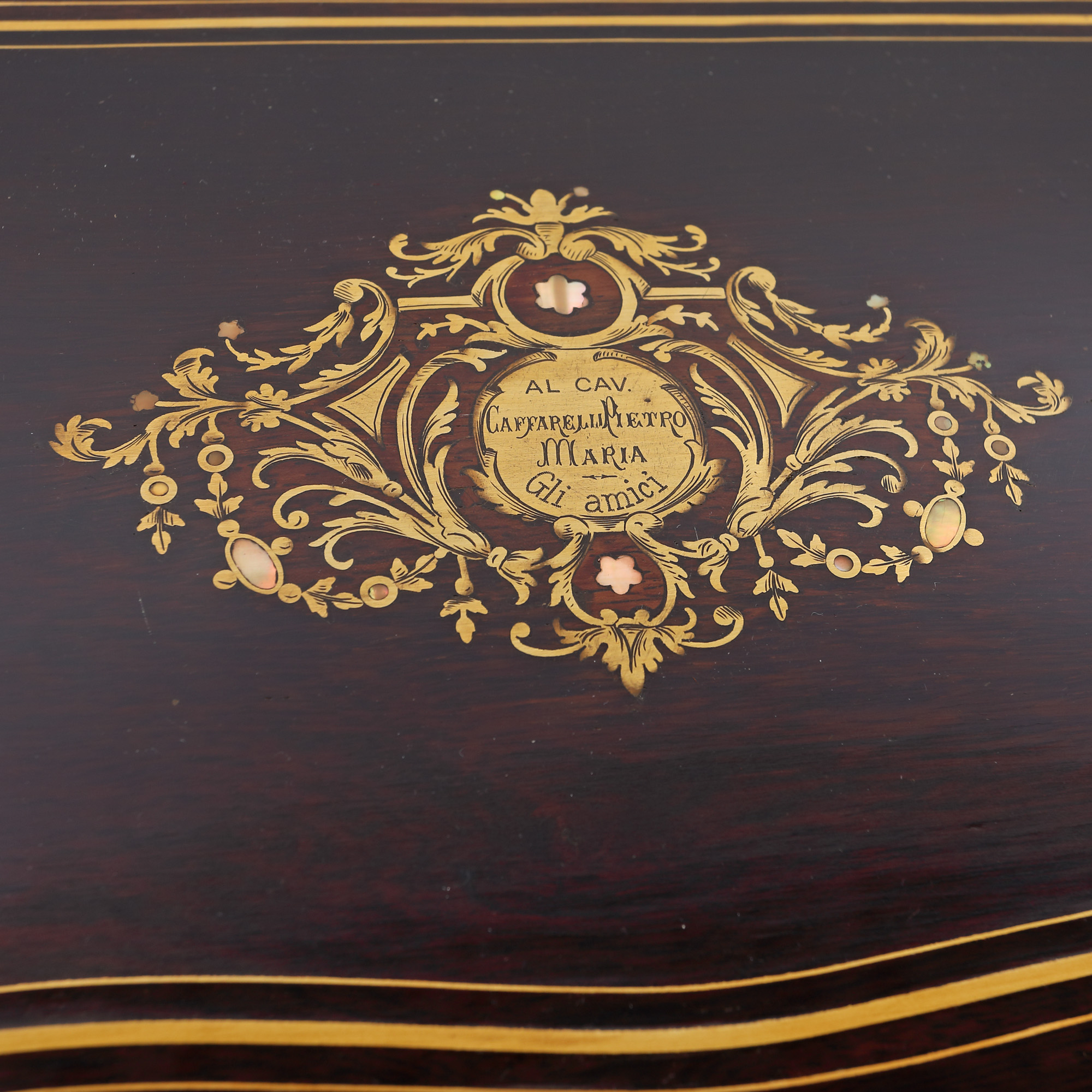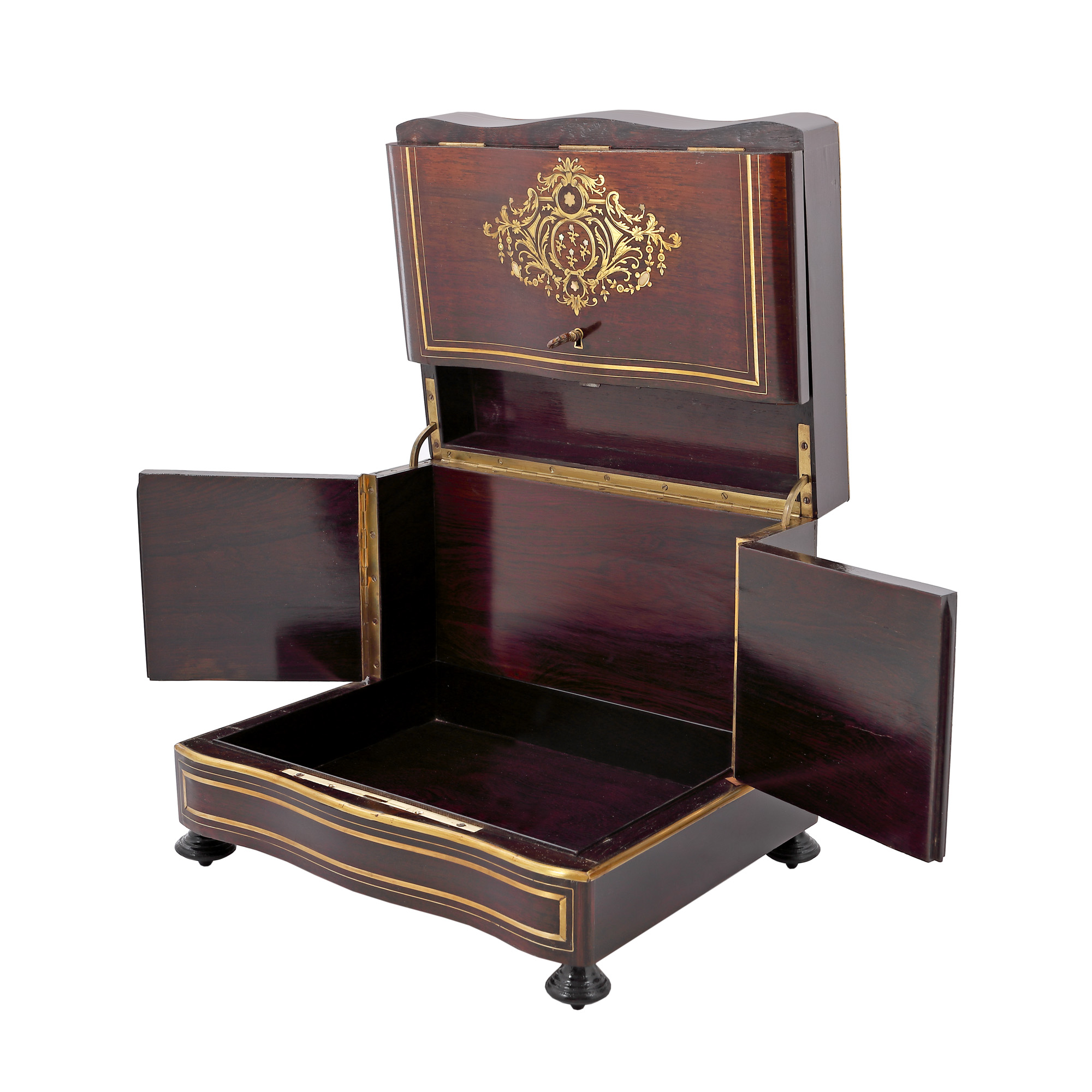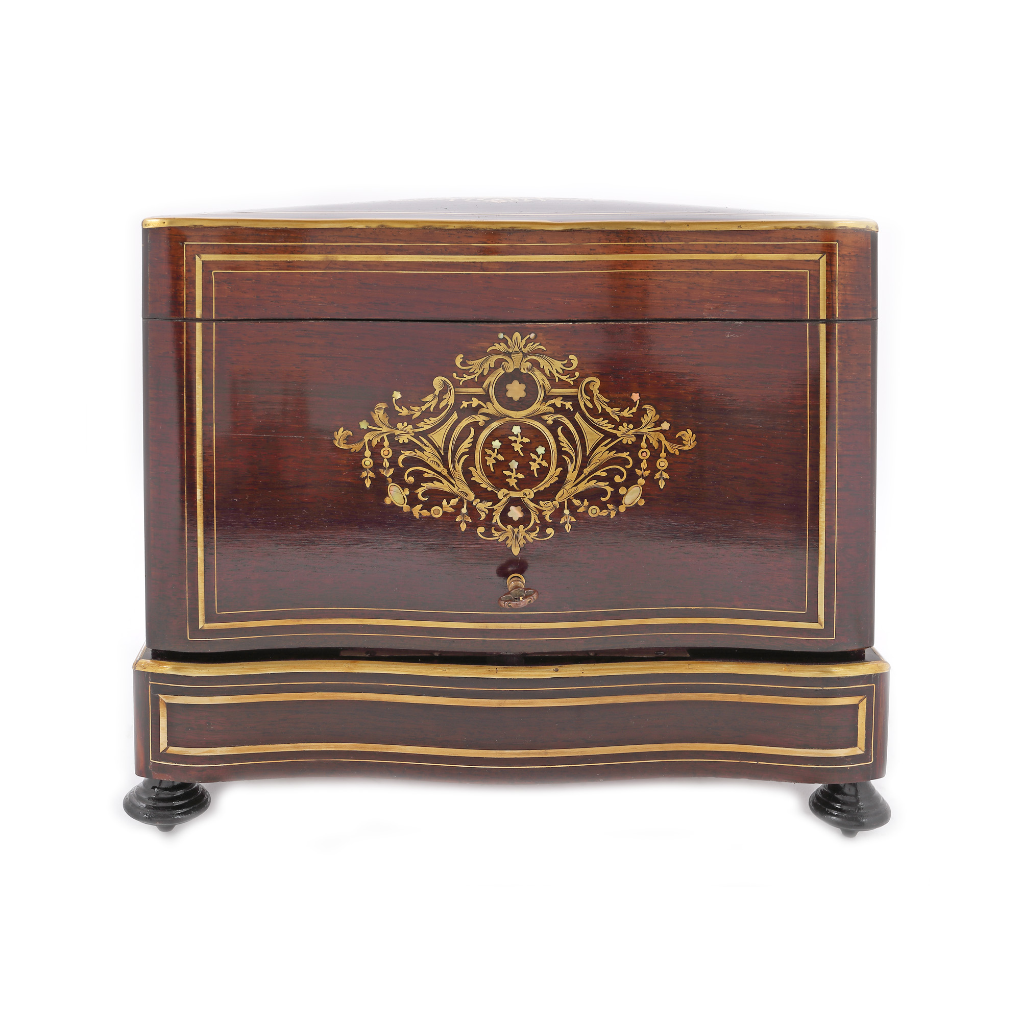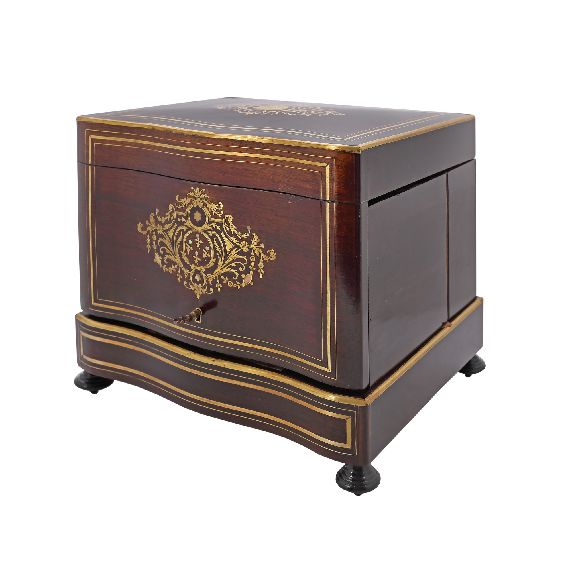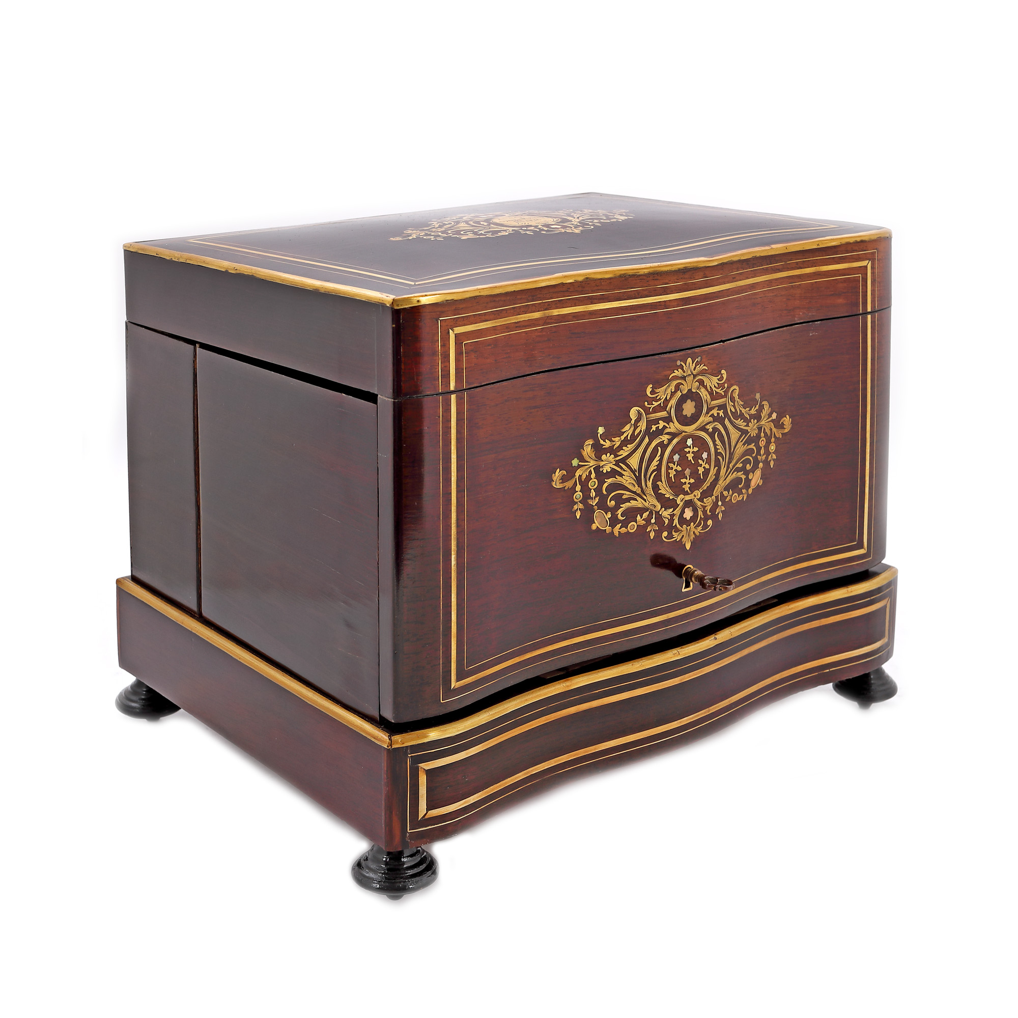 120. Casetă pentru bar mobil în stil Napoleon III, decorat cu intarsii din alamă și sidef, sec. XIX