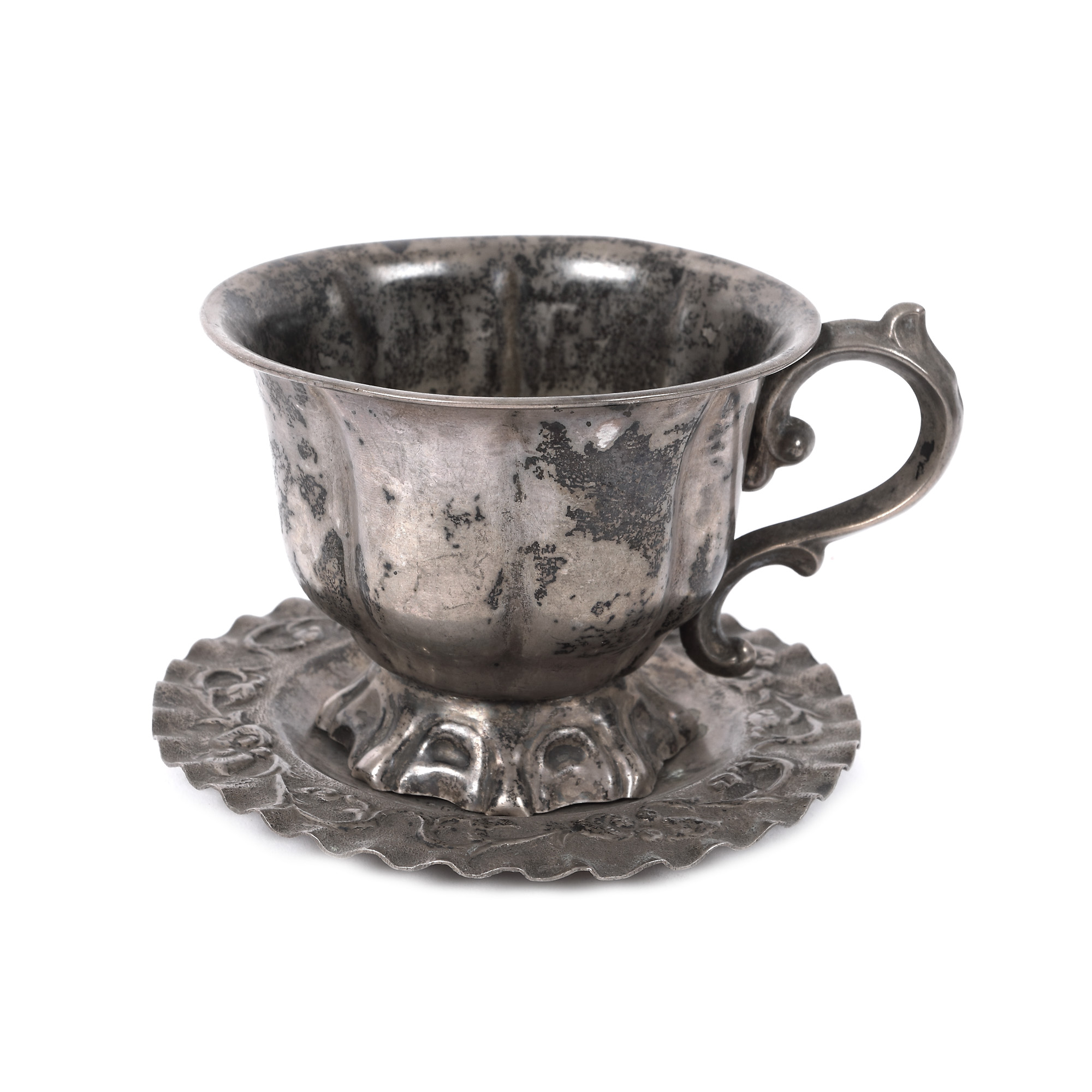 204. Ceașcă cu farfurie din argint, în stil Biedermeier, atelier Tritsch & Co, 1855