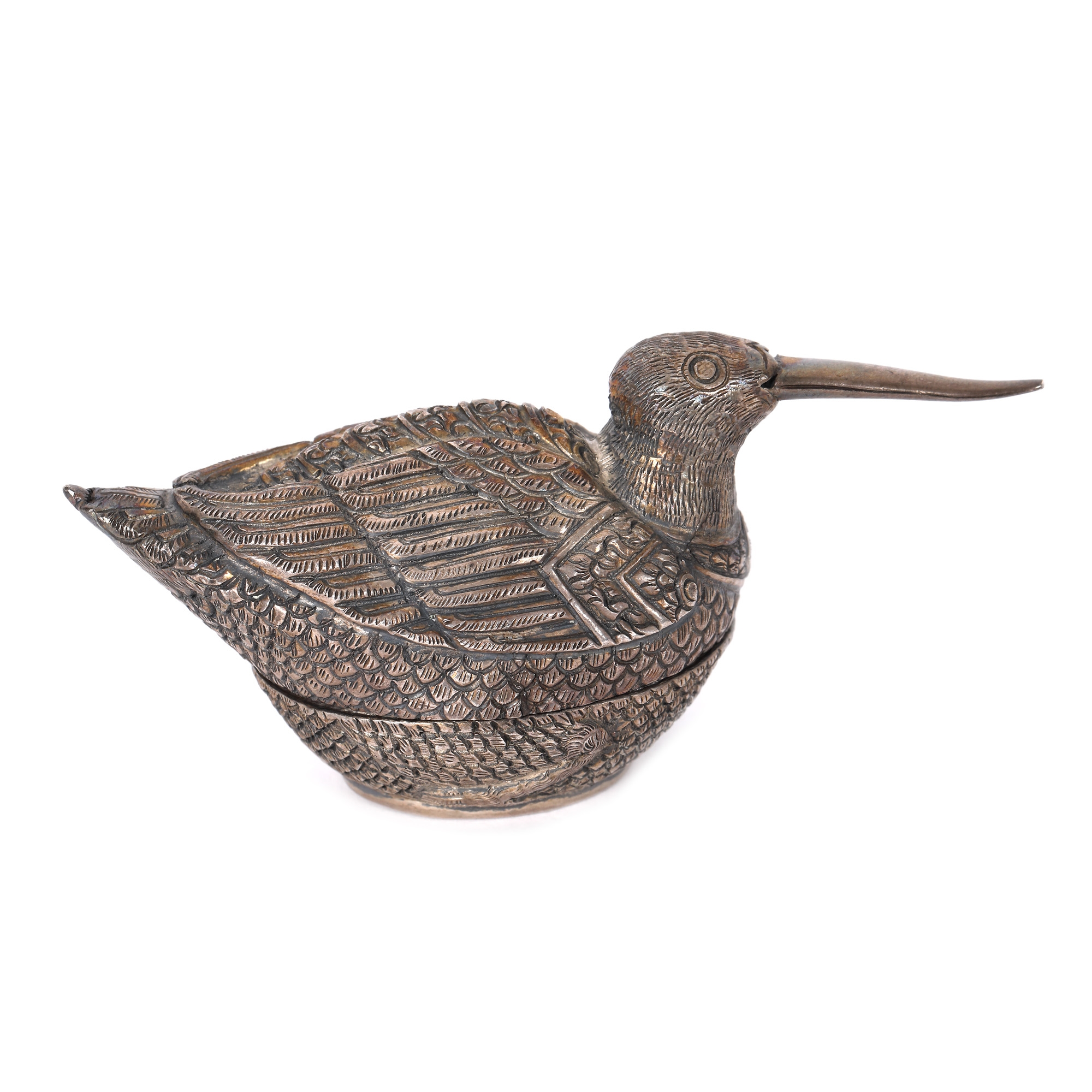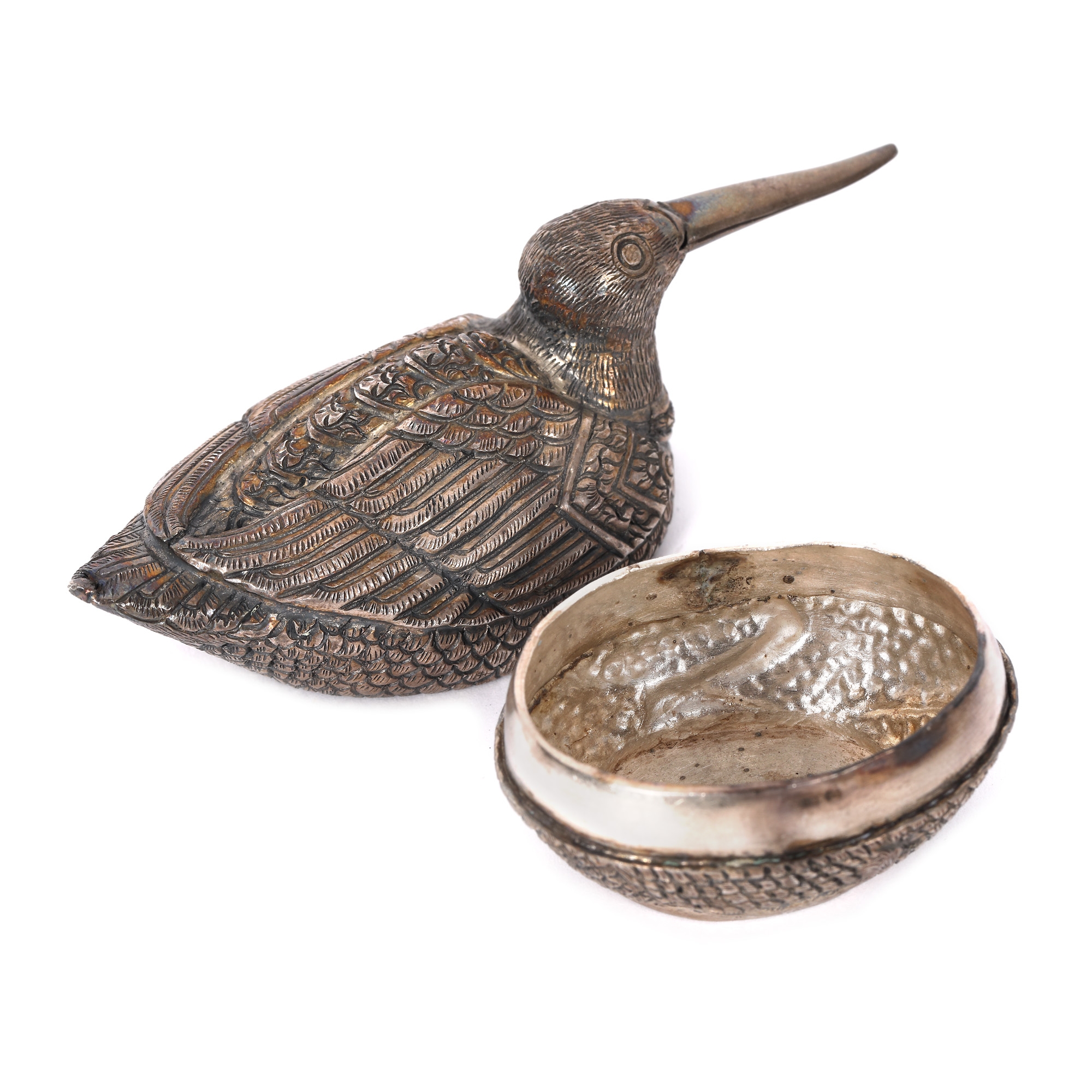198. Cutie miniaturală din argint, în forma unei păsări colibri [A doua jumătate a secolului XX]