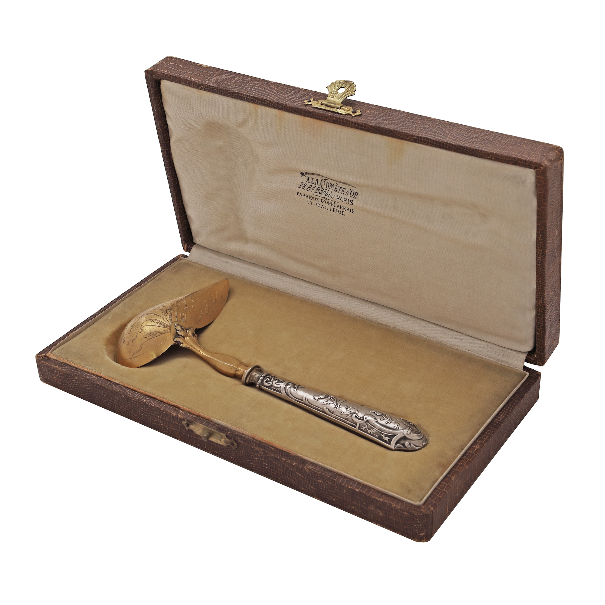 76. Elegant accesoriu pentru servirea sosurilor, în stil Art Nouveau, cca. 1910, însoțit de cutie originală