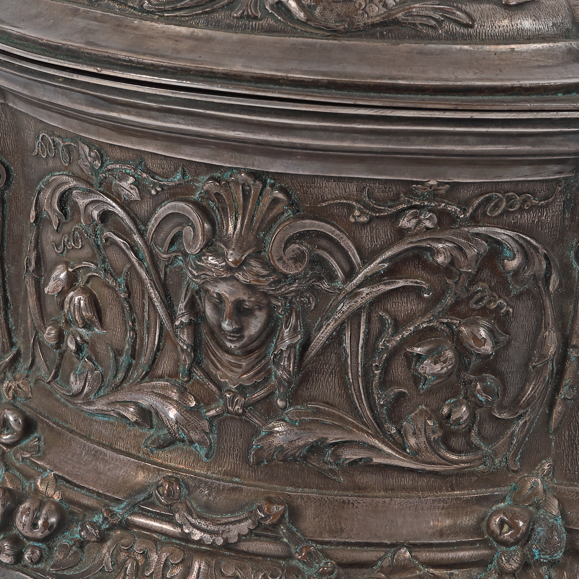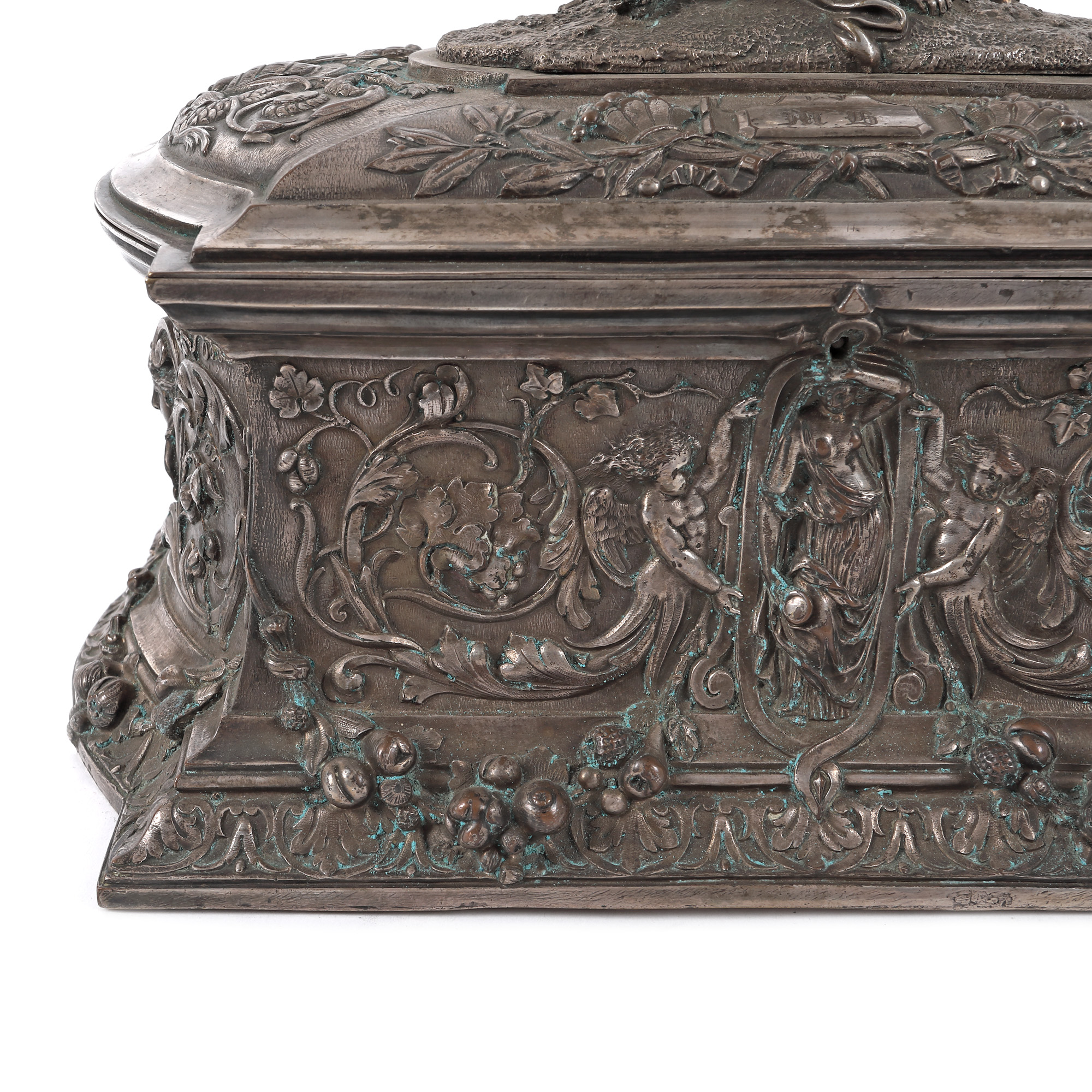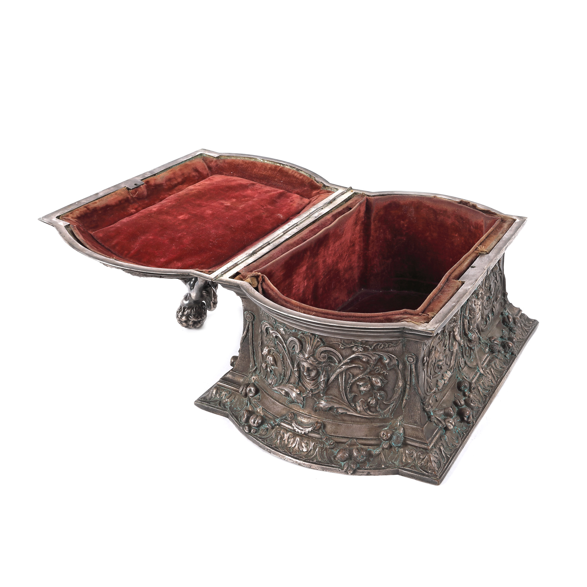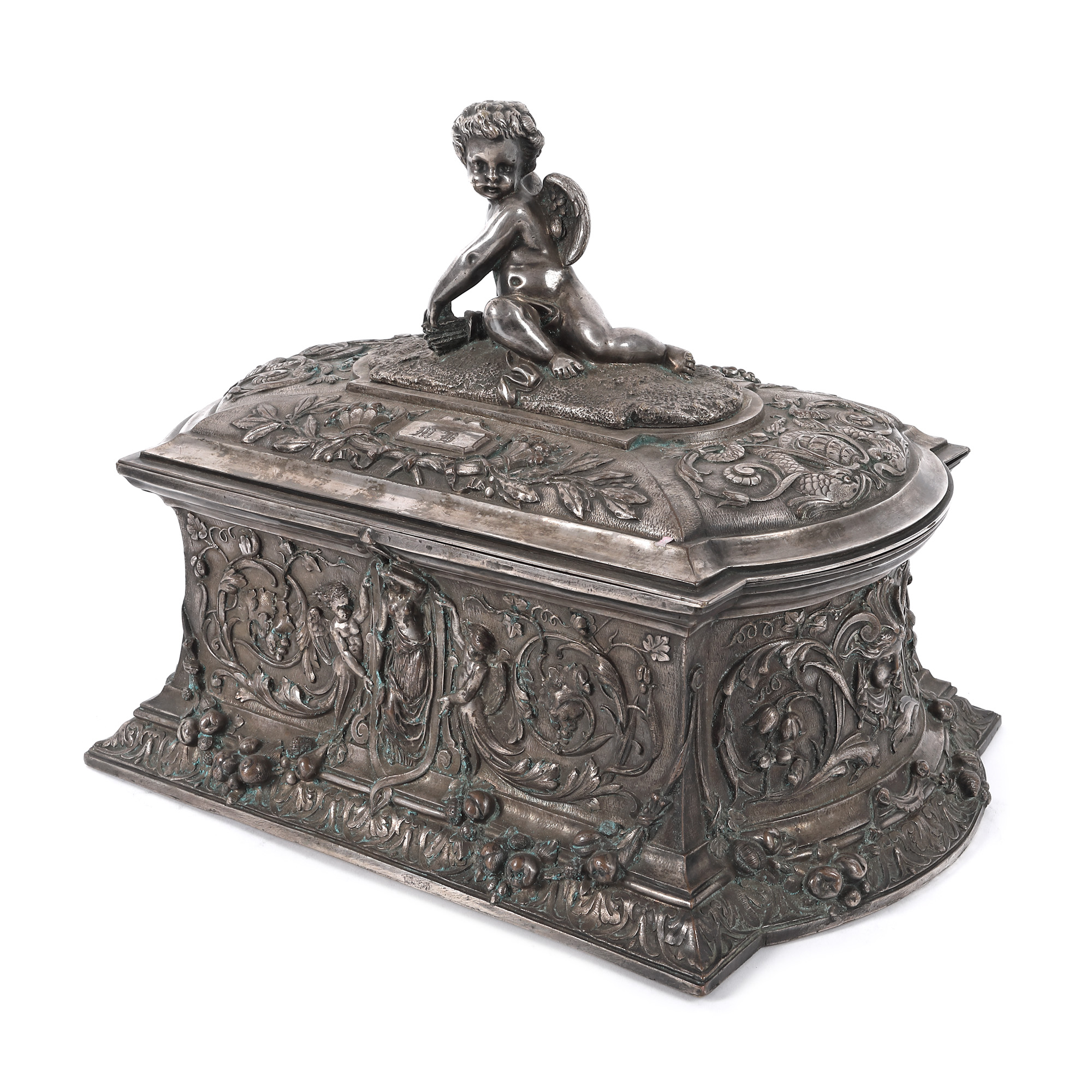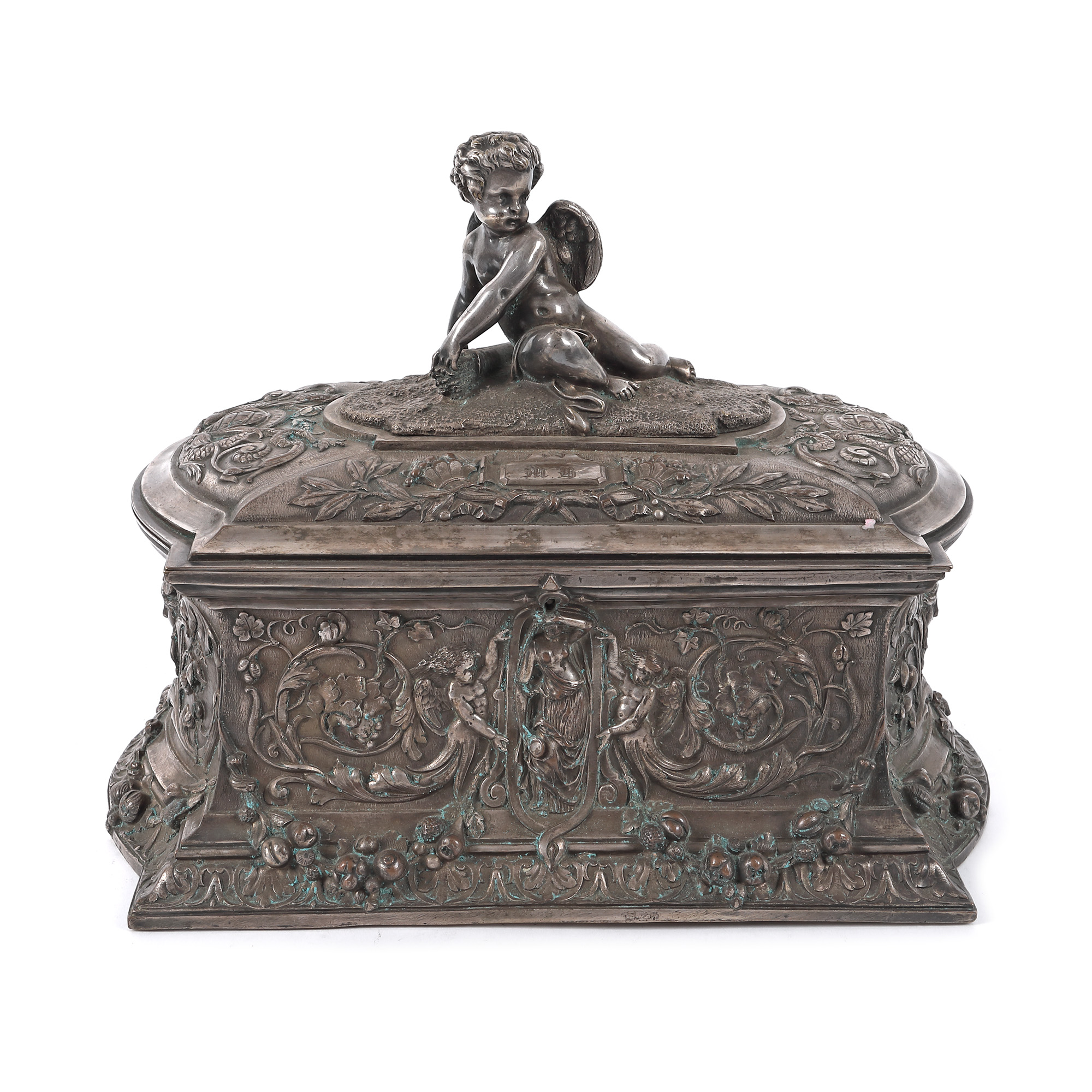 173. Elegantă casetă pentru bijuterii în stil Neo-Clasic, cu bogat decor în repoussé, sec. XIX