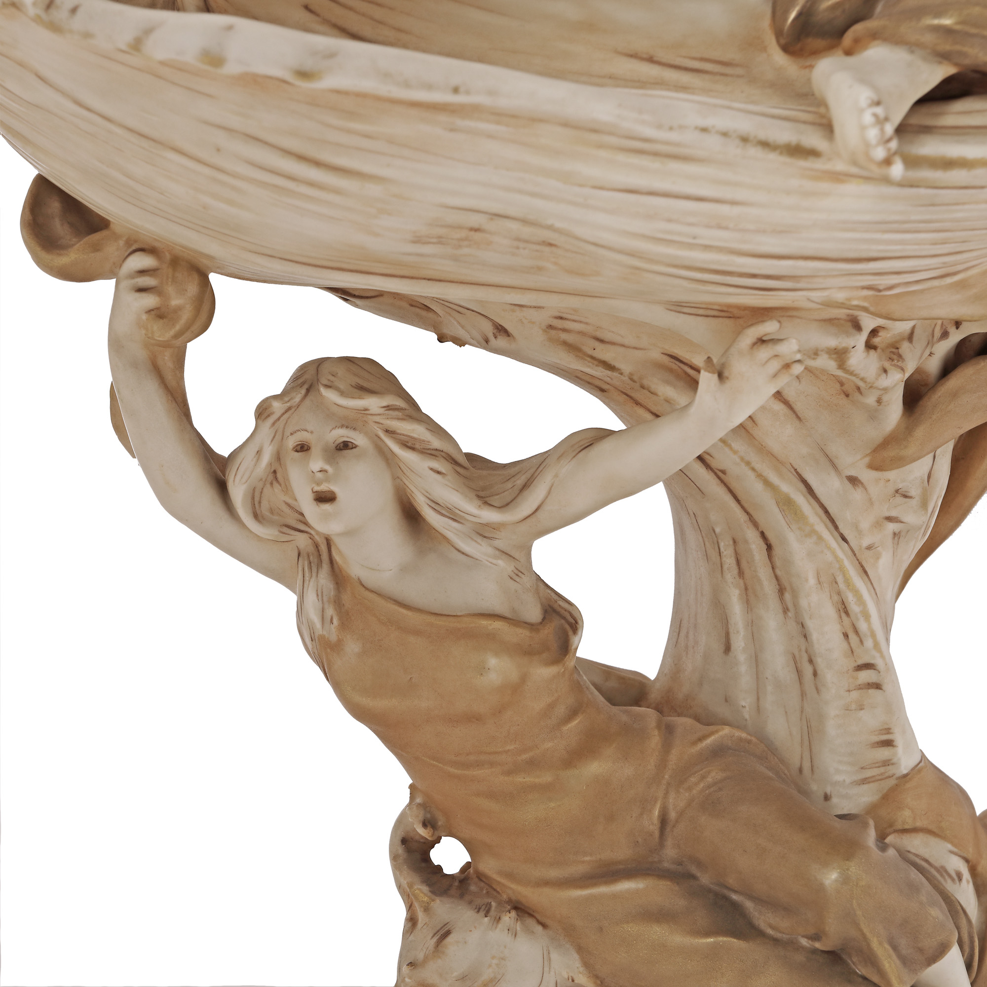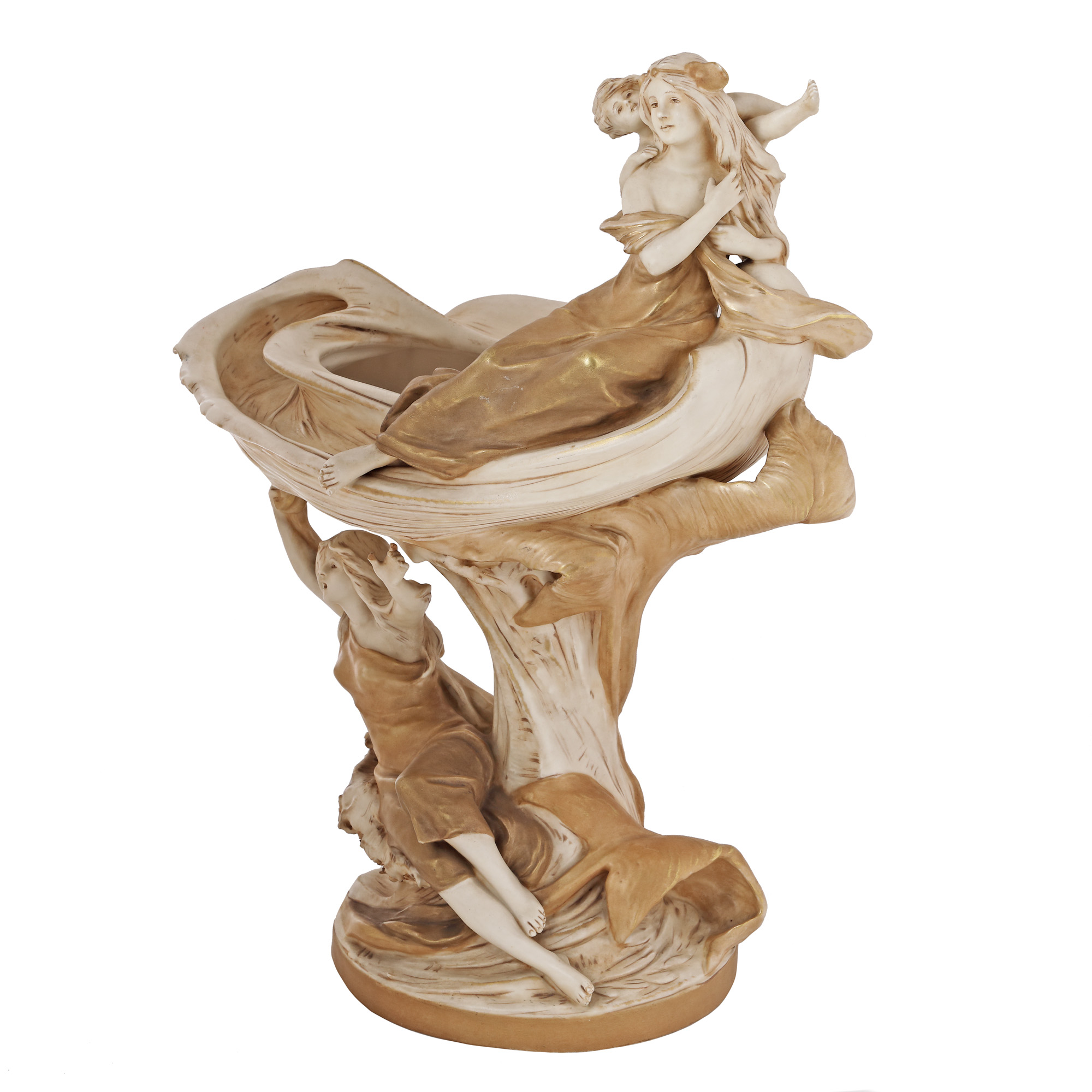 56. Fructieră Art Nouveau din porțelan Royal Dux, decorată cu două nimfe, cca. 1900-1910
