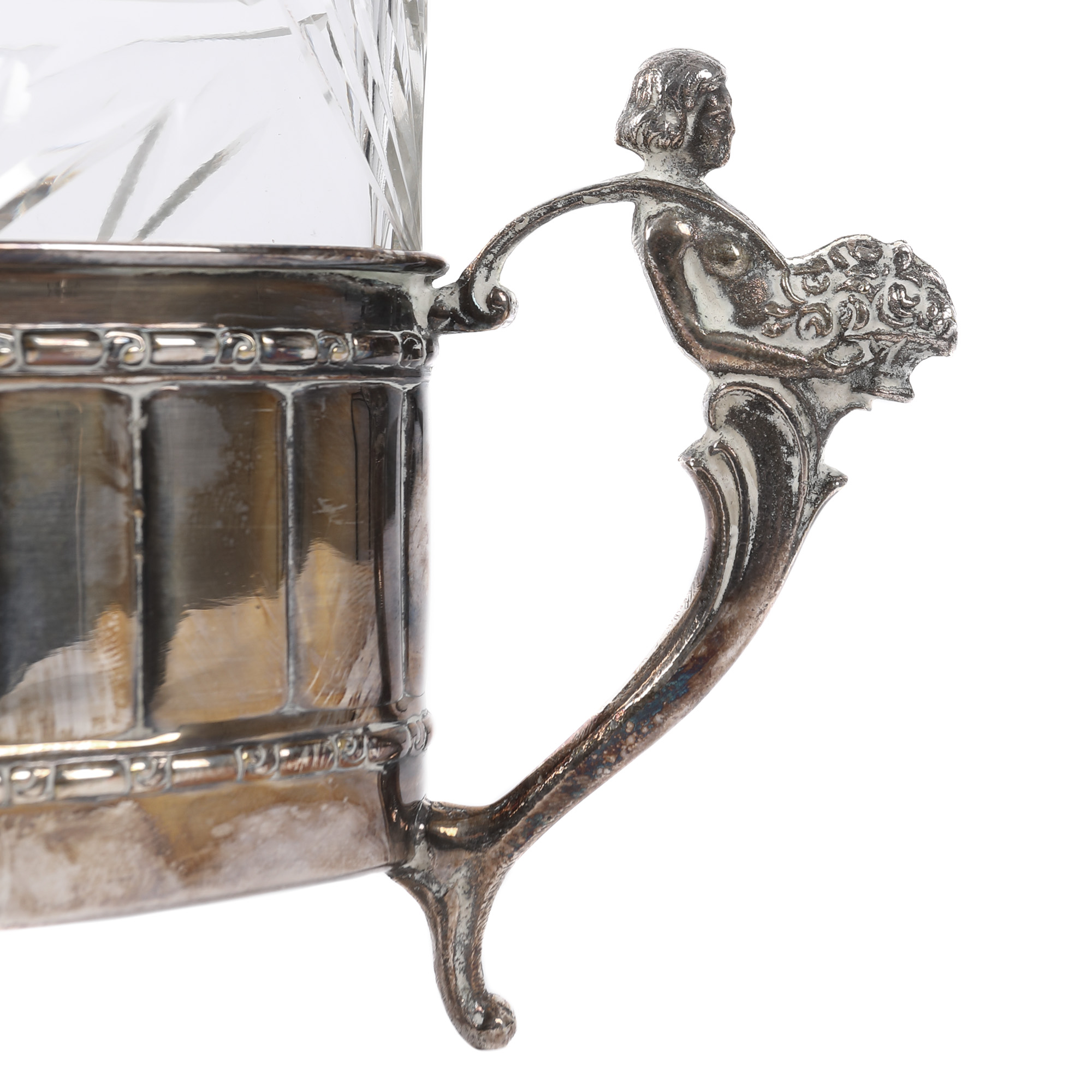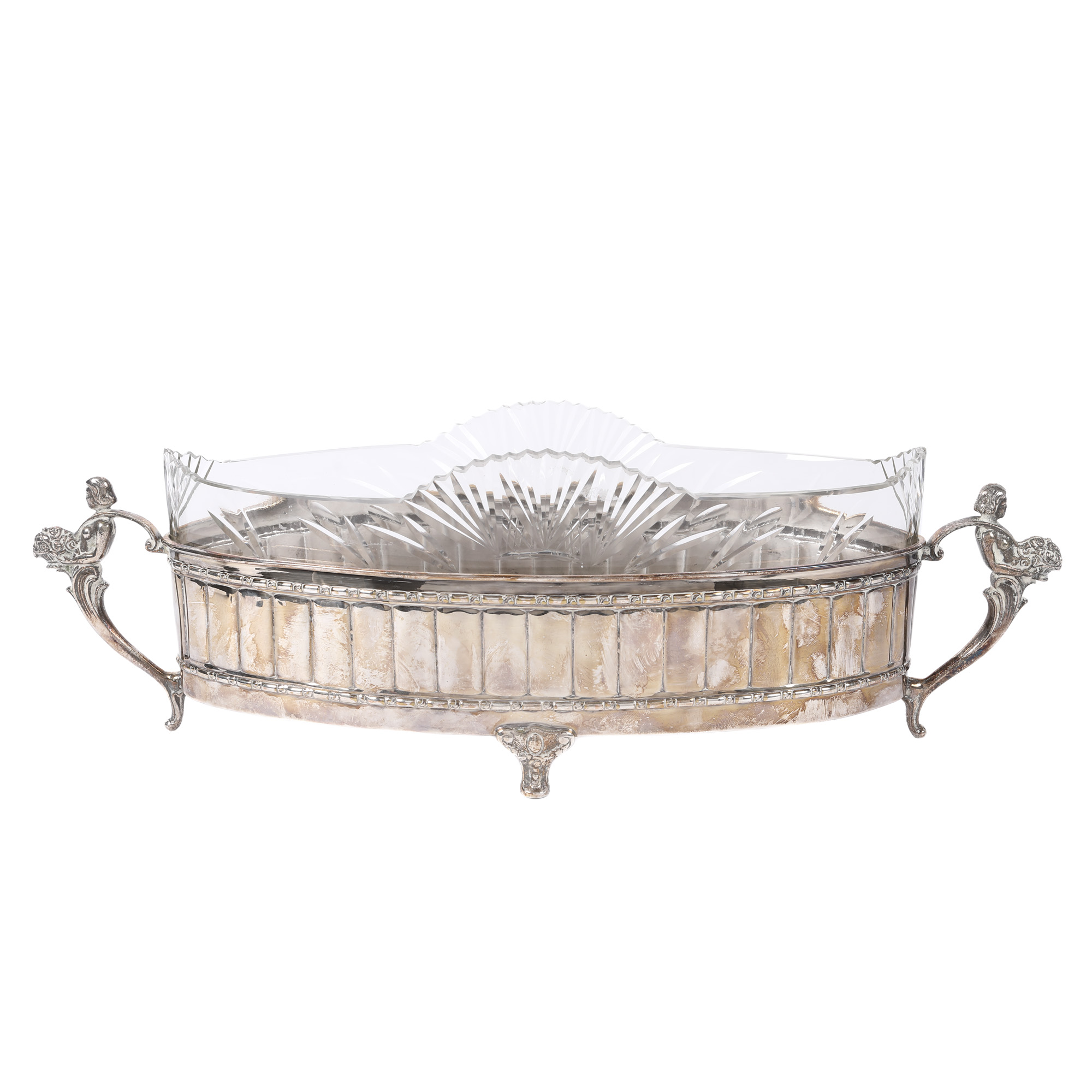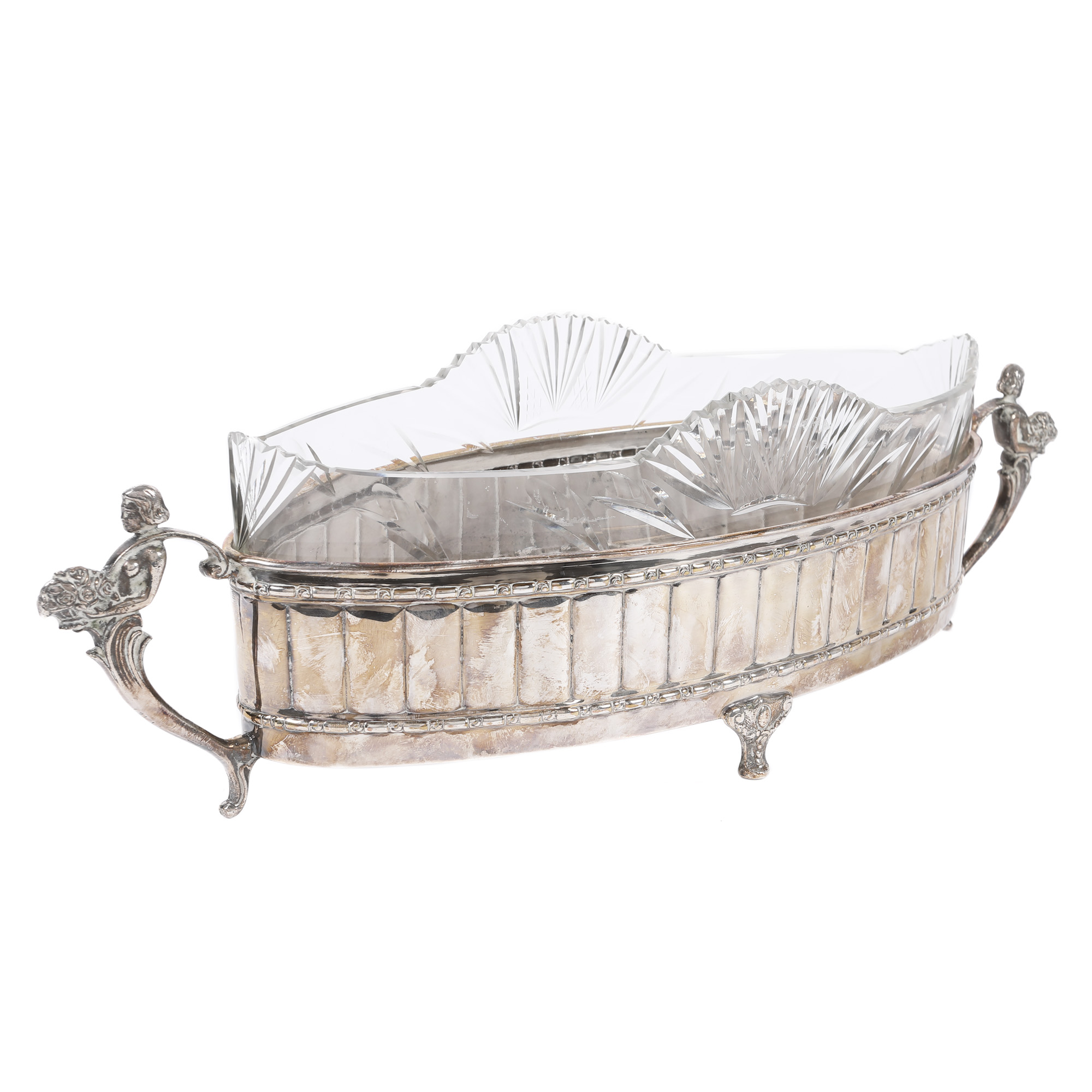 94. Fructieră în manieră Neoclasică, cu bol din cristal gravat, începutul sec. XX