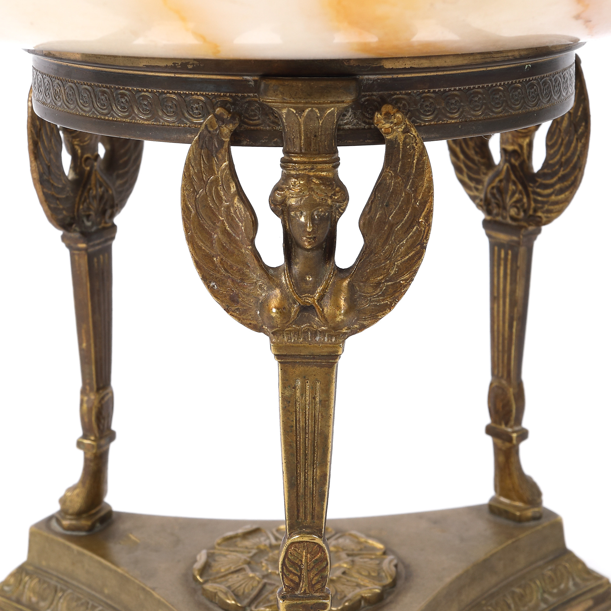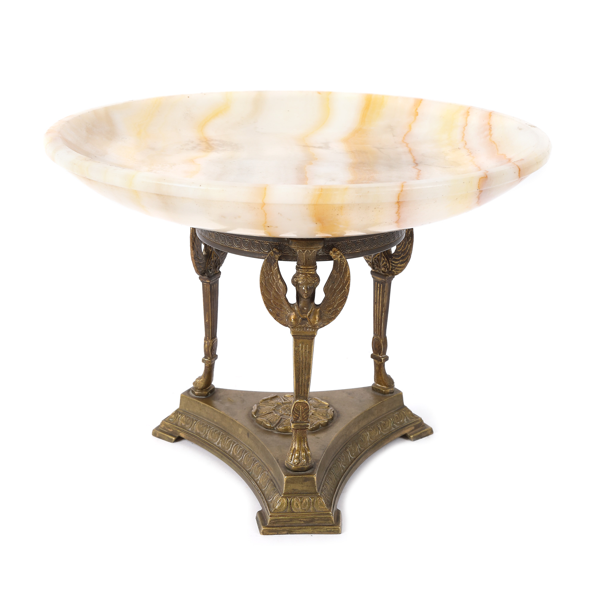 61. Fructieră în stil Empire din bronz și marmură de Carrara, decorată cu grifoni, sec. XIX