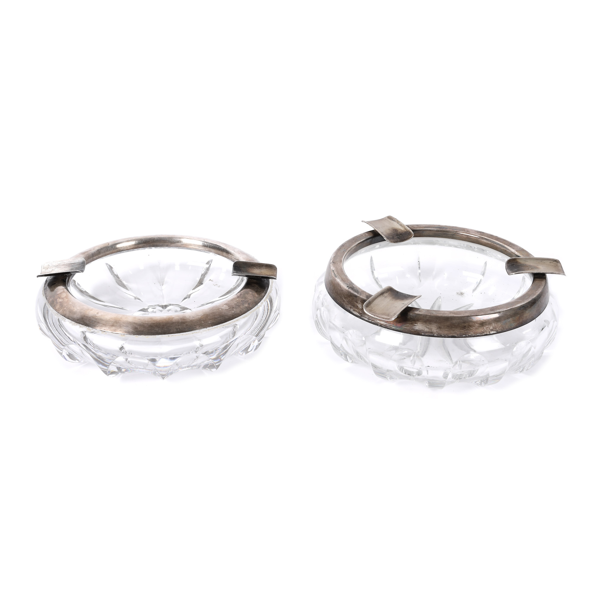67. Pereche de scrumiere Art Deco, din cristal cu montură din argint, cca. 1930