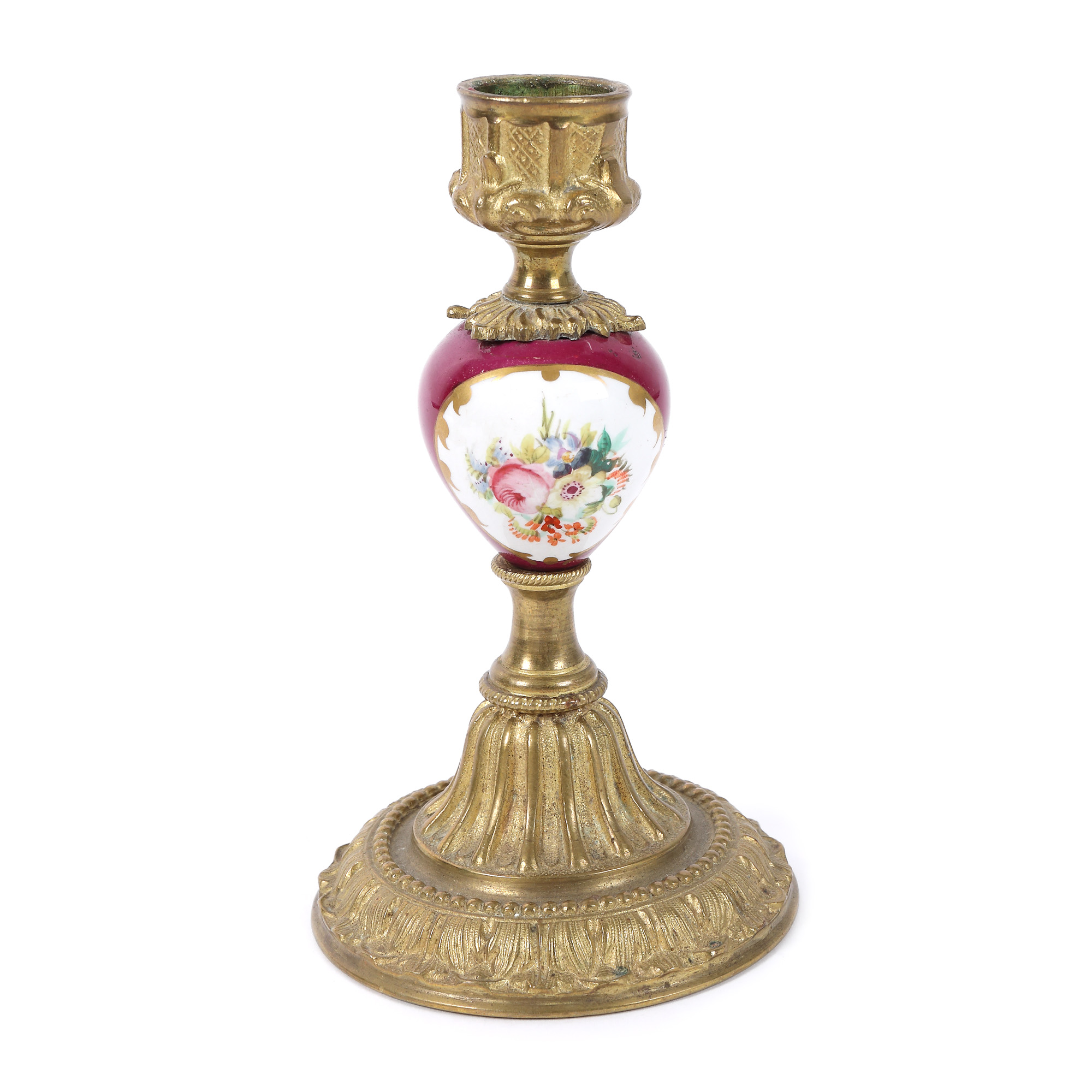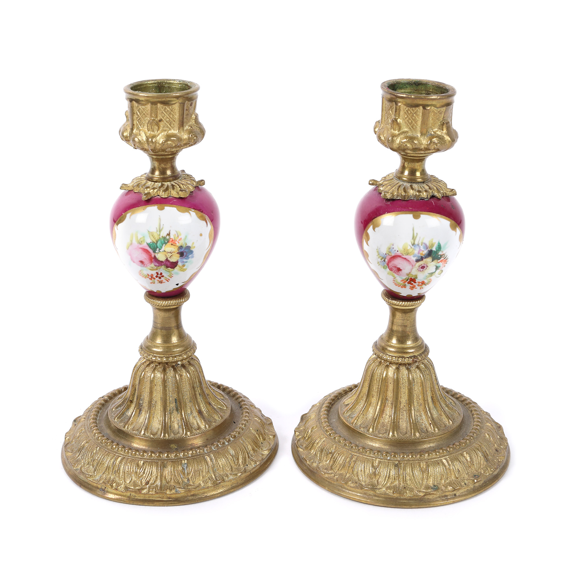 161. Pereche de sfeșnice cu o lumină, din porțelan și bronz, decorată cu flori