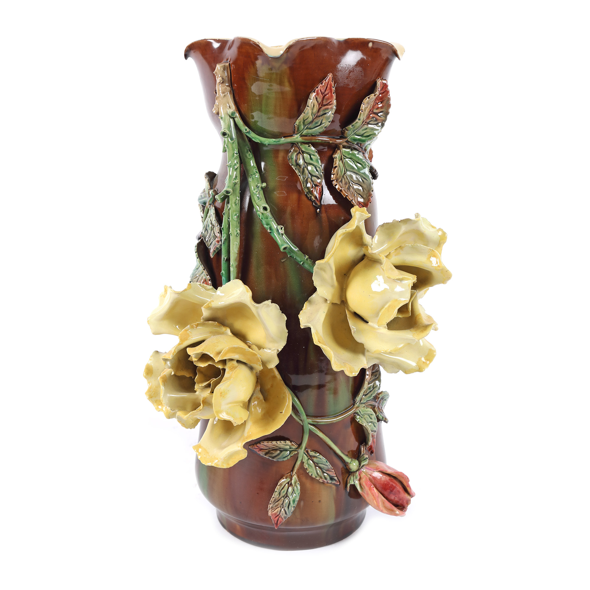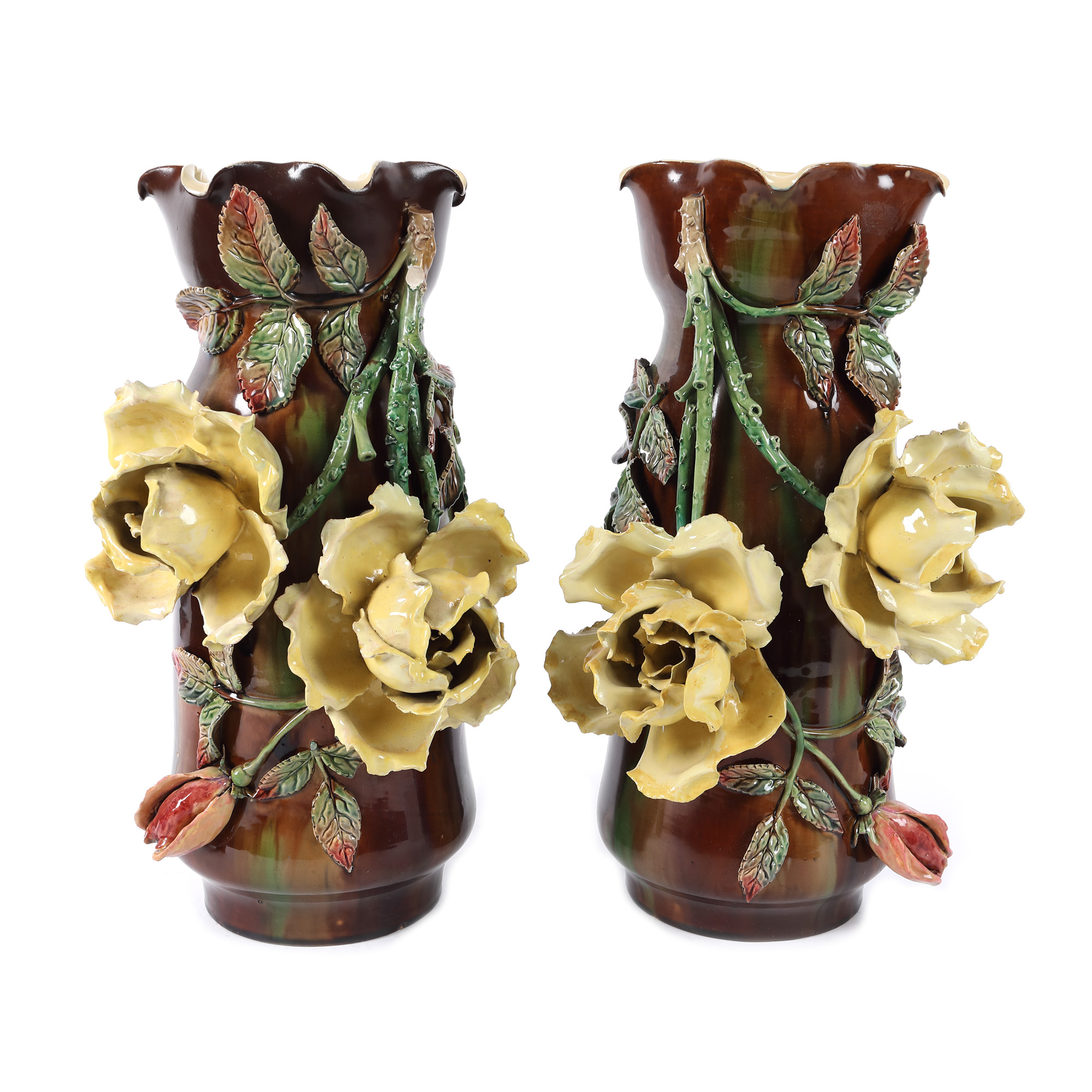 192. Pereche de vase din porțelan Wilhelm Schiller & Sons, decorat cu trandafiri galbeni, cca. 1900-1910