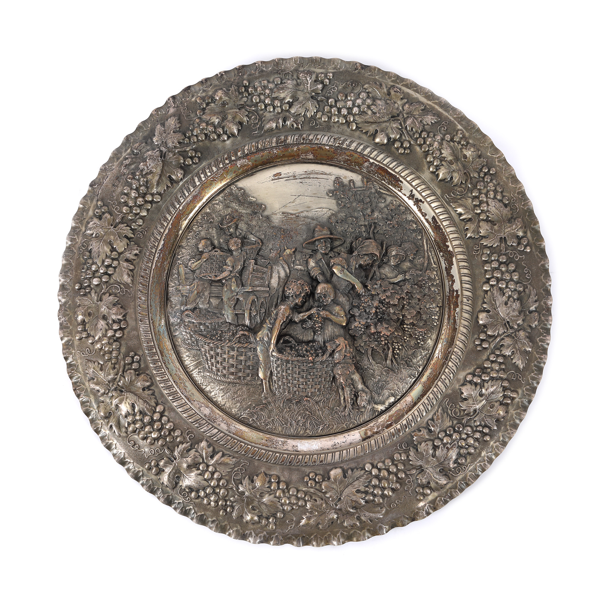 177. Platou decorat cu scenă pastorală și bordură cu viță-de-vie, atelier Guido Galbiati, cca. 1940-1950