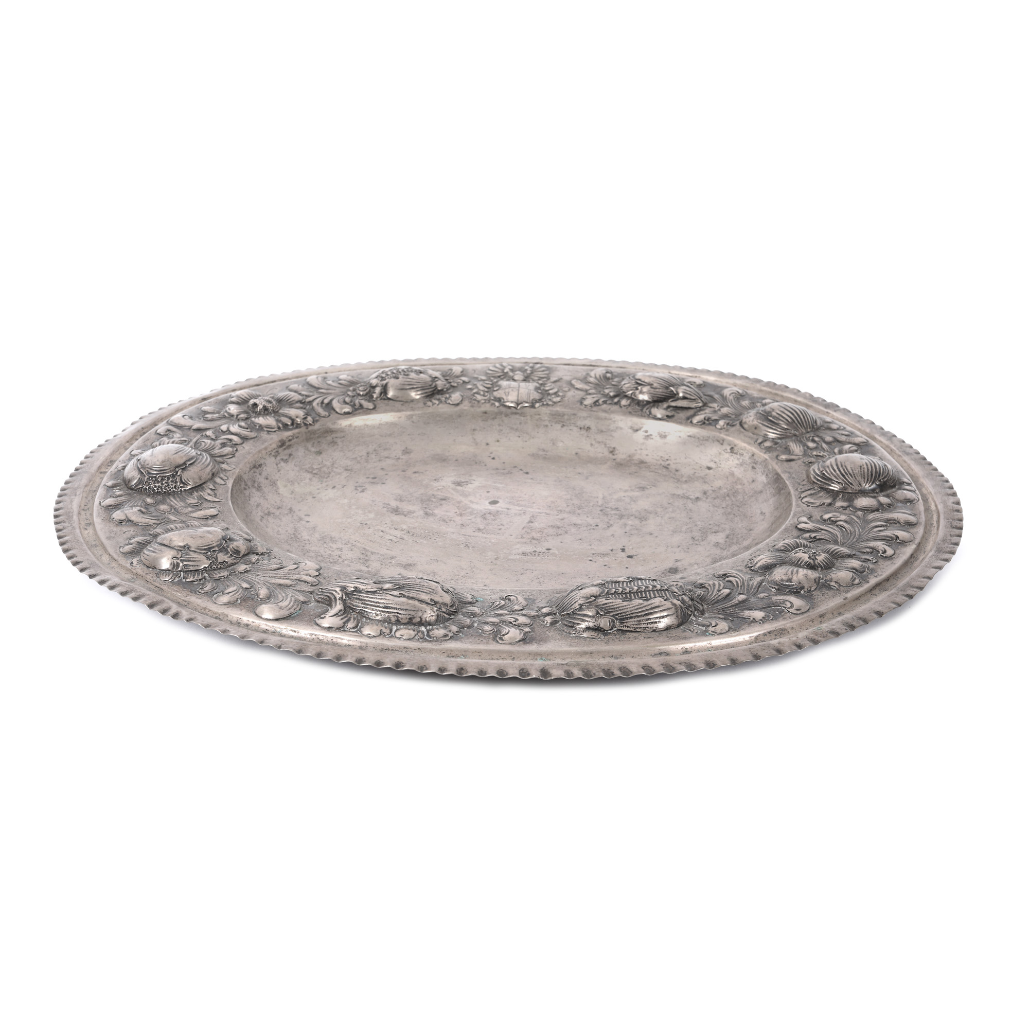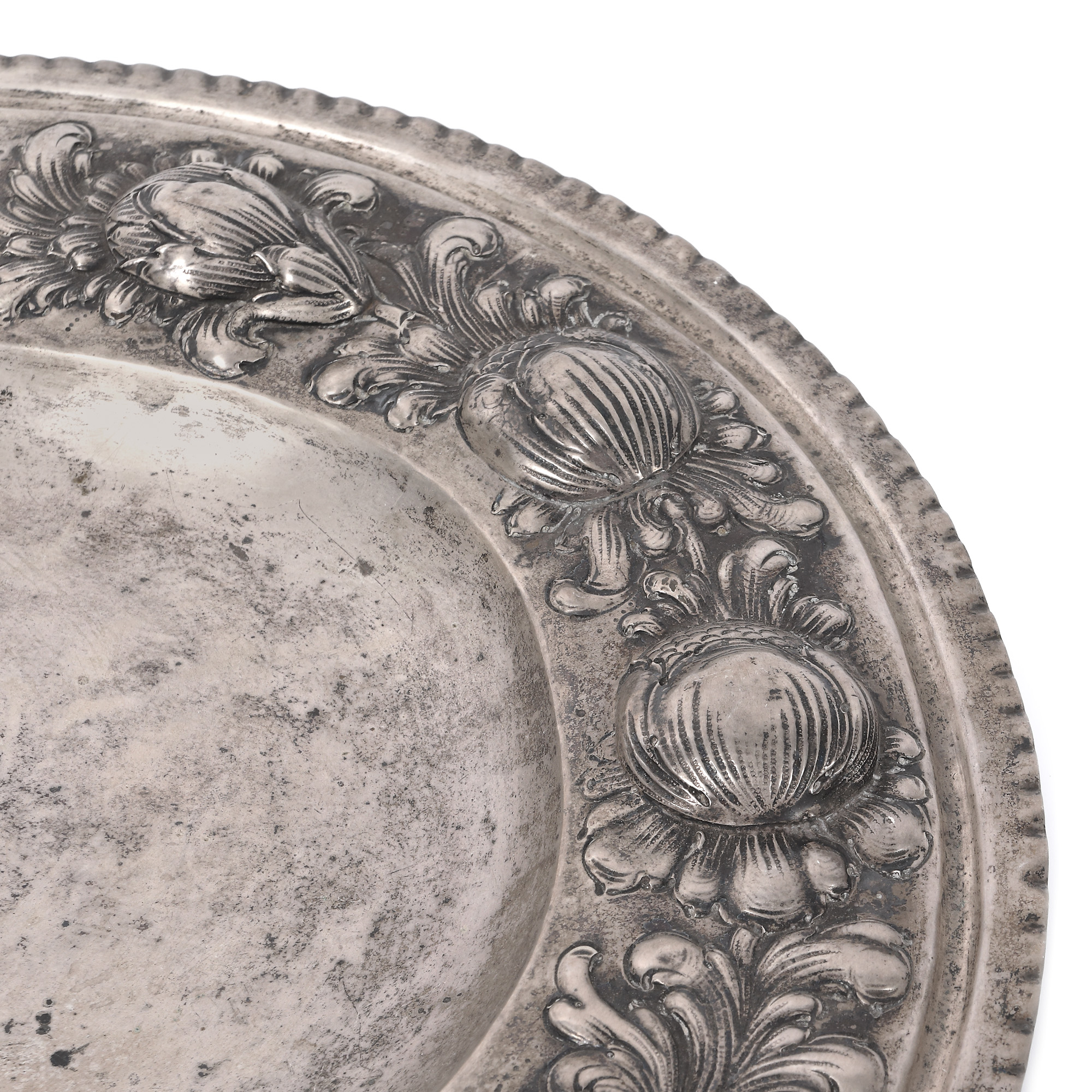 174. Platou din argint, decorat în repoussé cu bujori, sec. XIX