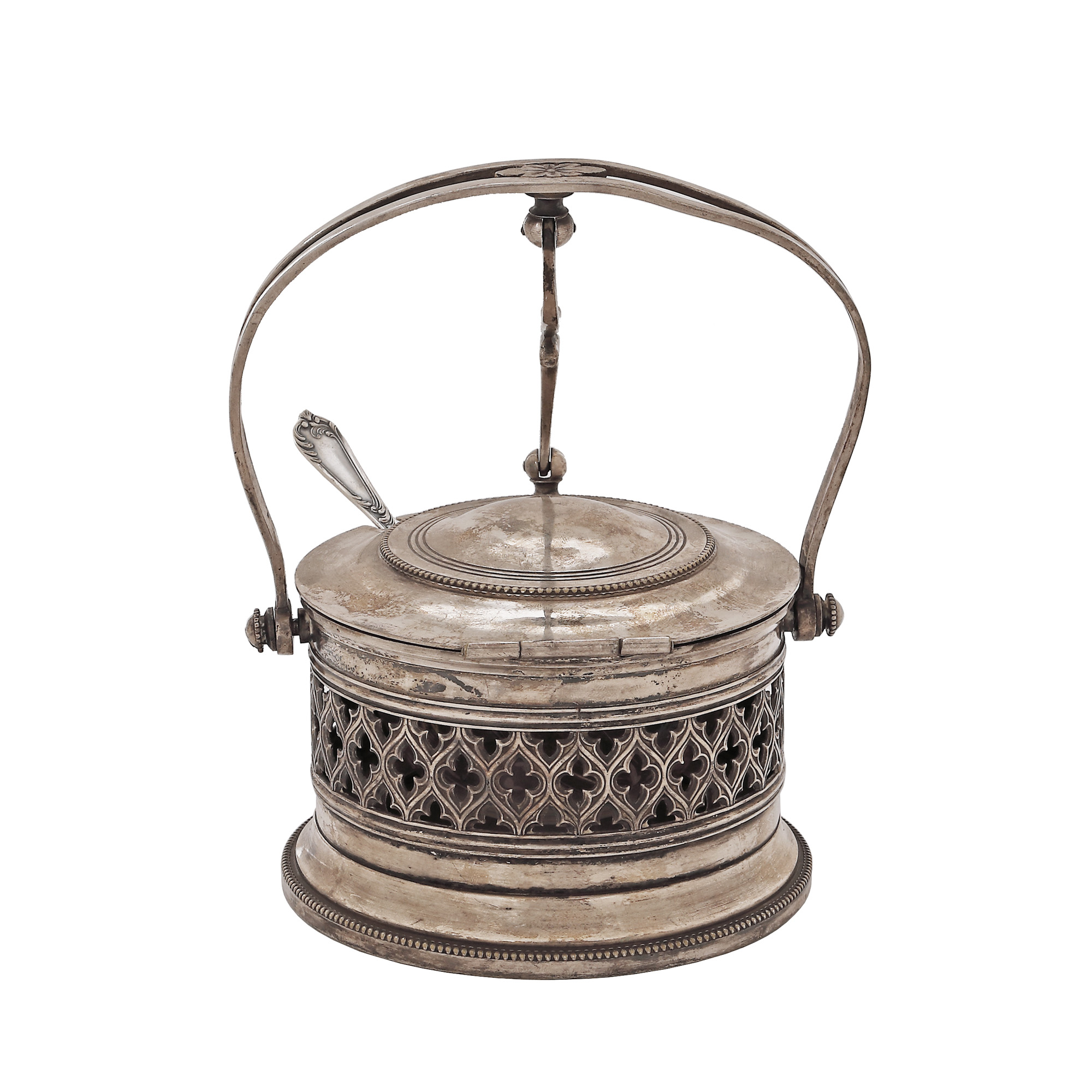 100. Recipient pentru caviar cu linguriță, cu decor Neo-Gotic, sfârșitul sec. XIX