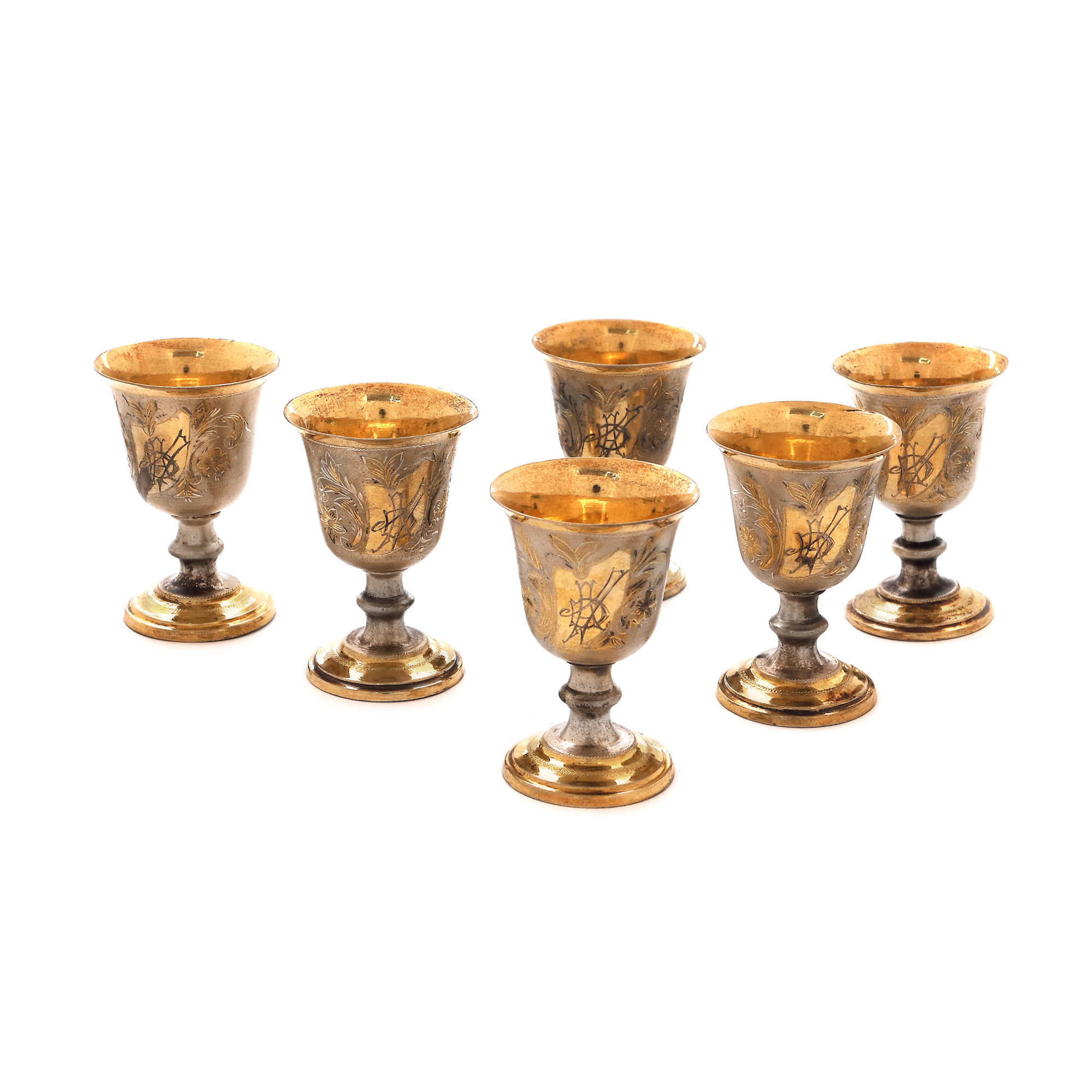 99. Serviciu de cupe pentru lichior, decorate cu motive vegetale gravate și monogramă, însoțit de cutia originală [Sec. XX]