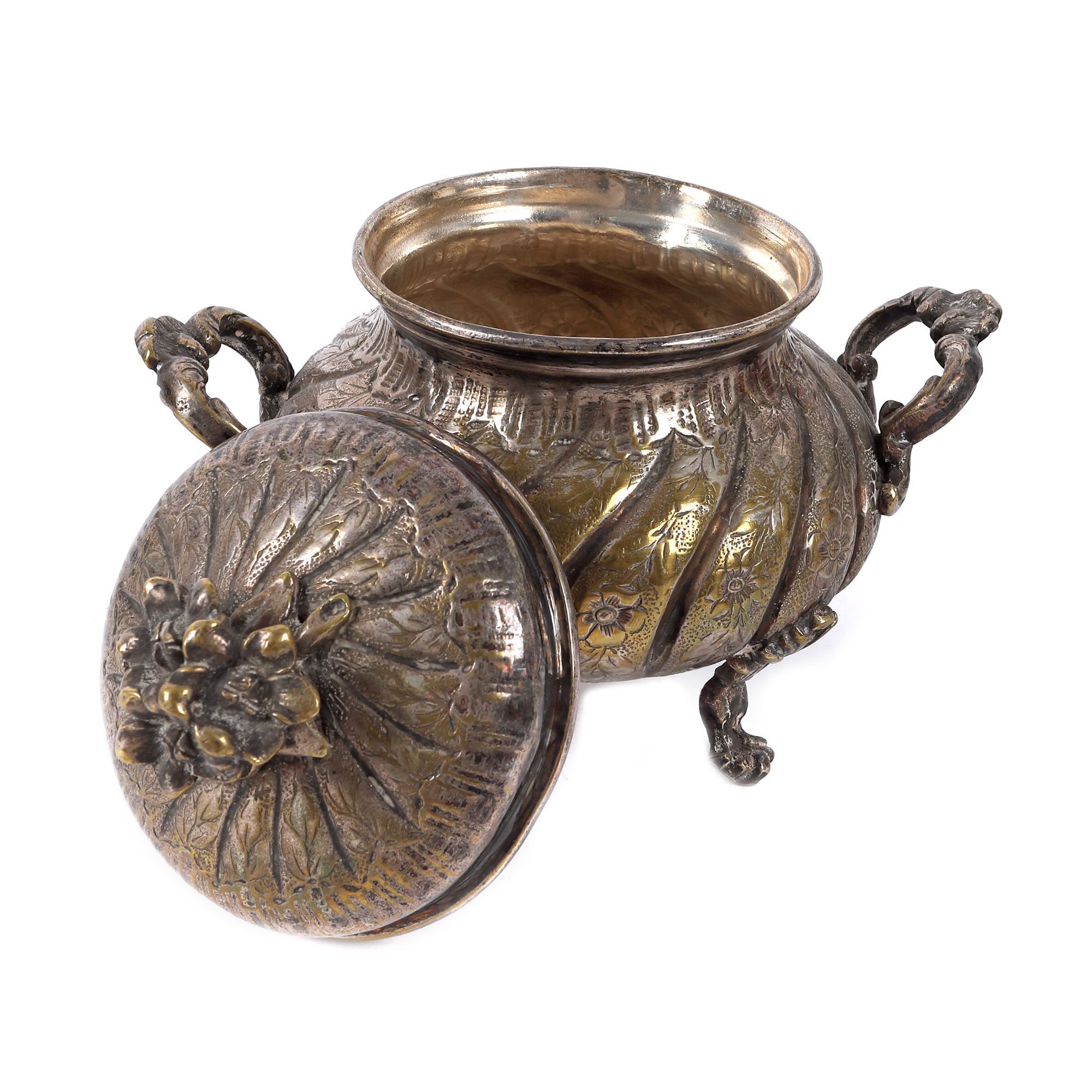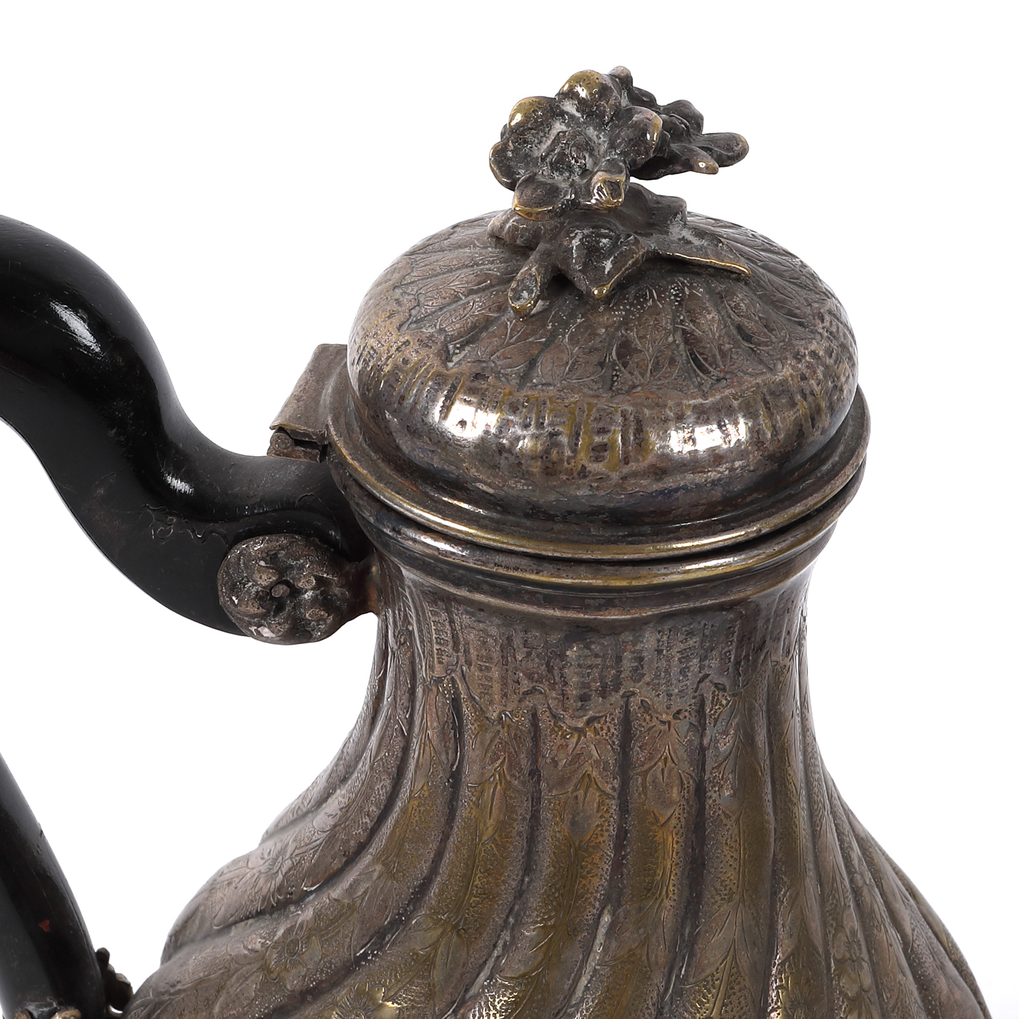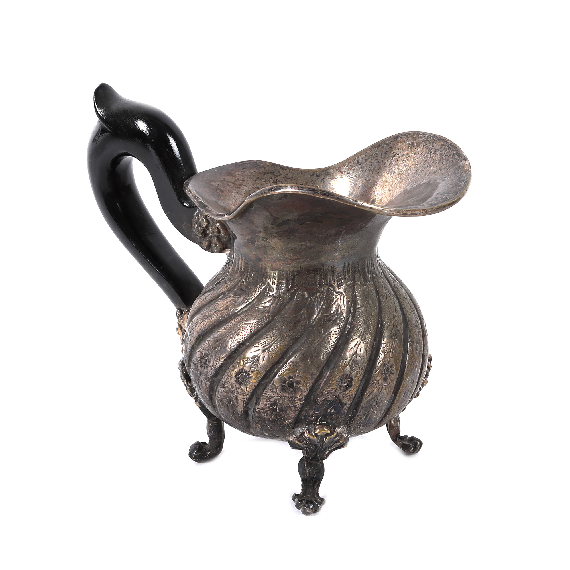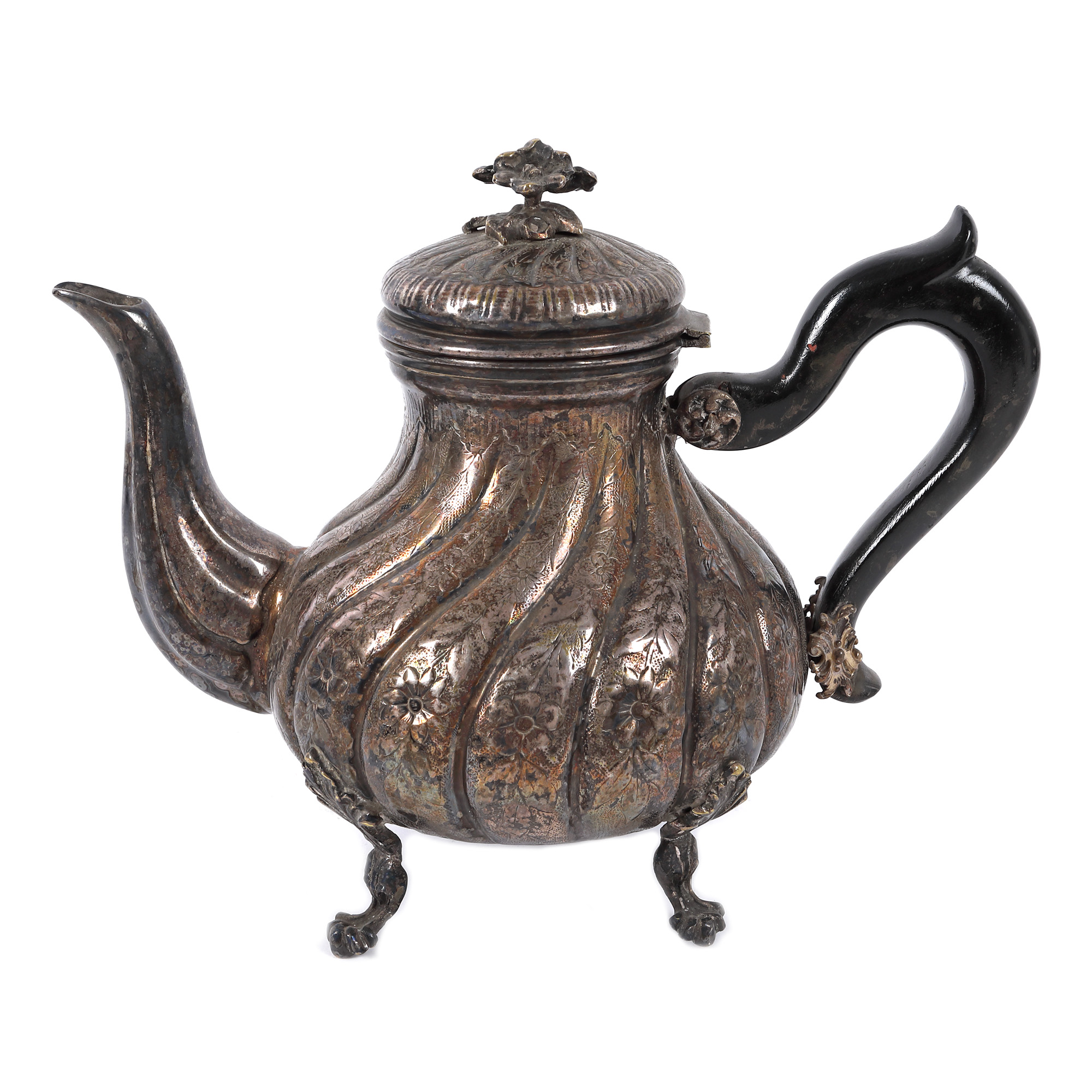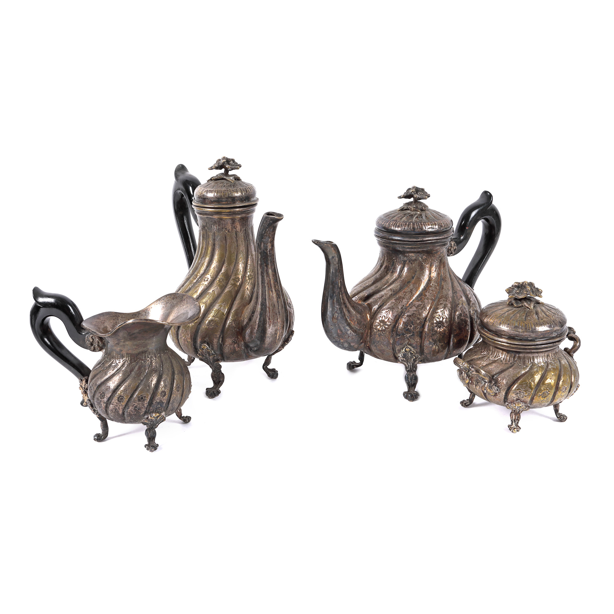 134. Serviciu pentru ceai și cafea, format din cafetieră, ceainic, letieră și zaharniță, cu model torsat, decorat cu flori, începutul sec. XX
