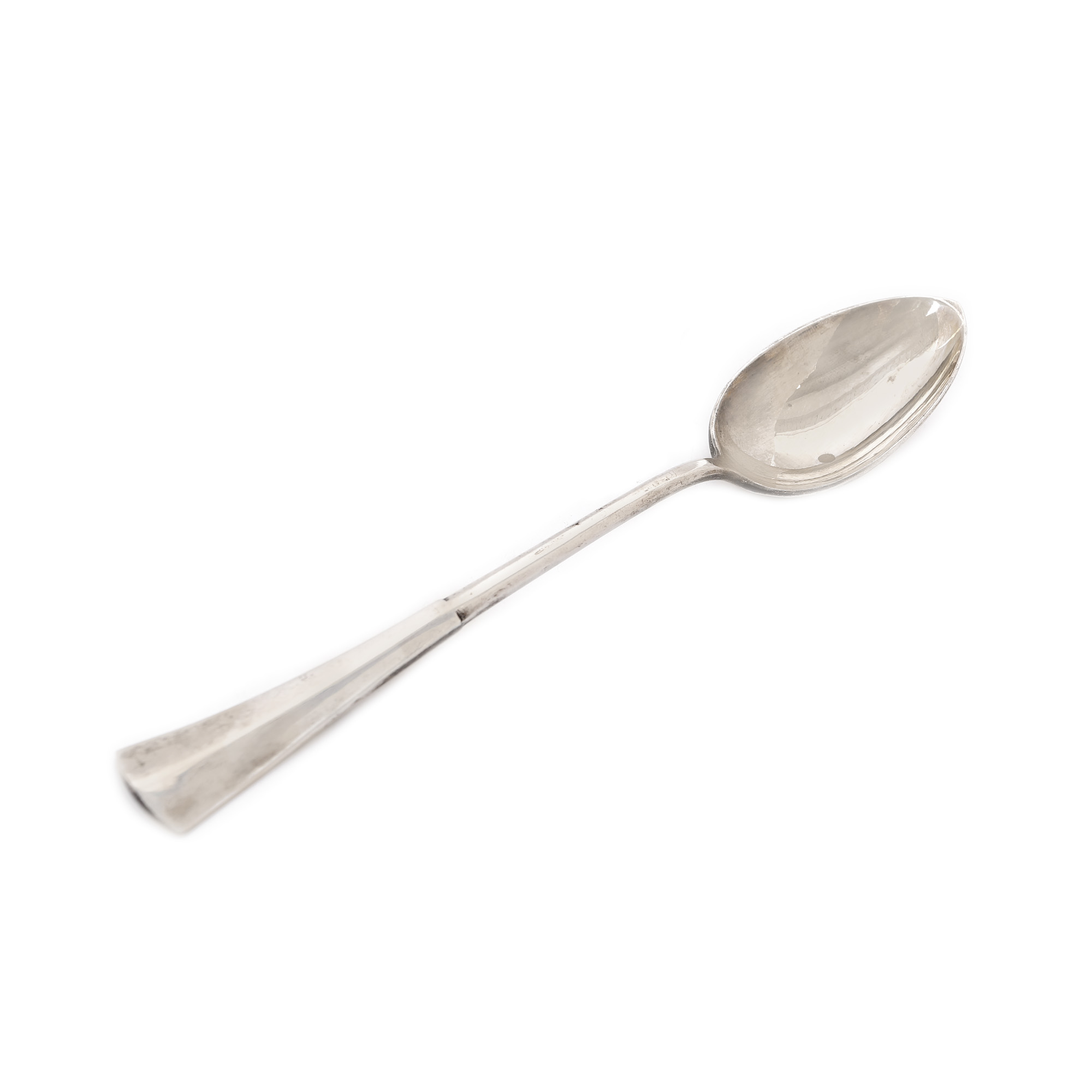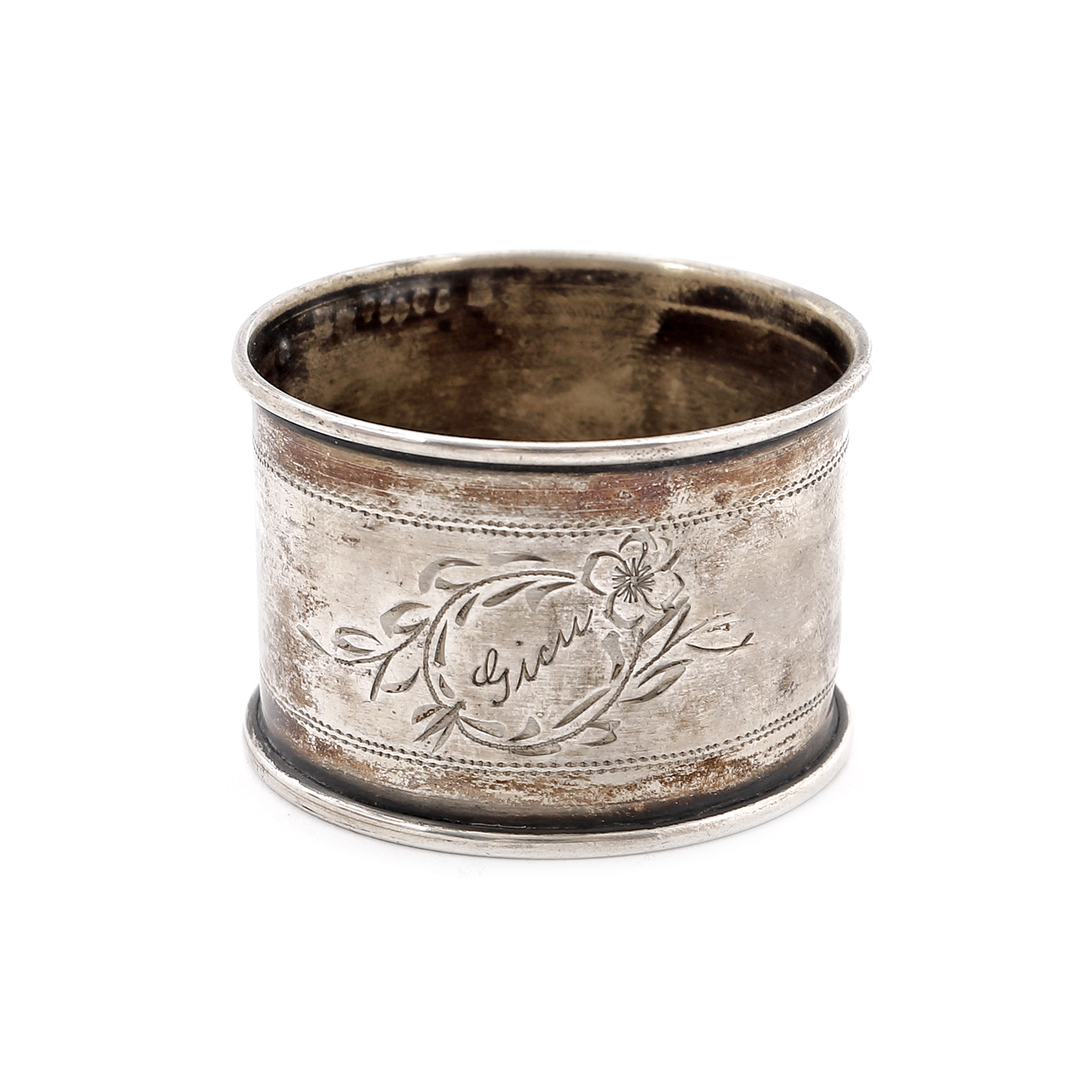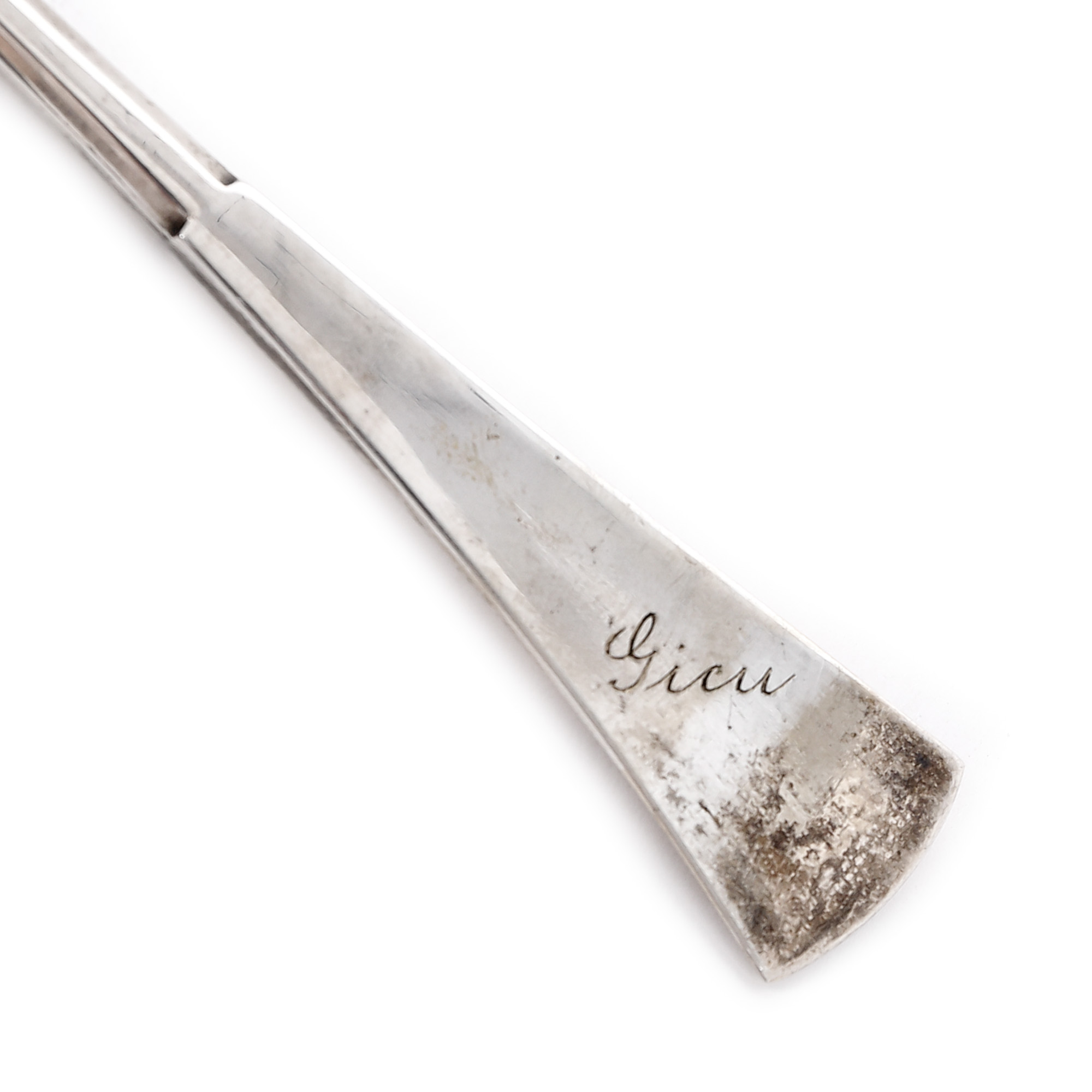 132. Set Art Deco din argint, pentru copii, decorat cu motive florale, perioada interbelică, însoțit de cutia originală