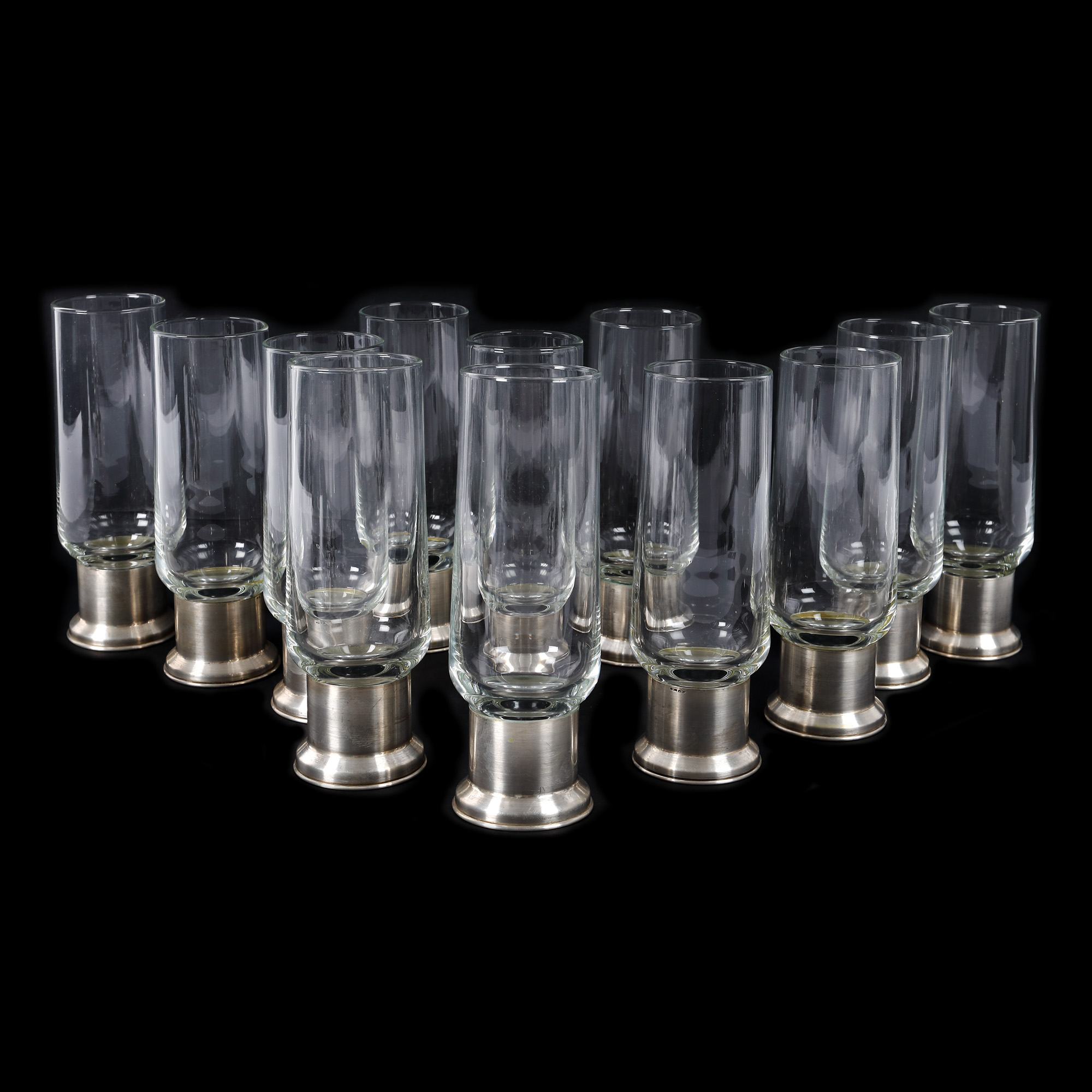 74. Set de 12 pahare din sticlă, cu manșon din argint, meșter Gino Bicchielli [Cca. 1956-1971]