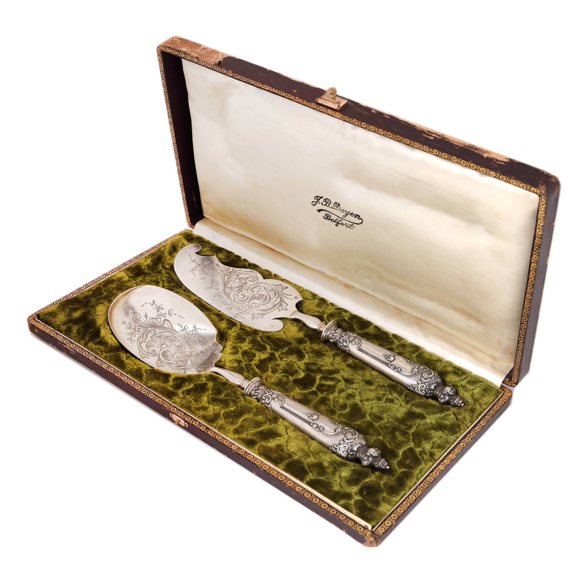 108. Set de tacâmuri din argint pentru servirea tortului, în stil Louis XV, cca. 1900, însoțit de cutie originală