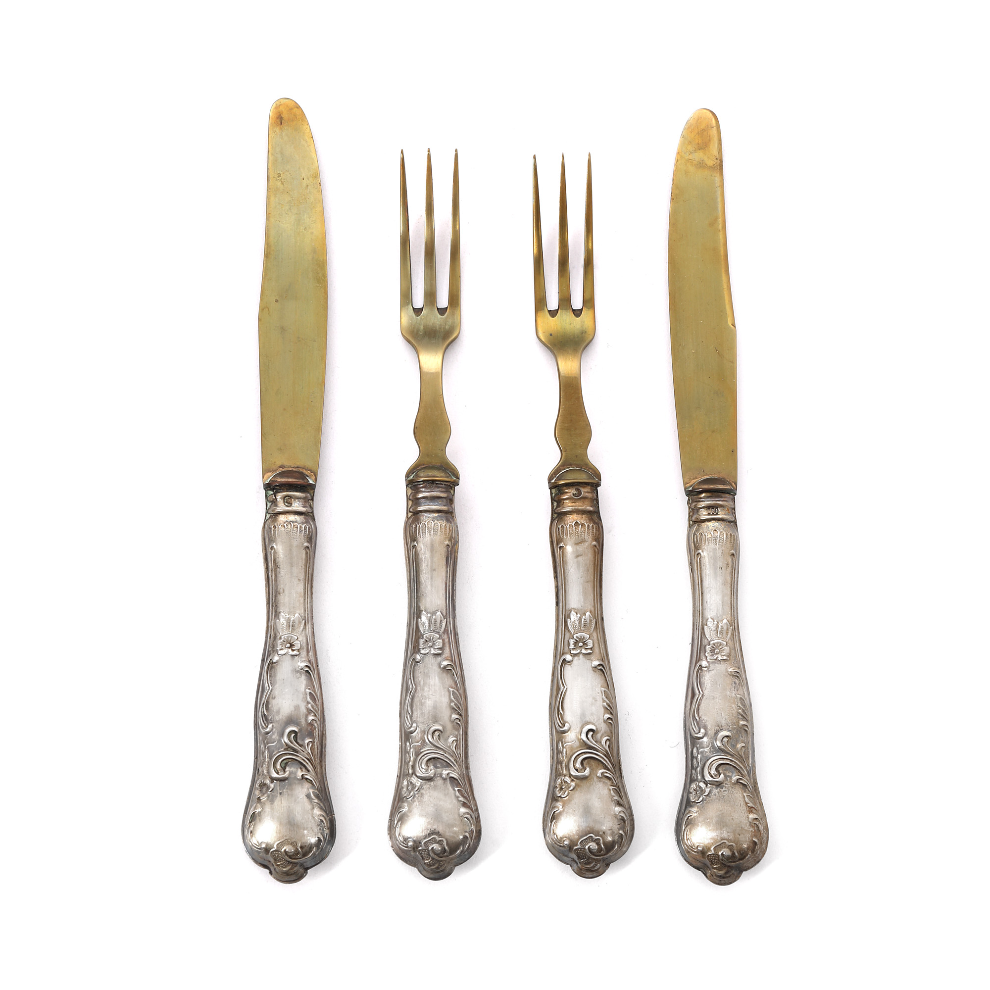 118. Set de tacâmuri pentru șase persoane, pentru servit prăjituri, decorat cu motive vegetale, perioada interbelică, însoțit de cutie originală