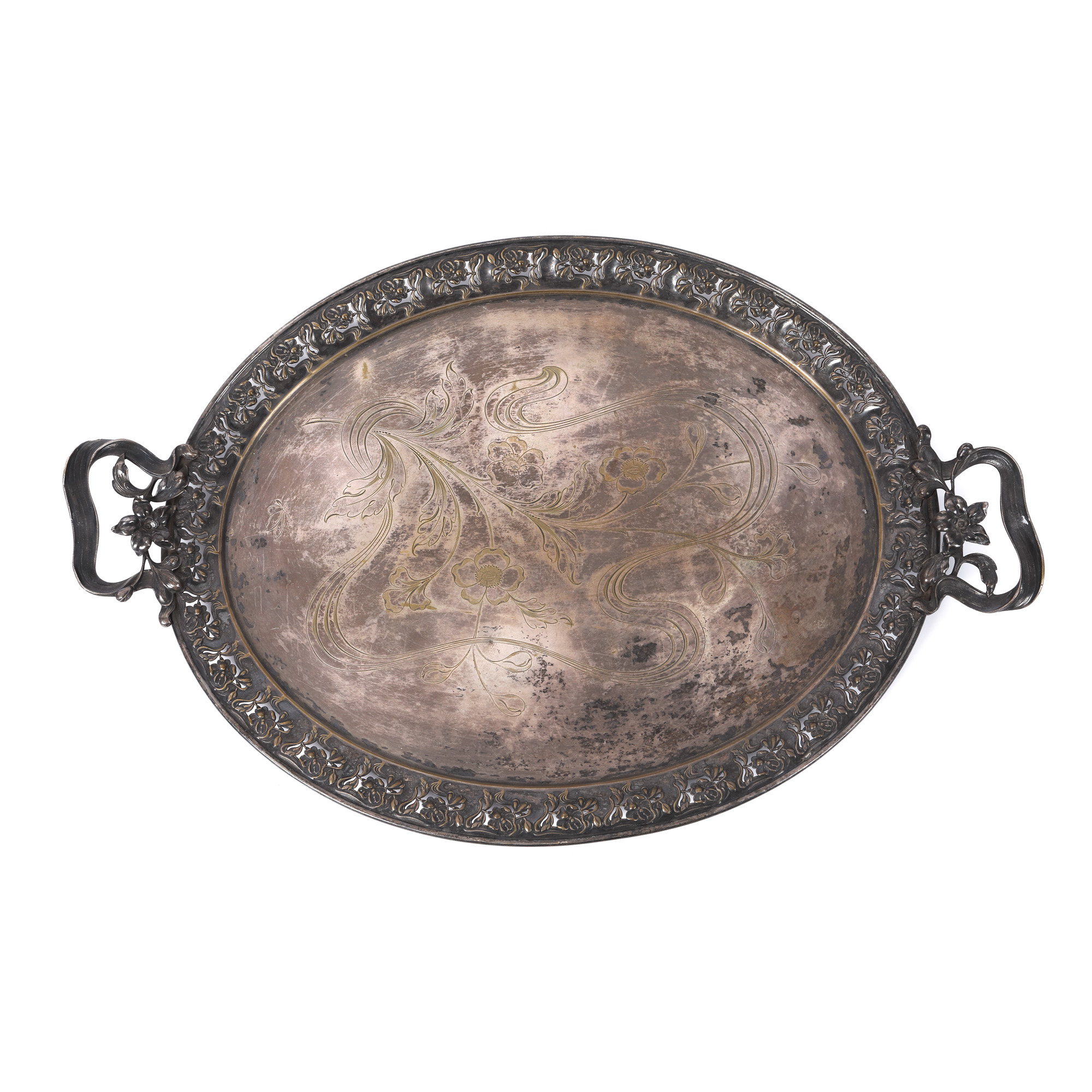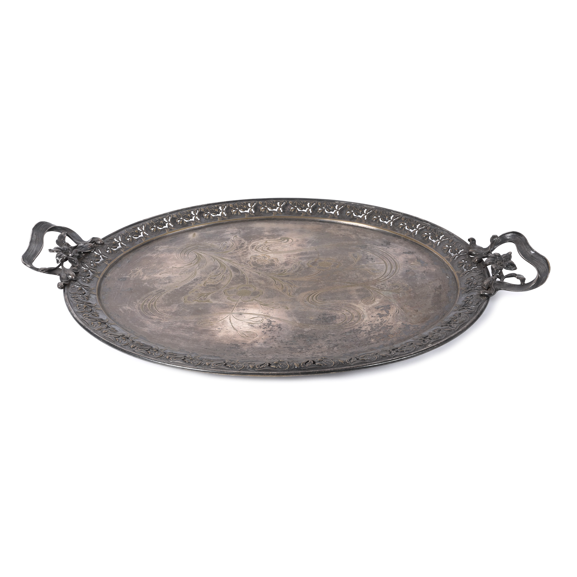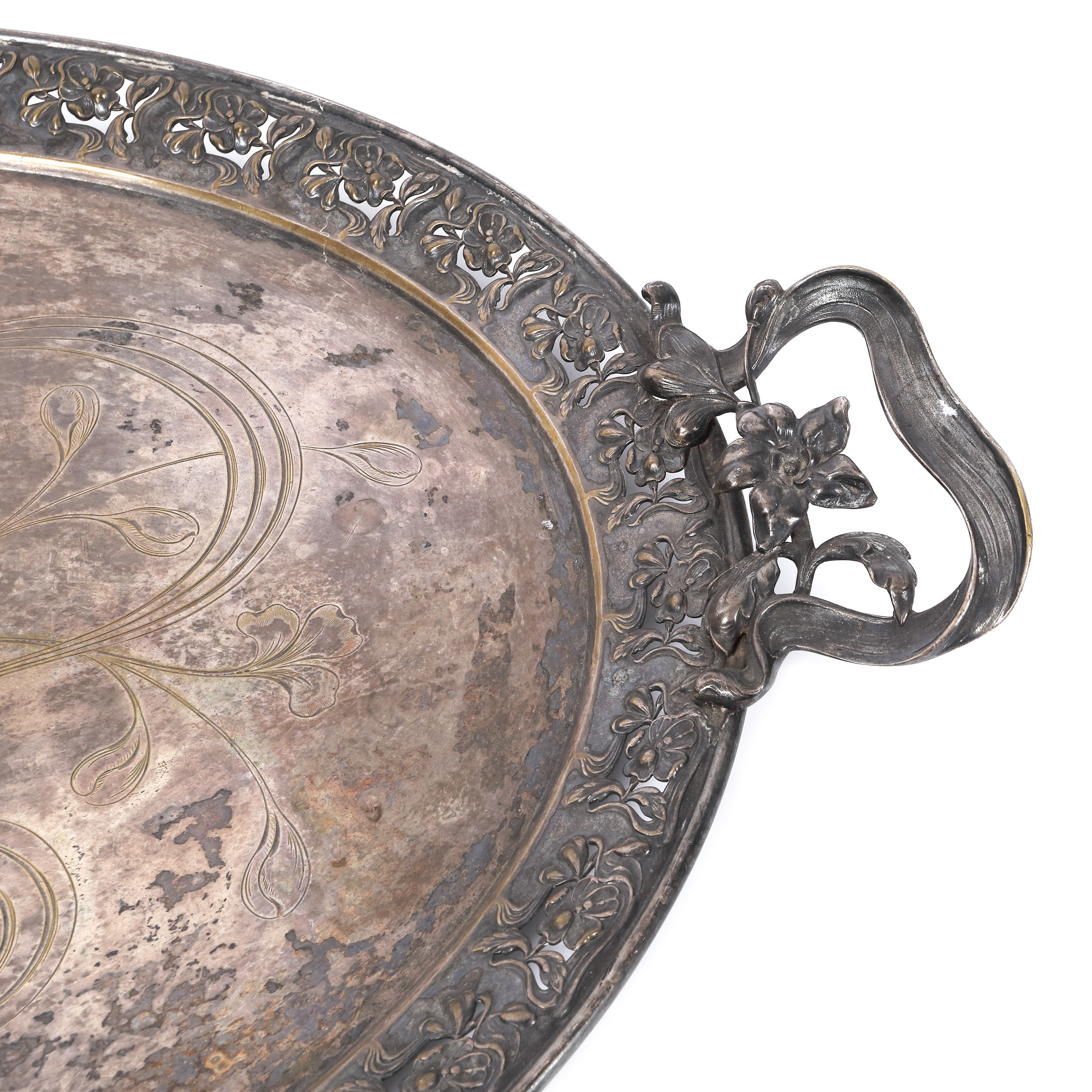 151. Tavă Argentor în stil Art Nouveau, cu bogat decor floral, cca. 1900-1910
